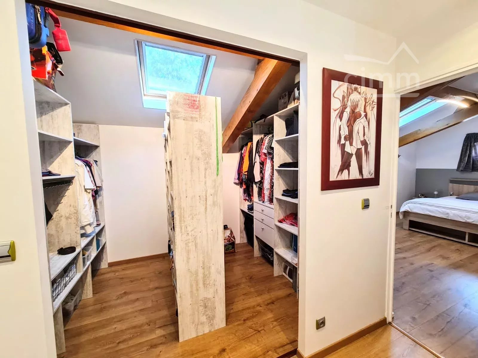 A l'étage, pièce avec accès solarium faisant office de salle sport ou bureau, grande salle de bain/wc, couloir avec 2 ouvertures sur vide séjour desservant dressing et une très grande chambre parentale.