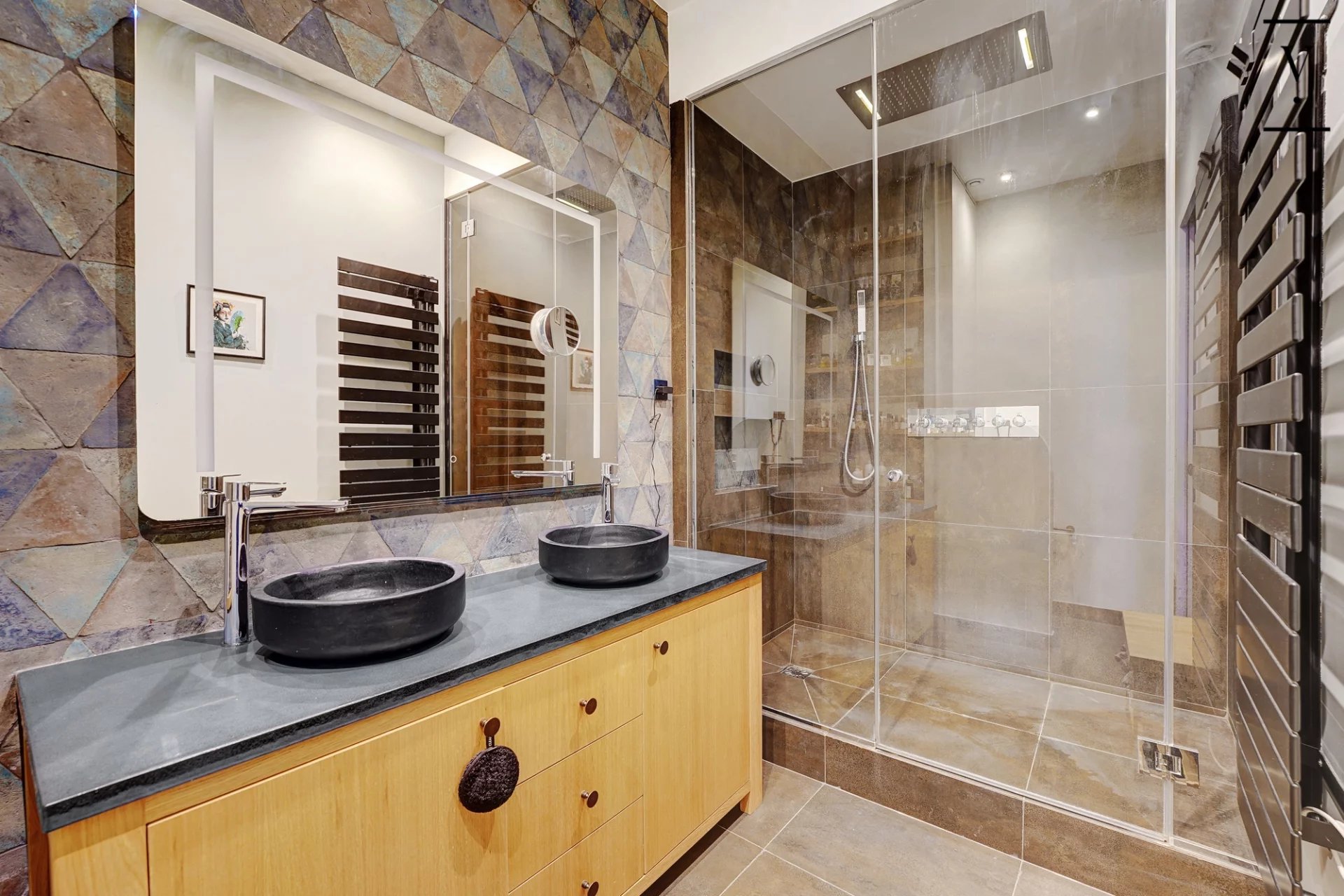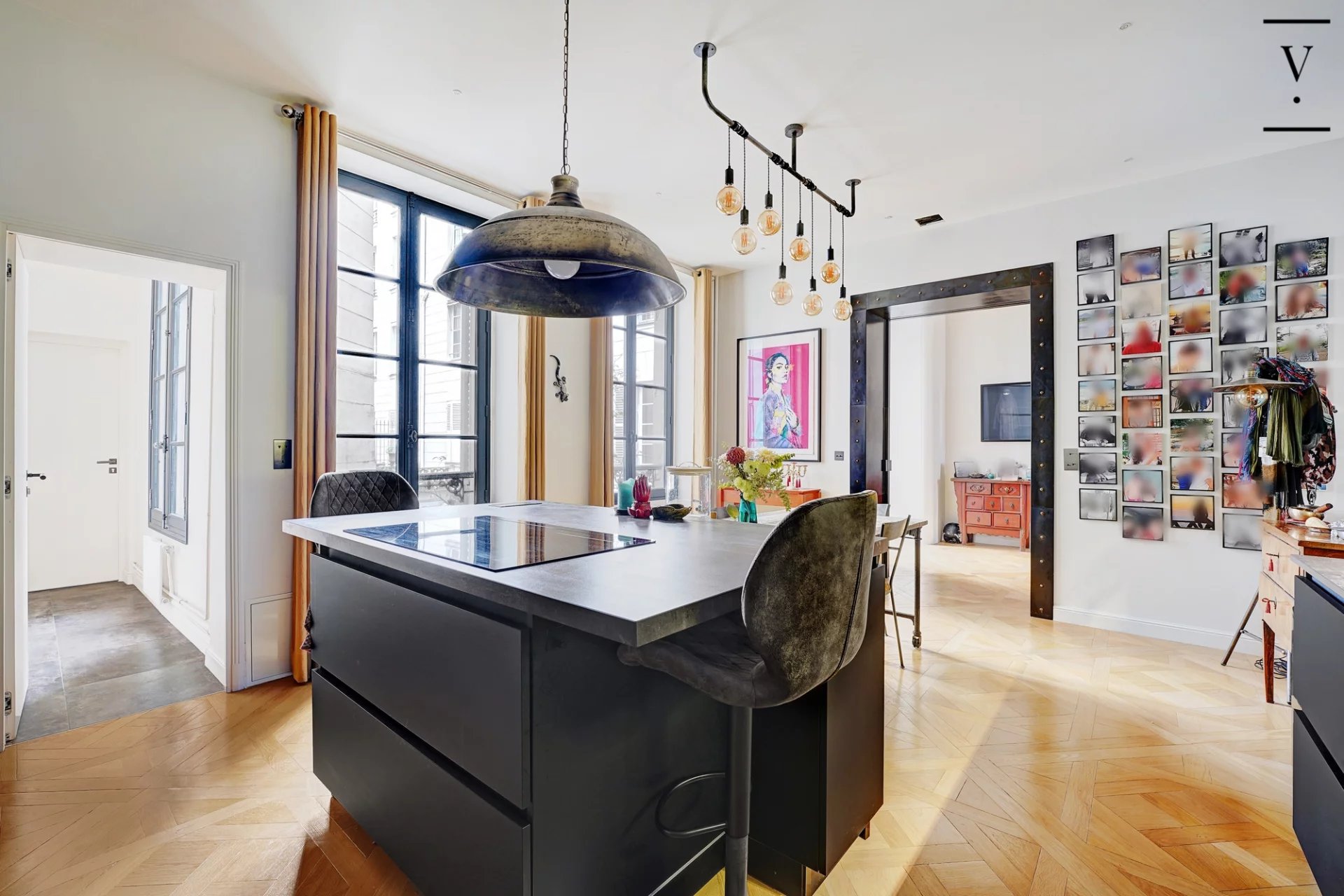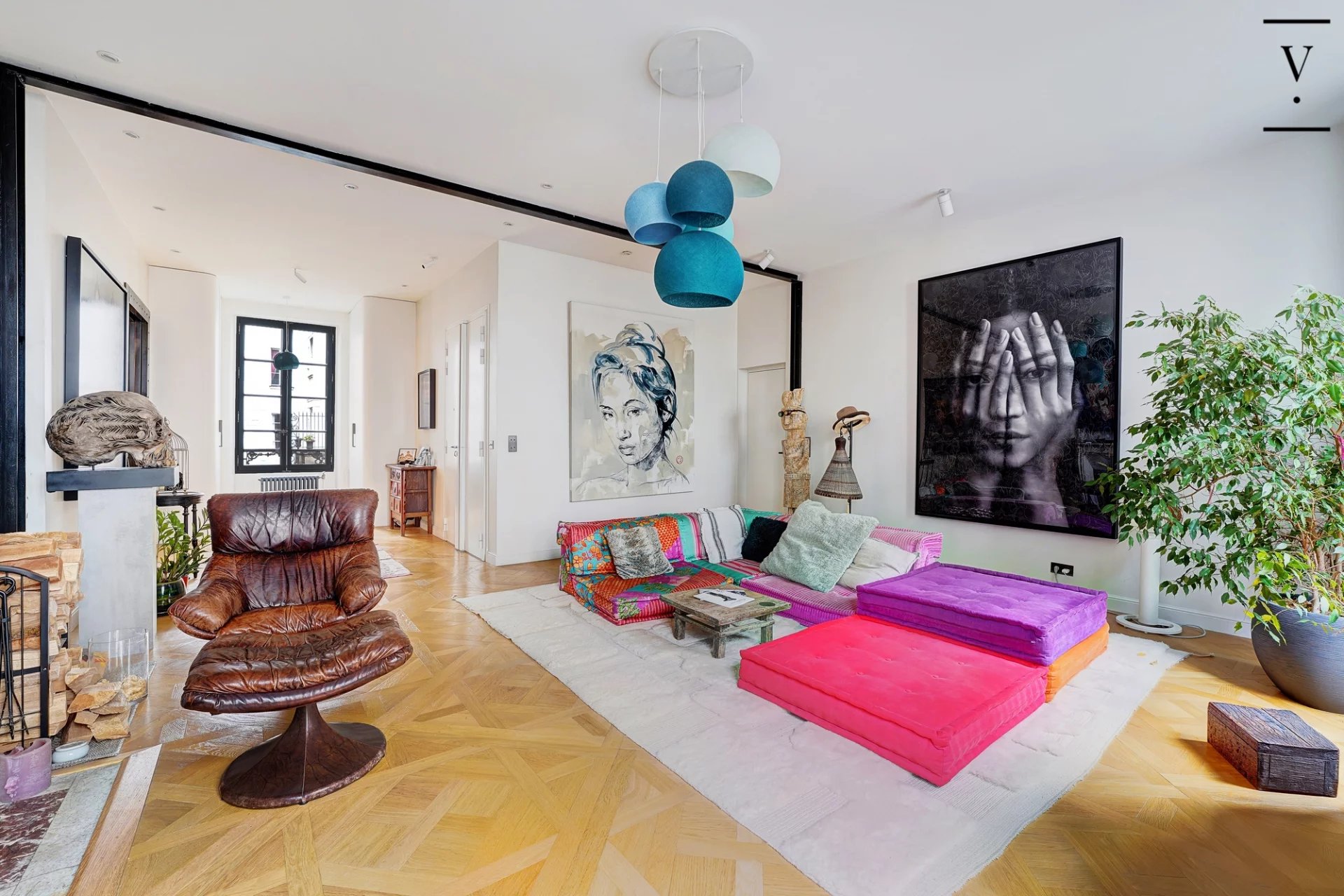 Rue de condé, au premier étage avec ascenseur d’un bel immeuble fin XIXᵉ parfaitement entretenu, découvrez cet appartement traversant de 174 m², entièrement rénové avec des matériaux haut de gamme. L’entrée s’ouvre sur un vaste séjour baigné de lumière, offrant des vues dégagées sur rue calme et sur une charmante cour arborée. Les 3,10 m de hauteur sous plafond et la cheminée d’époque confèrent à l’ensemble une atmosphère élégante et chaleureuse. La grande cuisine dînatoire, parfaitement équipée, invite à la convivialité. L’appartement comprend quatre chambres, chacune avec sa salle de bains ou salle d’eau, un espace salon TV ou bureau, ainsi qu’une buanderie. Alliant le charme de l’ancien et le confort moderne, ce bien séduit par ses beaux volumes, sa décoration raffinée et son calme absolu. Une chambre de service avec point d’eau au cinquième étage par ascenseur et une grande cave complètent cet ensemble rare. Idéalement situé entre la place Saint-Sulpice et le jardin du Luxembourg, cet appartement offre un cadre de vie unique au cœur de l’un des quartiers les plus prisés de Paris.