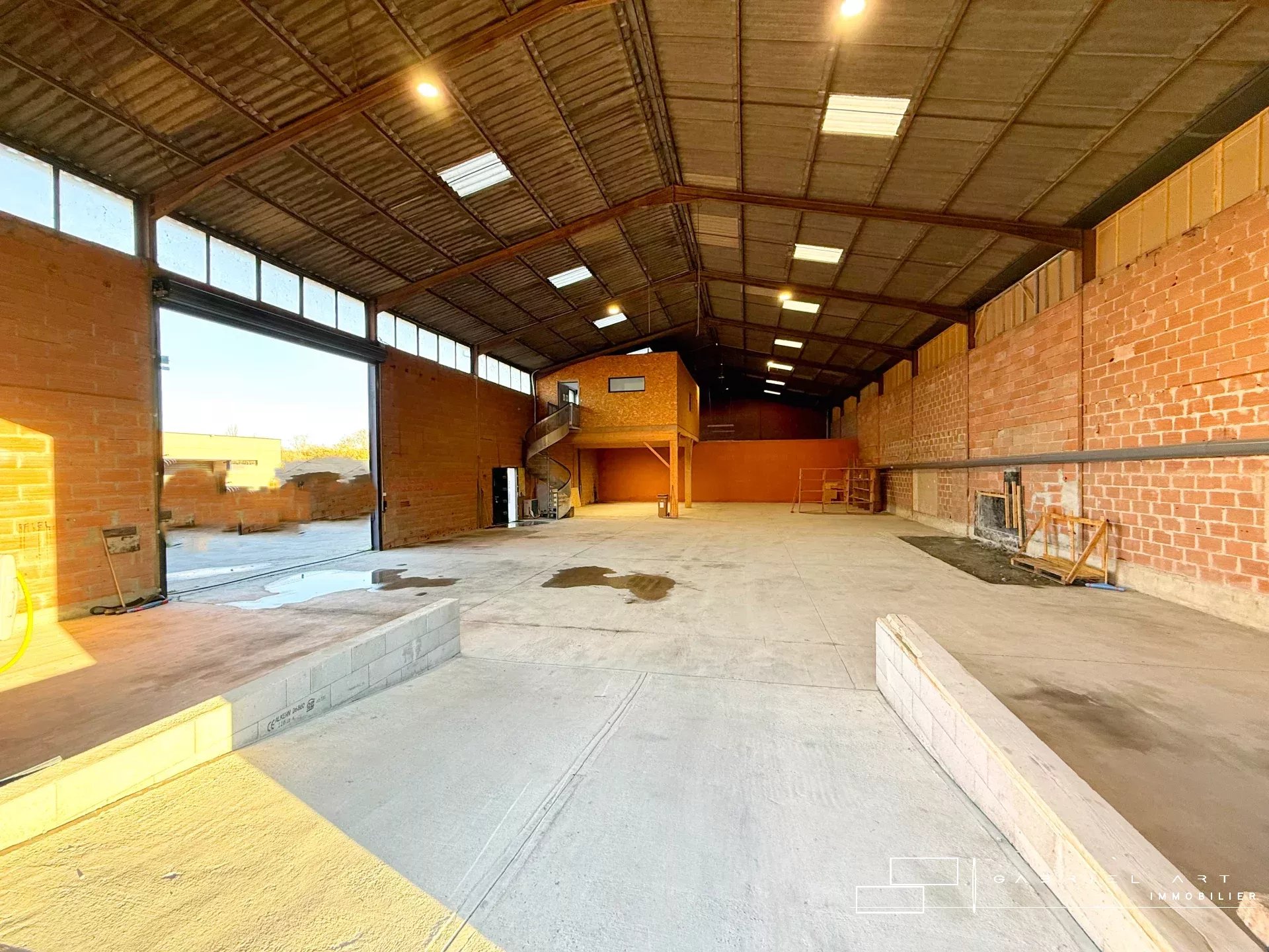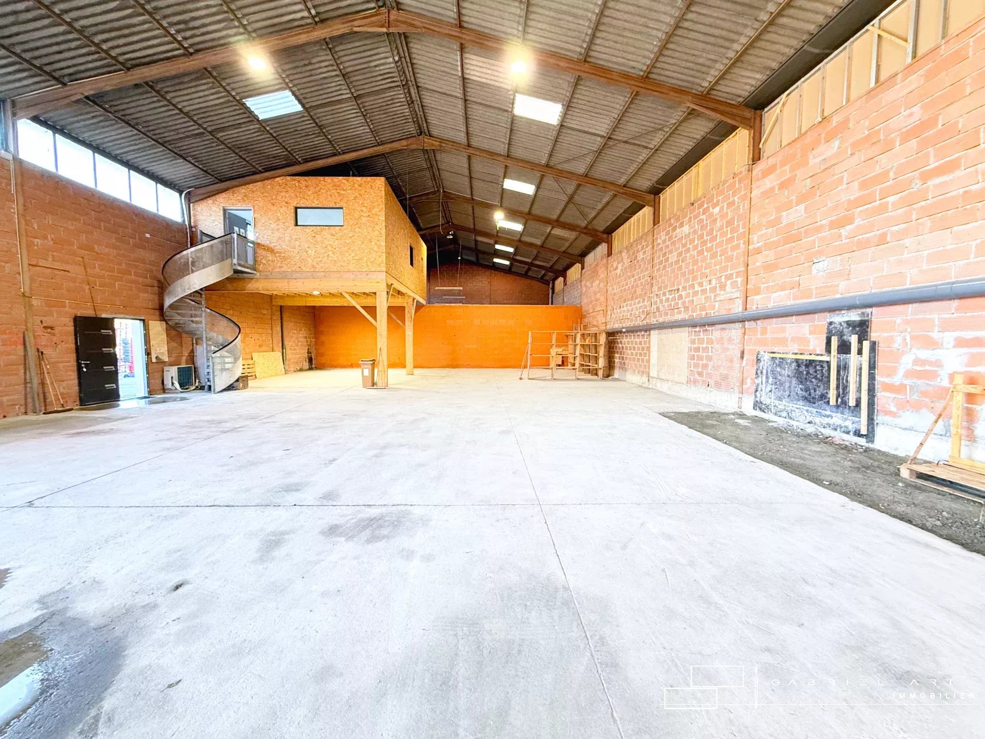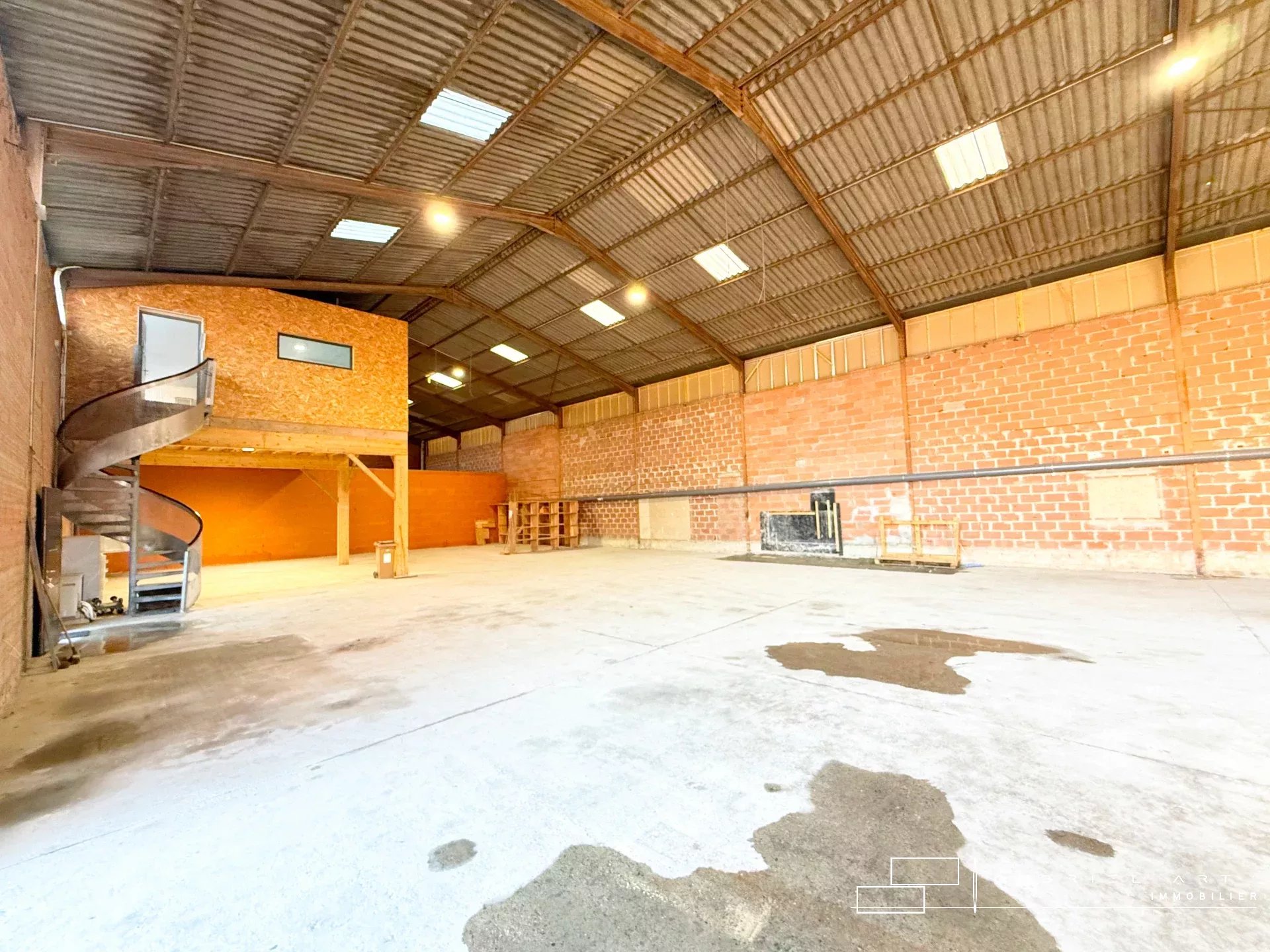 Découvrez ce local professionnel de 520m2 bénéficiant d'un vaste hangar de 460m2 avec deux grands portails et d'un bureau avec sanitaires de 60m2 environ. A l'extérieur, vous trouverez un parking sur dalle béton d'une surface de 860m2 entièrement grillagé et fermé par un portail automatique. Il bénéficie d'un emplacement stratégique en raison de sa proximité avec la nationale. Disponible immédiatement A découvrir en exclusivité chez Gabriel Art Immobilier.