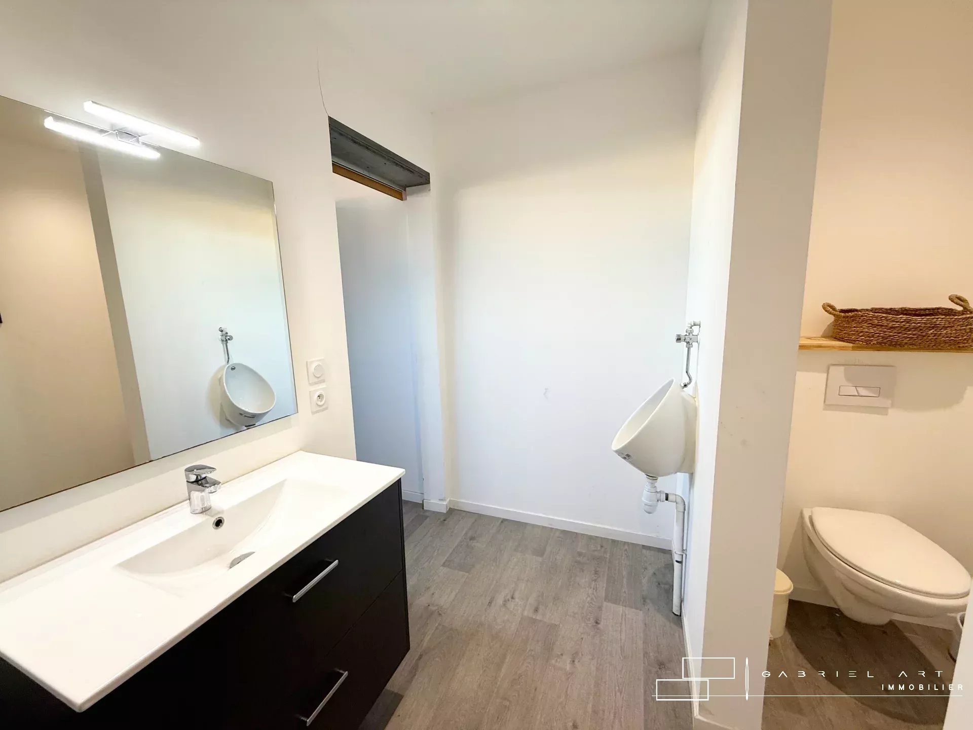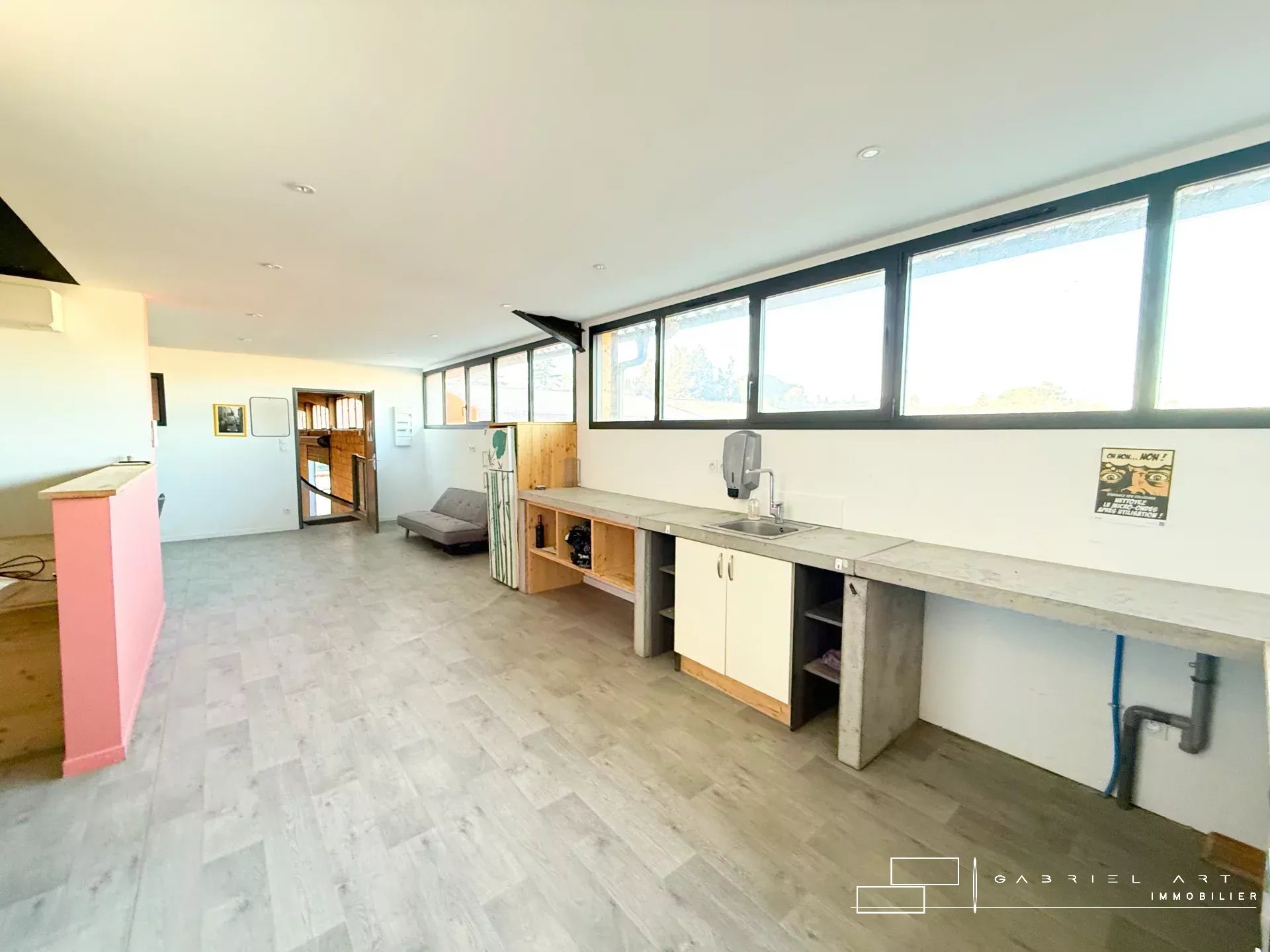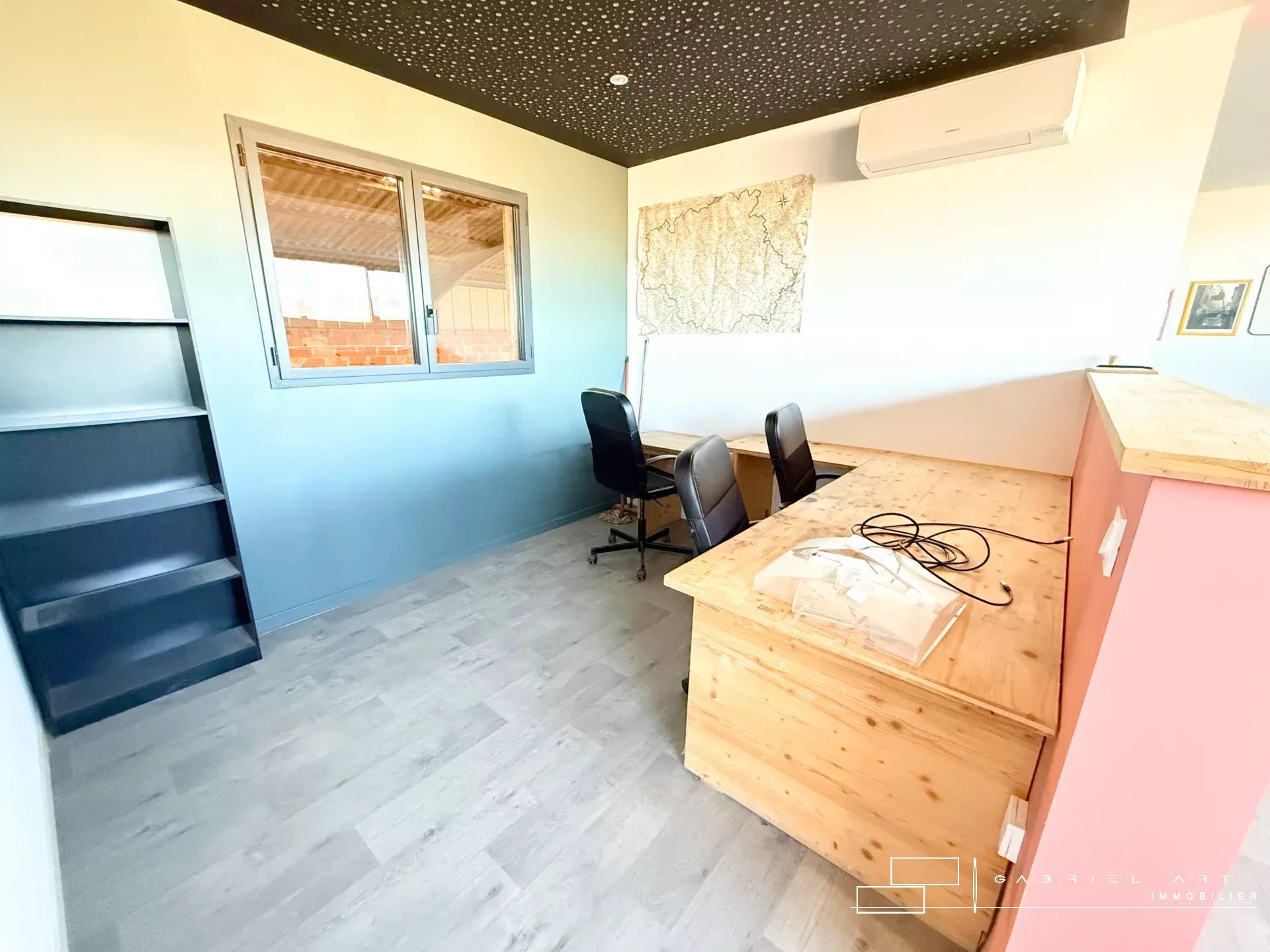 Découvrez ce local professionnel de 520m2 bénéficiant d'un vaste hangar de 460m2 avec deux grands portails et d'un bureau avec sanitaires de 60m2 environ. A l'extérieur, vous trouverez un parking sur dalle béton d'une surface de 860m2 entièrement grillagé et fermé par un portail automatique. Il bénéficie d'un emplacement stratégique en raison de sa proximité avec la nationale. Disponible immédiatement A découvrir en exclusivité chez Gabriel Art Immobilier.