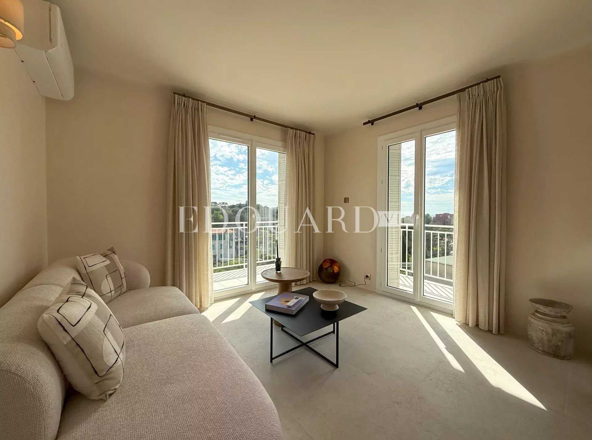 Al terzo ed ultimo piano di un immobile moderno con parcheggio condominiale ed in contesto tranquillo, in vendita superbo trilocale di 52 m² completamente ristrutturato con materiali di qualità, porta blindata, climatizzazione reversibile e doppi vetri. Traversante ed inondato di luce, si compone di un luminoso soggiorno affacciato su un elegante terrazzo circolare con bella vista aperta fino al mare, una cucina americana completamente accessoriata (frigo, congelatore, piano cottura a induzione, forno, lavastoviglie, cantina per i vini), due camere, un moderno bagno con doccia all'italiana, un WC separato ed una cantina. Venduto interamente arredato, chiavi in mano, prodotto molto interessante.