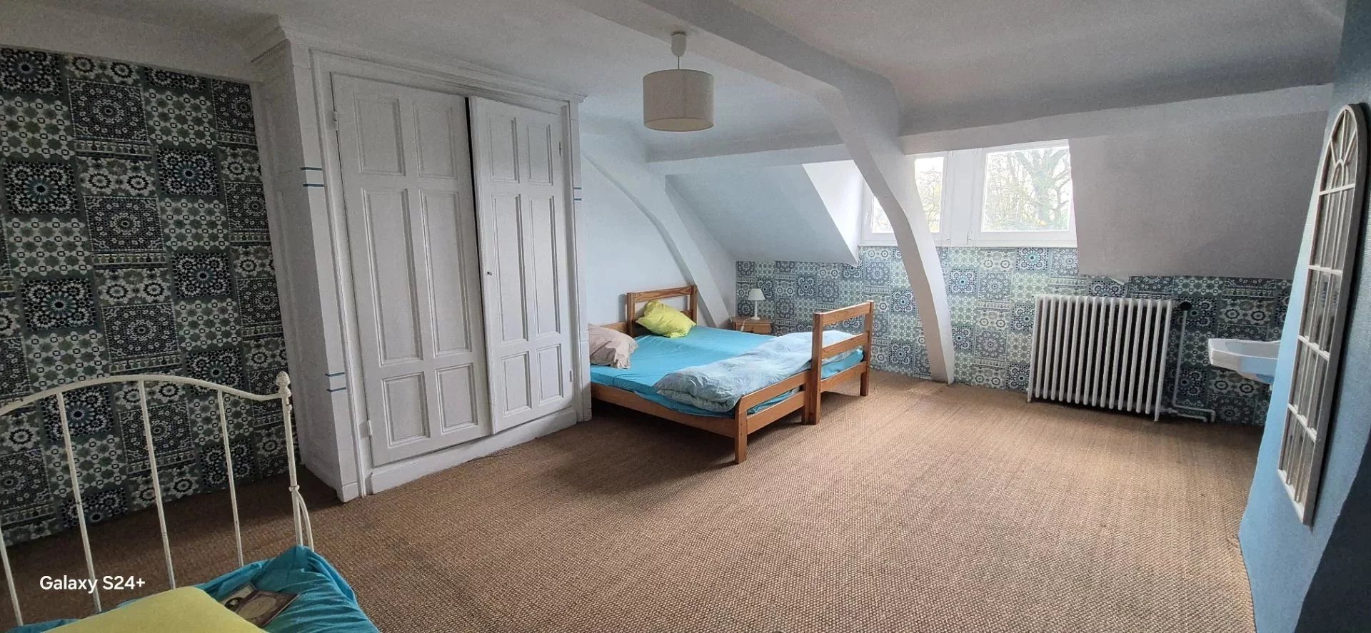 Au second étage, un palier dessert une grande chambre de 27m² avec lavabo et des combles à aménager au gré de vos envies.