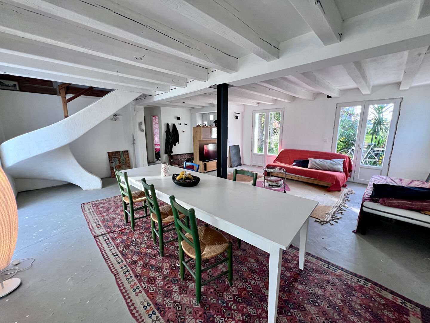 Maison, côté côte douce de l'ile, à 2,5 km de la plage des Grands Sables. Elle comprenant au RDC un grand séjour - salle à manger avec poêle à bois, un WC, une jolie cuisine lumineuse sous appentis, deux pièces à terminer, une grande chambre parentale, avec dressing, salle d'eau et WC. Côté Sud une vaste véranda de 23 m² donnant sur un jardin arboré apporte lumière et une pièce de vie supplémentaire. Préau bois côté ouest. L'étage lui propose quatre chambres + salle d'eau avec WC.