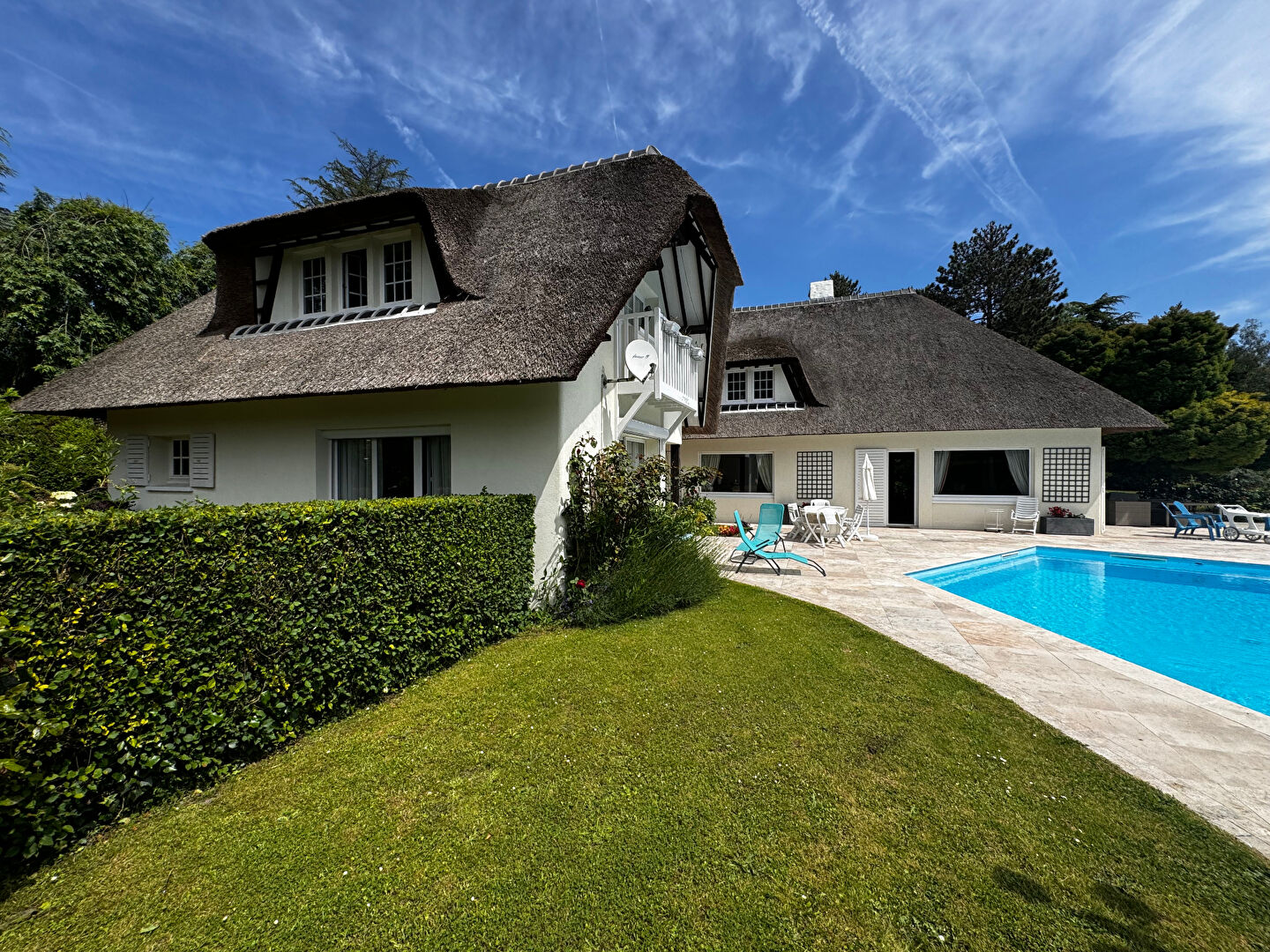 Volume, espace, charme, caractère et Lumière définissent cette emblématique propriété du Golf de Saint Nom la Bretèche, Située dans la partie gardiennée, la maison au calme jouit d'une exposition sud et d'un jardin plat de près de 8500 m² , qui donne directement sur le parcours, et avec une grande piscine chauffée. Cette élégante demeure parfaitement entretenue par ses propriétaires a bénéficié de nombreux travaux au cours de ses 8 dernières années. La toiture, le ravalement, les terrasses, la piscine ont été entièrement refaits et les menuiseries changées. Elle offre plus de 600 m² habitables et un sous sol complet ou vous trouverez par ailleurs, une salle de jeux, un appartement de gardiens, des pièces techniques, une lingerie et un garage pour trois voitures. (4.74 % honoraires TTC à la charge de l'acquéreur.)