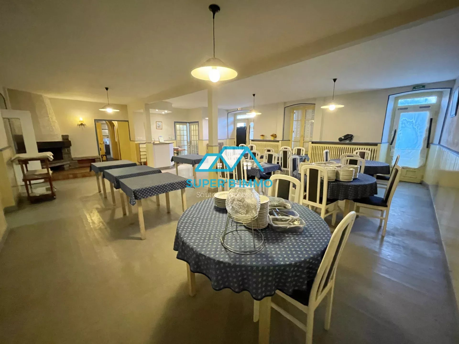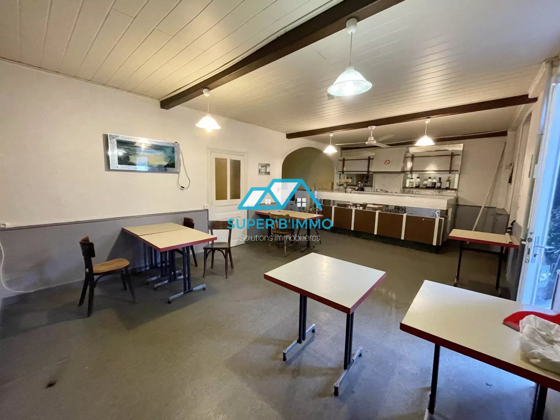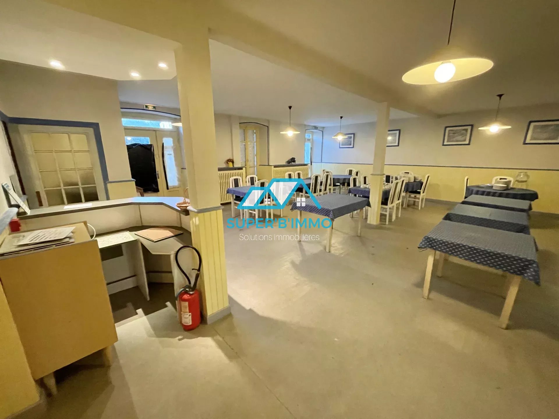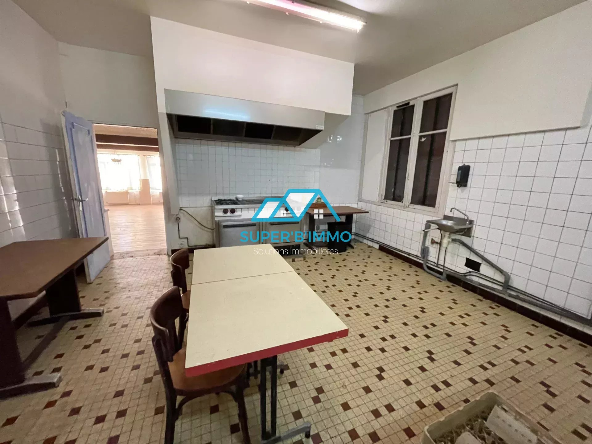 - au rez-de-chaussée : un ancien bar de 50 m2, deux salles de restaurant de 77 m2 et 78 m2, une cuisine, double WC, dégagement et bureau