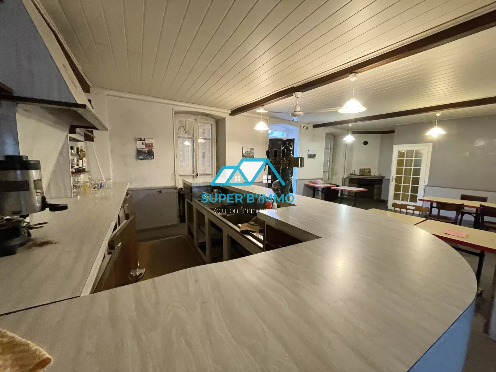 Sur la commune de La Chapelle Laurent, en centre bourg, ancien bar/restaurant/hôtel d'une surface total de 405 m2 habitable, avec un double garage et un jardinet composé :