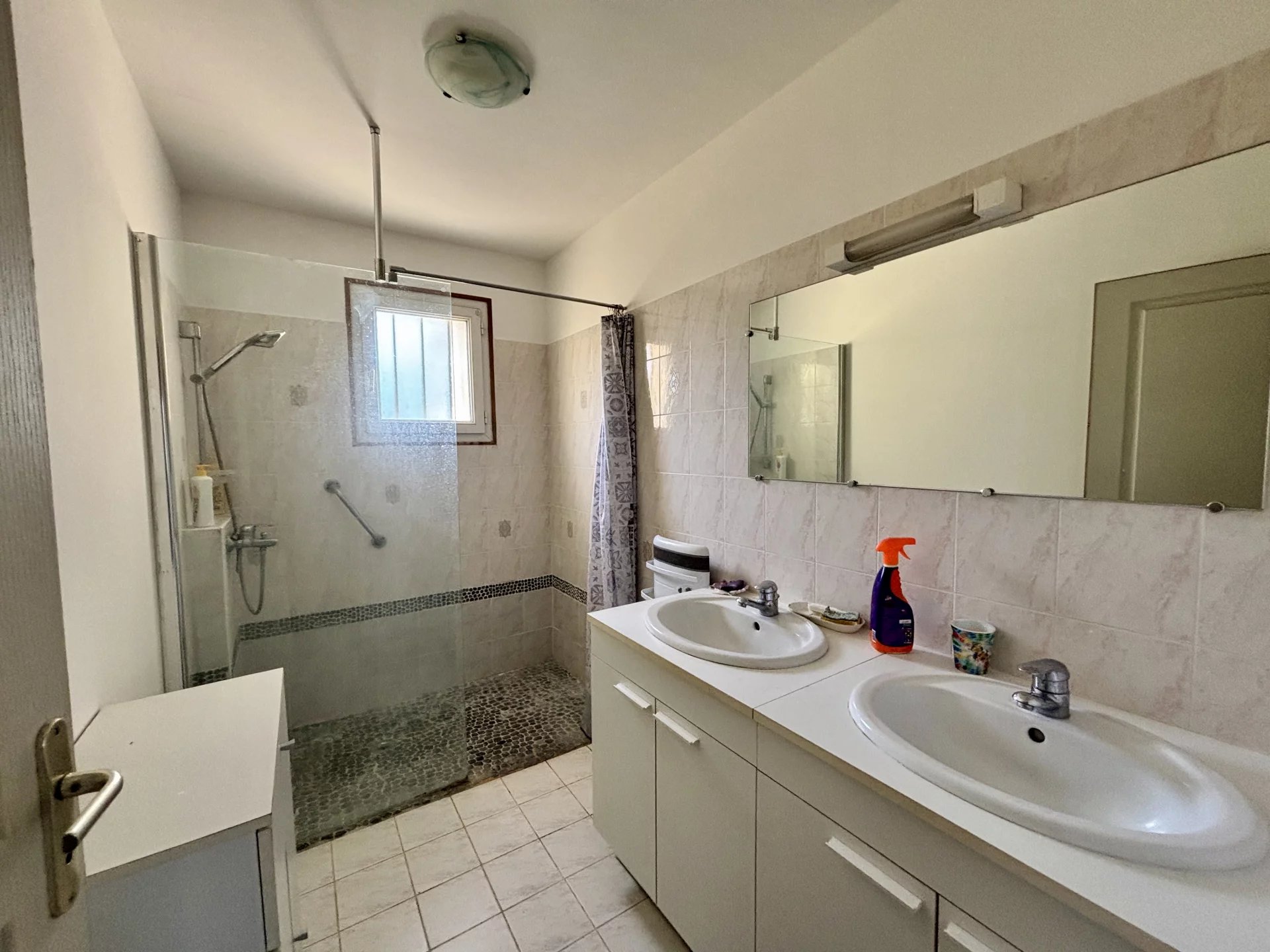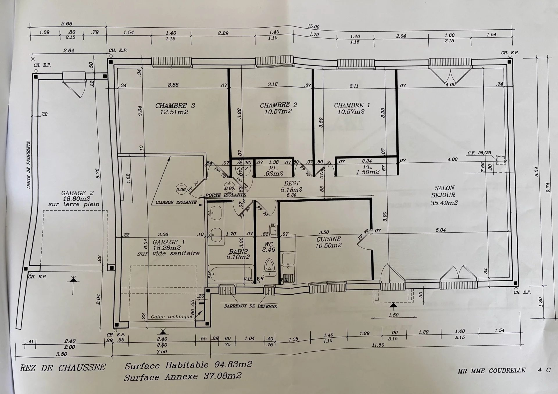 Vous stationnez côté Sud-Ouest. La porte s'ouvre sur la pièce de vie de 36m2 ; un tubage existant permettrait d'y installer un poêle pour chauffer une grande partie du bien. Sur votre gauche, une cuisine équipée de plus de 10m2 puis un couloir pourvu de placards. Ce dernier dessert la salle d'eau avec douche à l'italienne et les 4 chambres (1 garage a été transformé en chambre) ainsi qu'un dressing/buanderie.