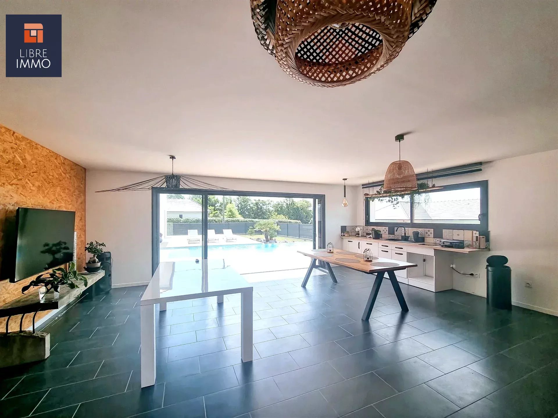 Khédy votre dénicheur de Bonheur vous fait découvrir dans un cadre bucolique à 5 min de Total et 12 min de Pau, sans aucun vis-à-vis, découvrez cette magnifique maison contemporaine de plus de 200 m² offrant des prestations haut de gamme et des matériaux de grande qualité. Elle se compose de trois suites confortables, d’un grand séjour baigné de lumière, ainsi que d’une cuisine ouverte sur la salle à manger, où vous profiterez de volumes généreux et d’une luminosité exceptionnelle grâce à de larges baies vitrées. Ces espaces de vie s’ouvrent directement sur une splendide piscine à débordement offrant une vue imprenable sur la chaîne des Pyrénées. Un garage ainsi qu’un carport complètent ce bien aux finitions soignées. Vous profiterez également d’un jardin paysager avec son pool house entièrement équipé, comprenant une cuisine, une salle de jeux et de réception, ainsi qu’une authentique bodega guinguette, idéale pour partager des moments conviviaux avec vos proches. Cette villa allie élégance, confort et qualité de vie dans un environnement calme et préservé, parfaite pour accueillir famille et amis.