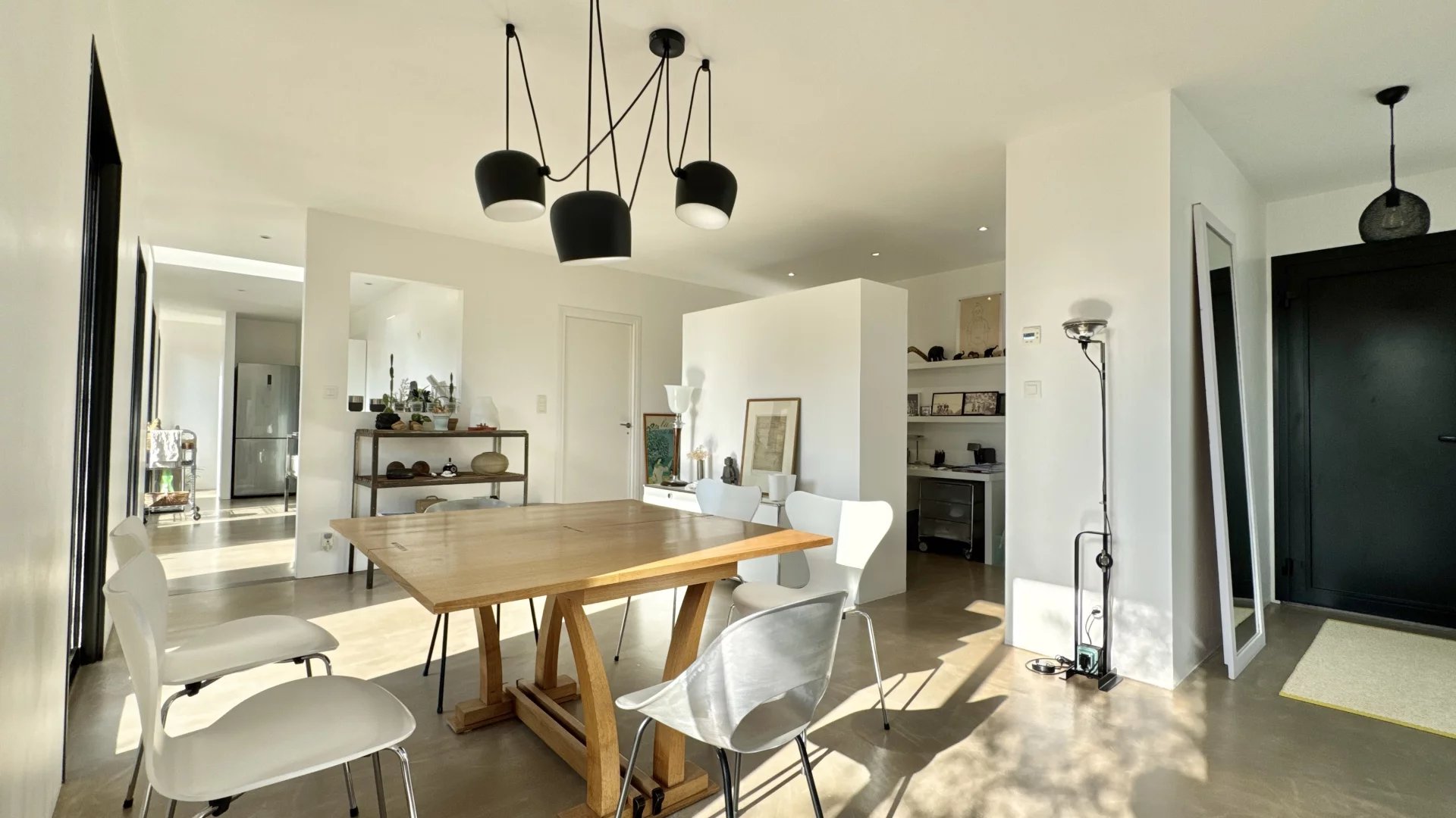Elle offre une agréable pièce de vie avec une cuisine ouverte bénéficiant d’une double exposition sud-ouest, un bureau ouvert en partie sur le séjour, une suite parentale avec dressing et salle d’eau, une chambre d’amis, un espace buanderie et des toilettes invités.