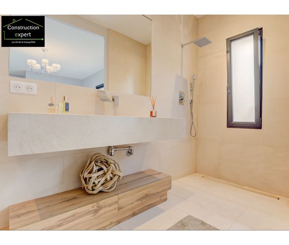 Elle se compose dune pièce à vivre spacieuse de 50 m², dune buanderie, de 3 chambres dont une suite parentale, dune salle de bains moderne (douche à litalienne et/ou baignoire), et de WC séparés.