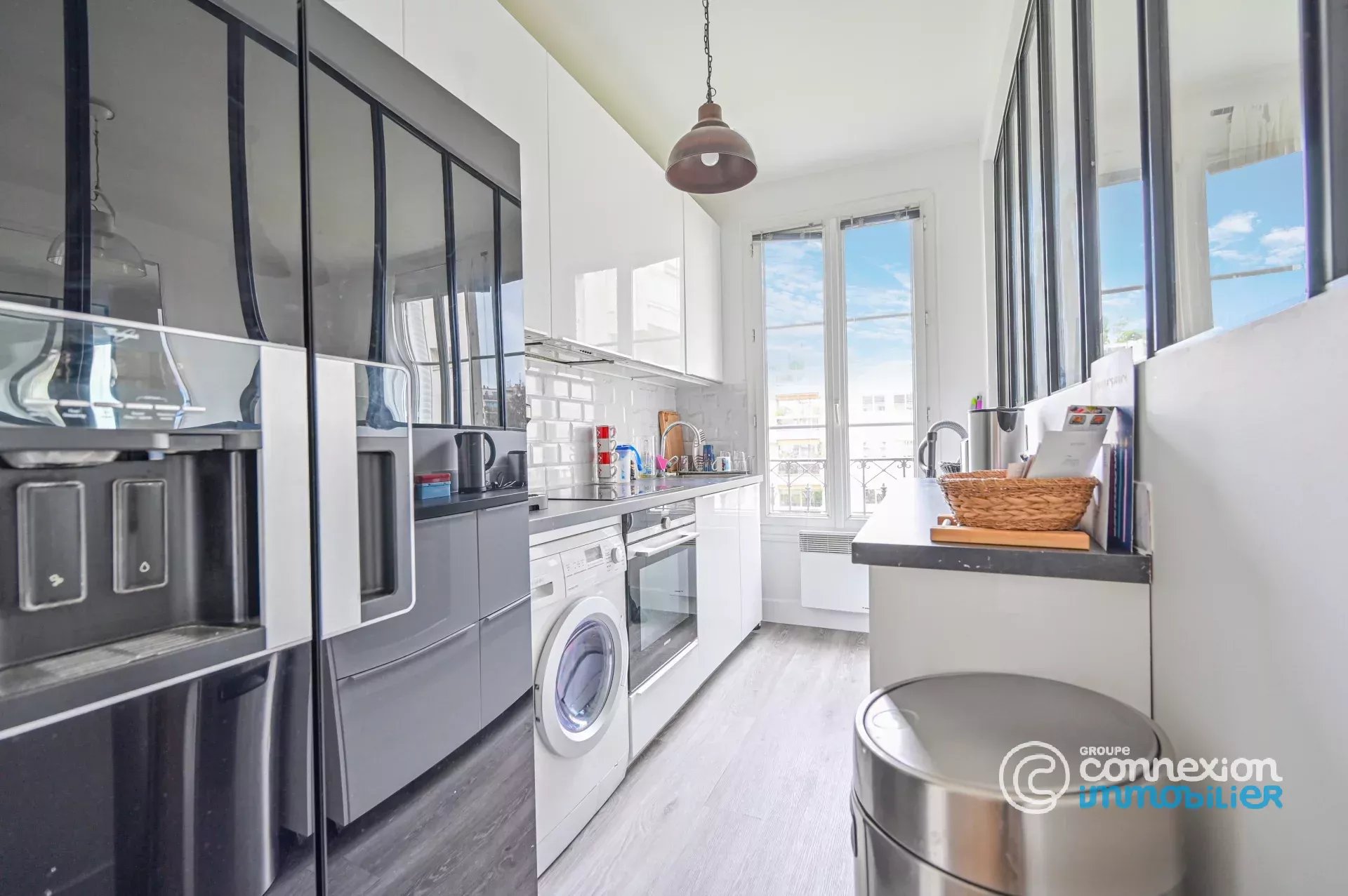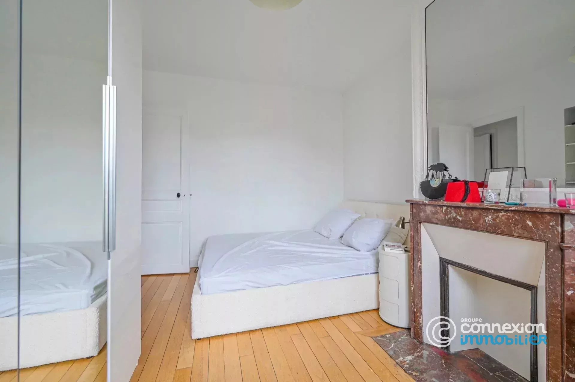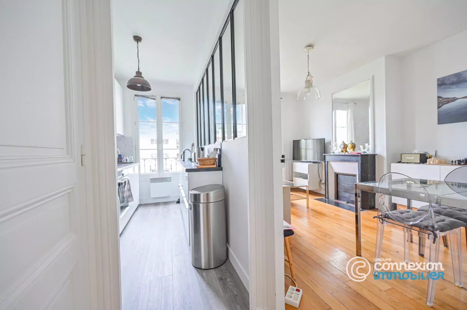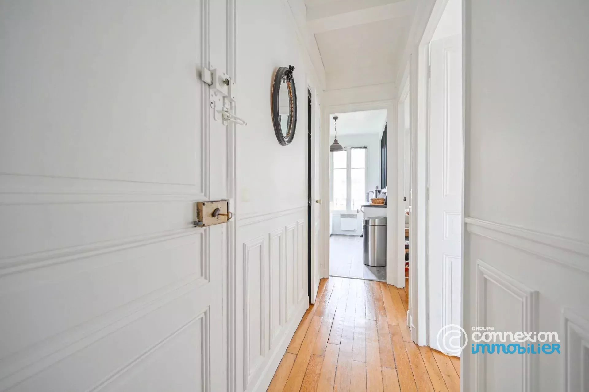 Cet appartement est calme, traversant, lumineux et dégagé, offre de belles prestations ; parquet, sous-bassement et cheminée. Il est composé d'une entrée, d'une lumineuse pièce à vivre avec une grande fenêtre offrant un espace salon, d'une cuisine entièrement aménagée et équipée avec une grande fenêtre et sa verrière, d'une chambre lumineuse et calme avec une cheminée et espace potentiellement de rangement et de bureau, une grande fenêtre offre également une belle luminosité avec une vue dégagée au calme, une salle de douche avec vasque et un WC séparé.