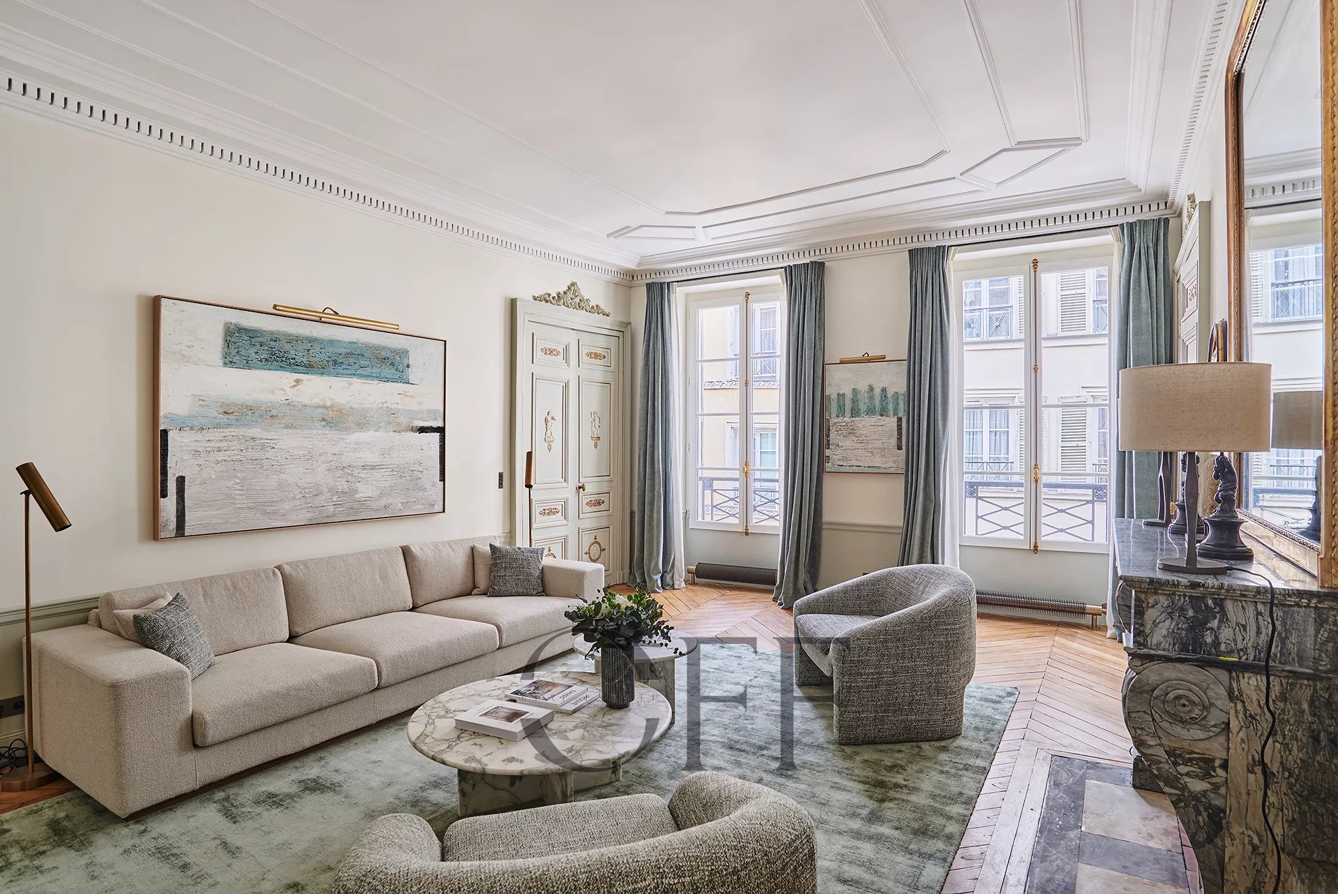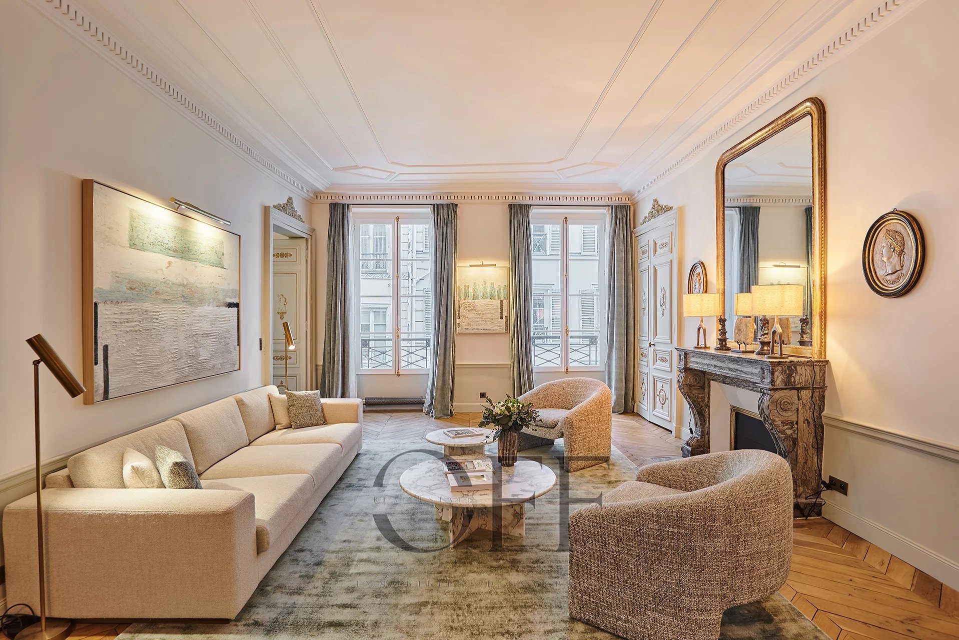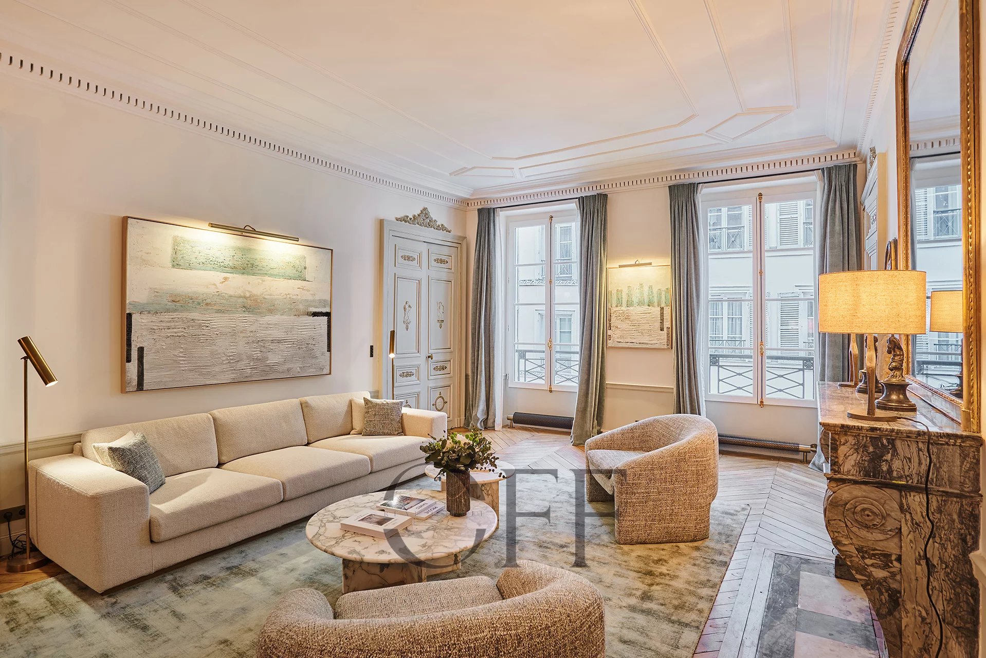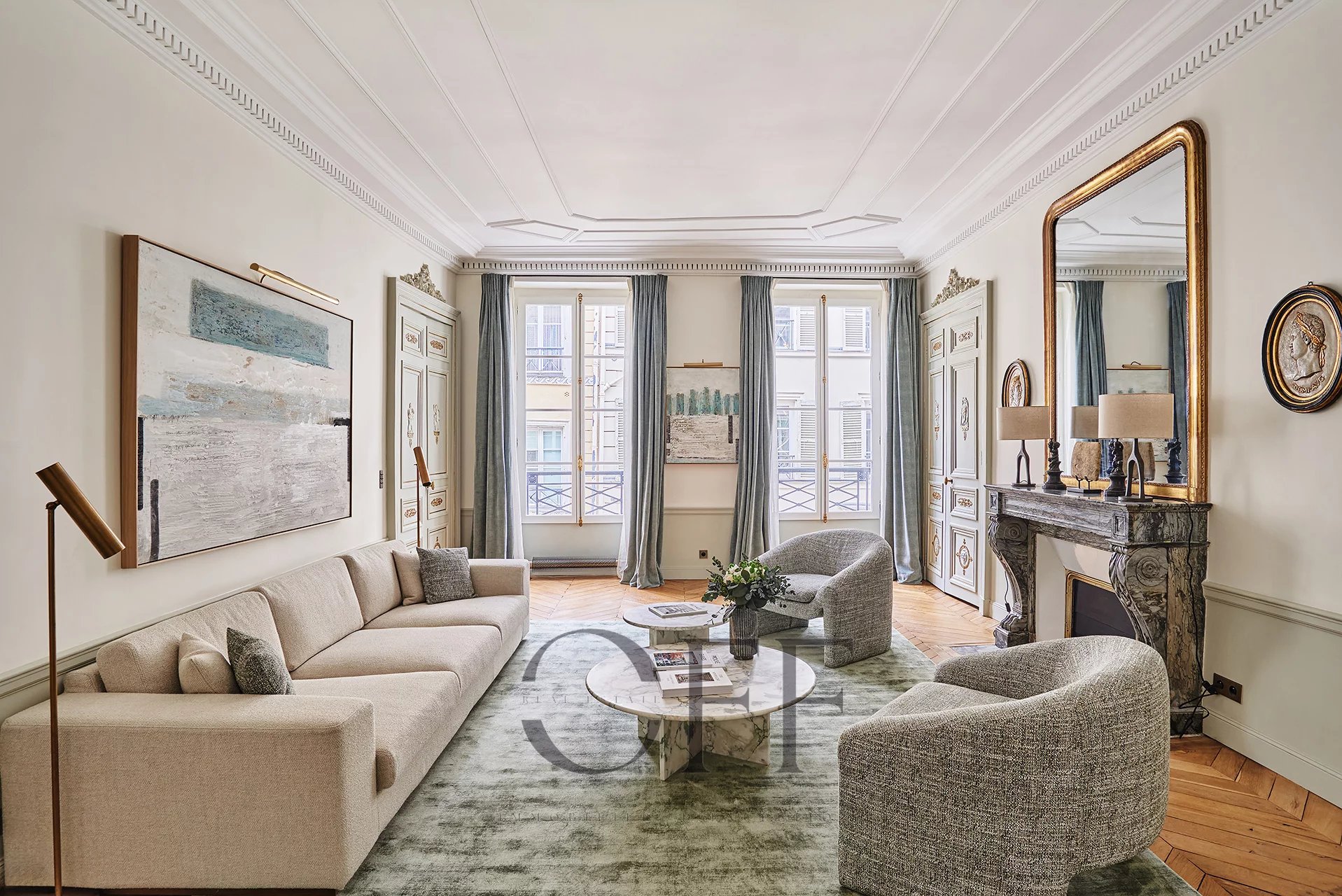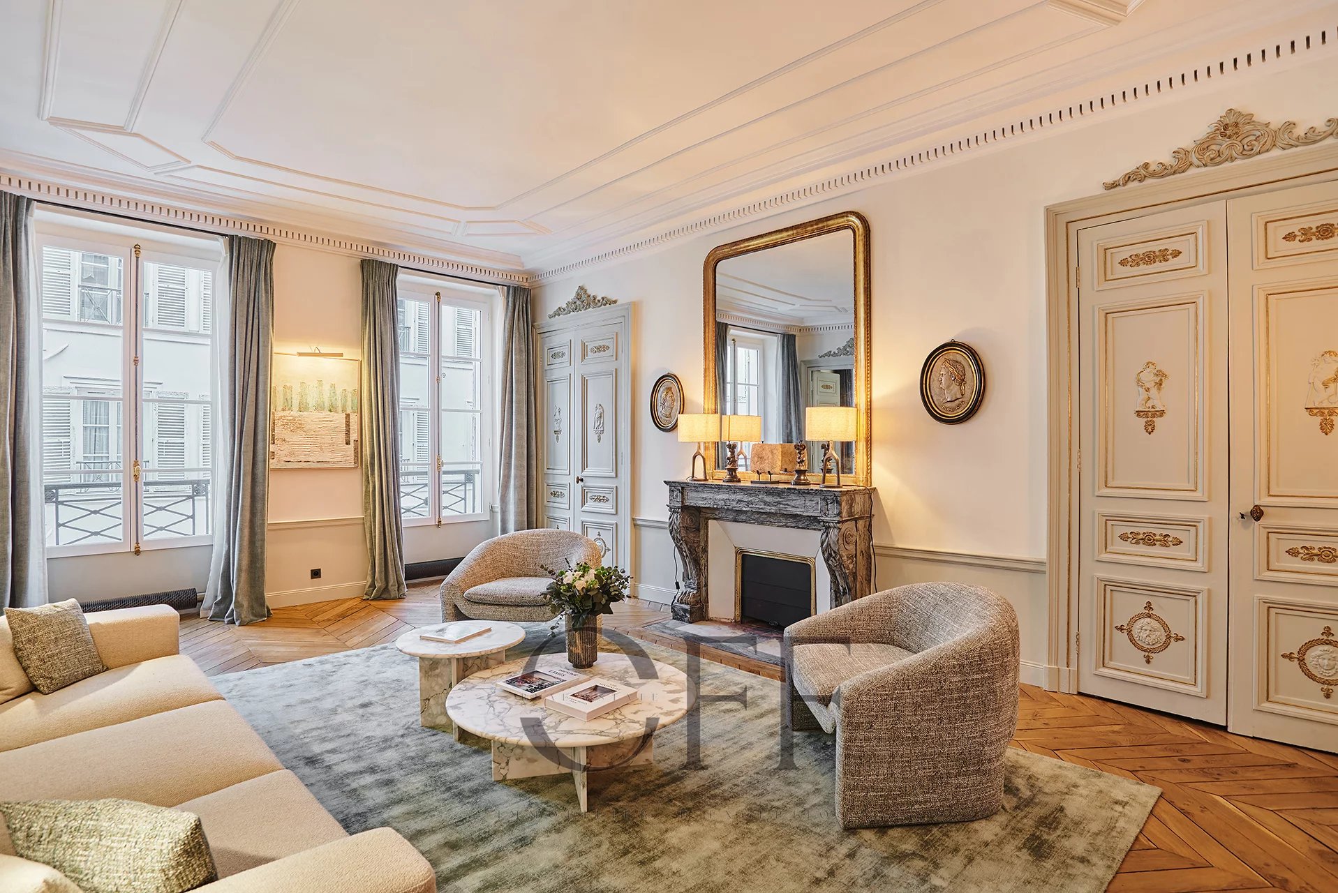 Dans l’une des rues les plus prisées de Saint-Germain-des-Prés, la rue des Beaux-Arts, cet appartement incarne tout le charme et l’élégance de la Rive Gauche.