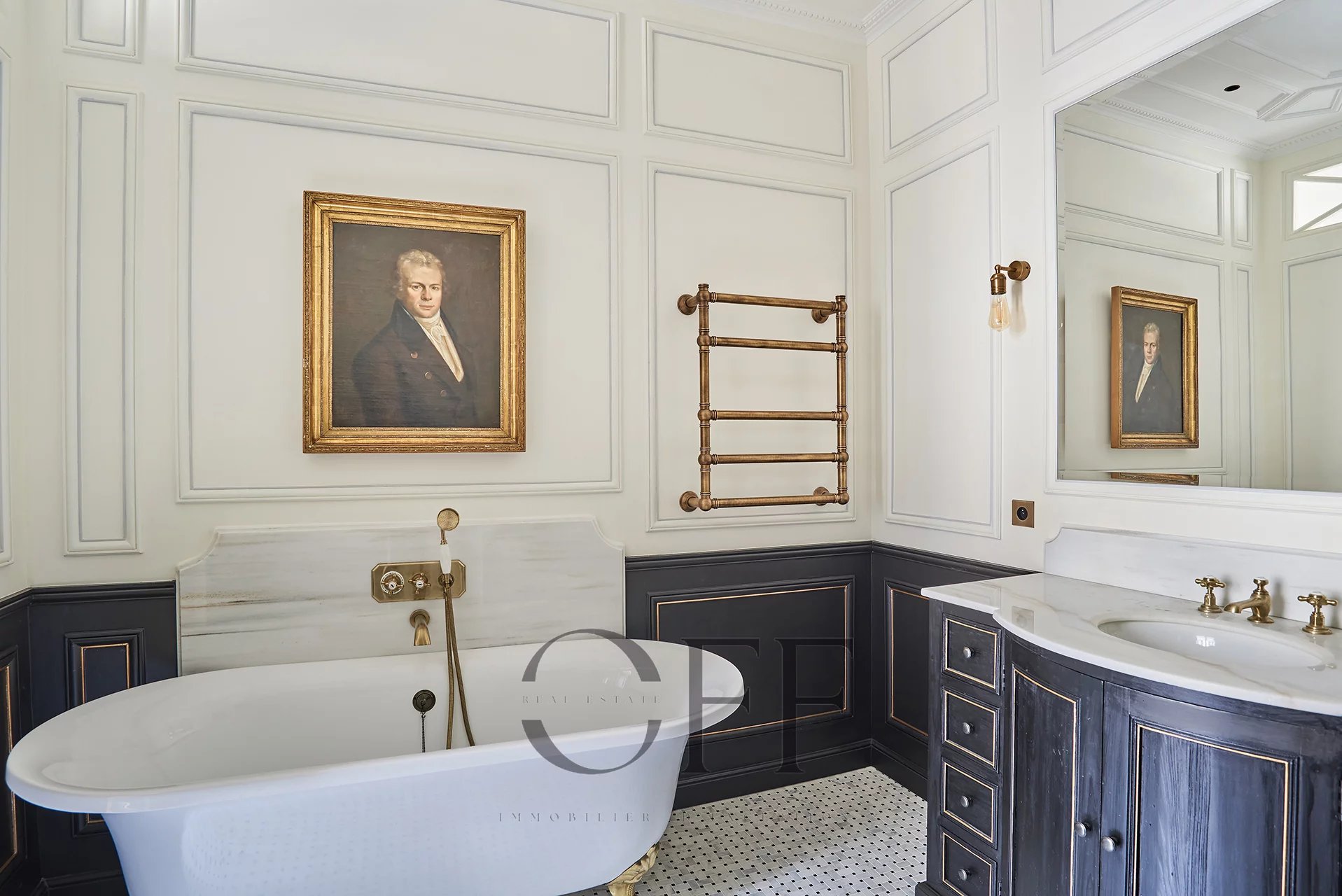 Installé au troisième étage d’un bel immeuble en pierre de taille datant de 1850, avec ascenseur, il offre 147,15 m² (loi Carrez) d’un confort rare.