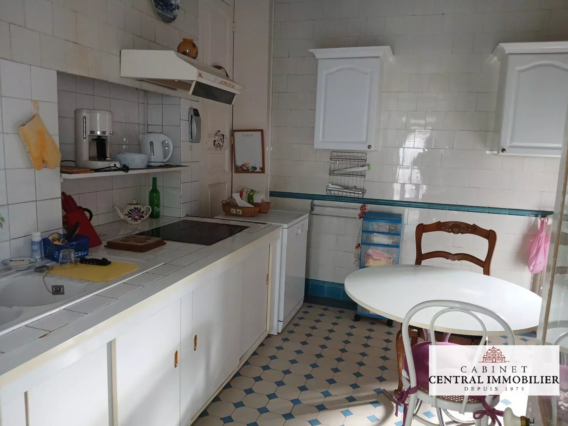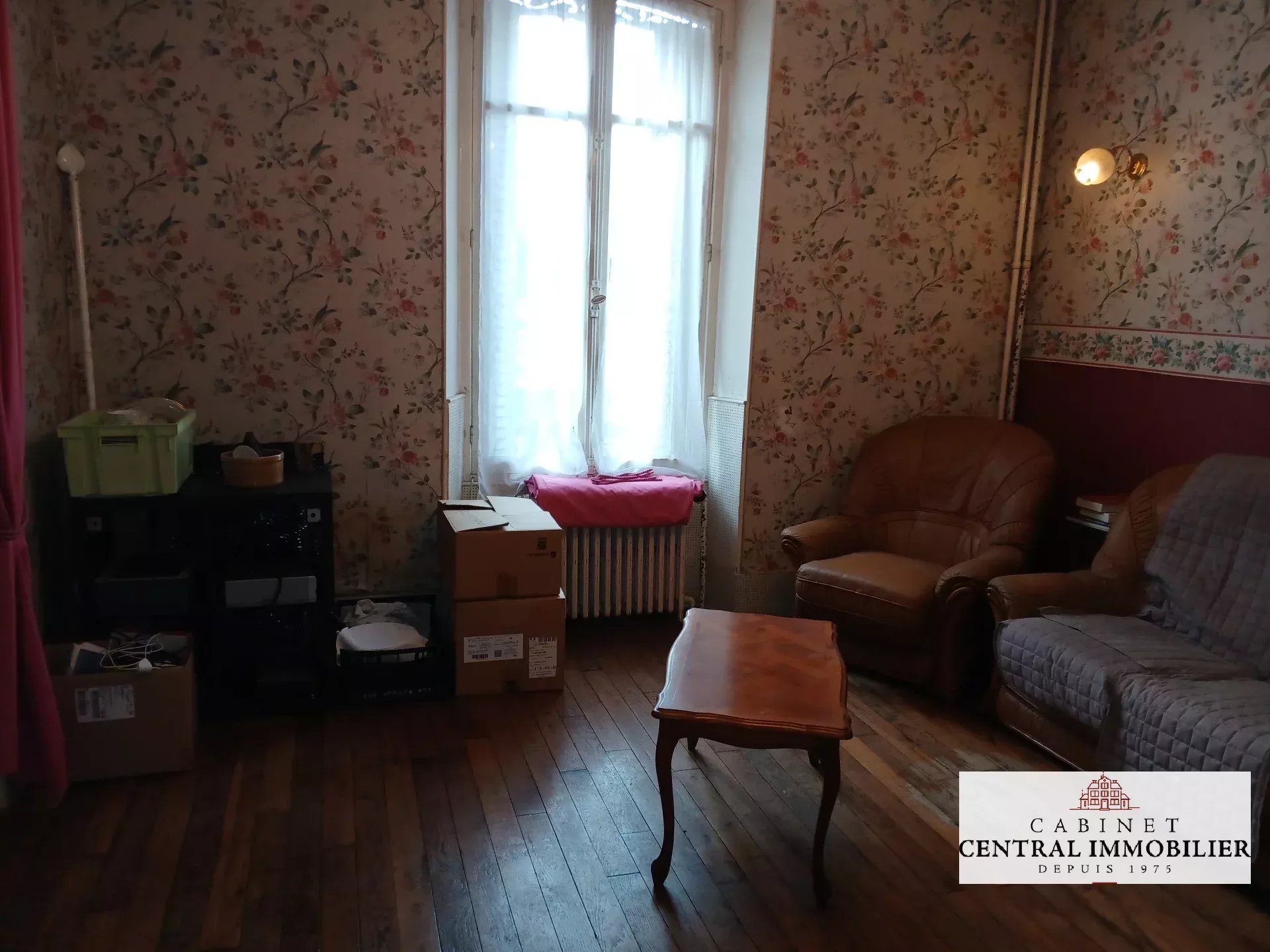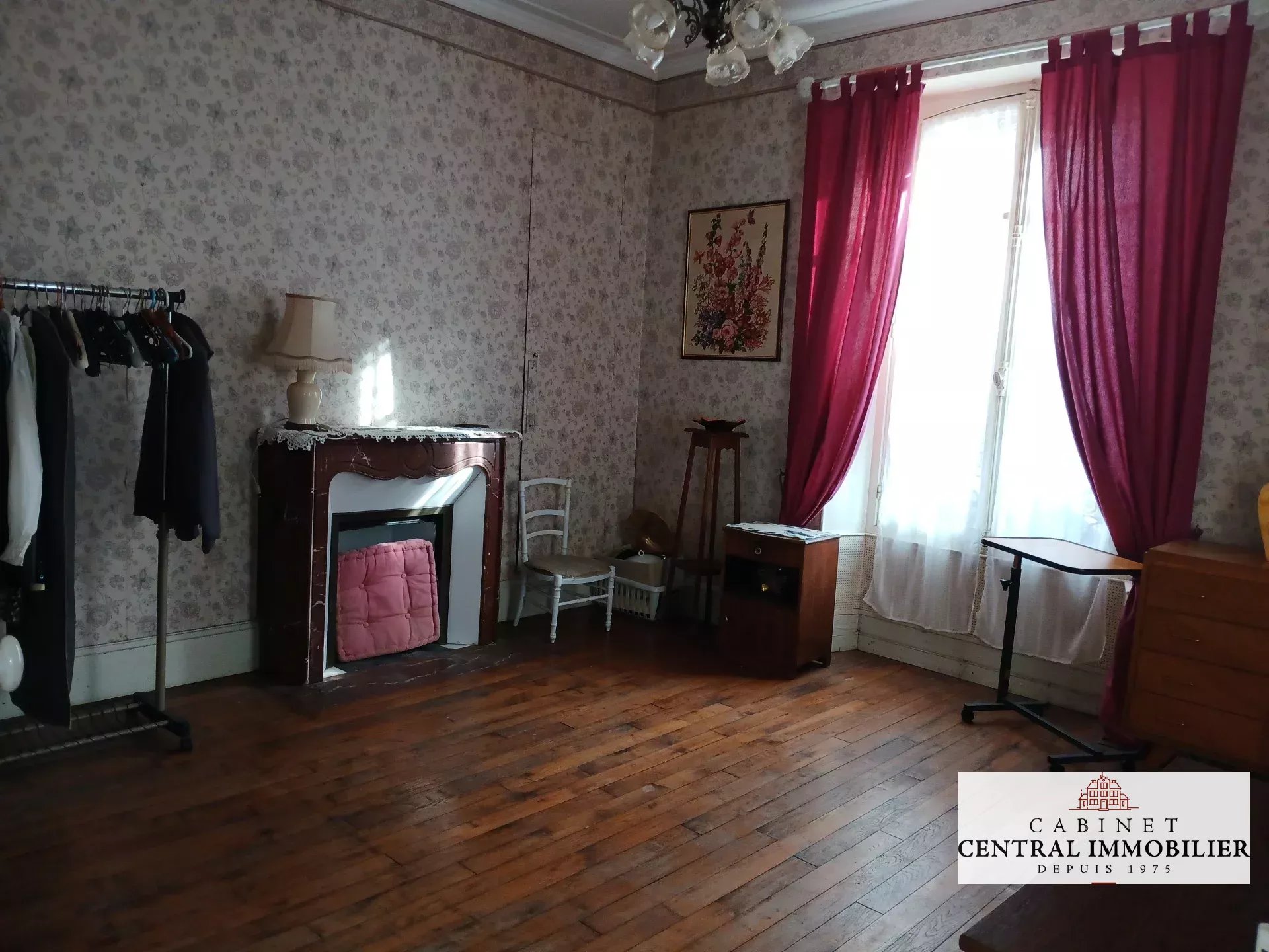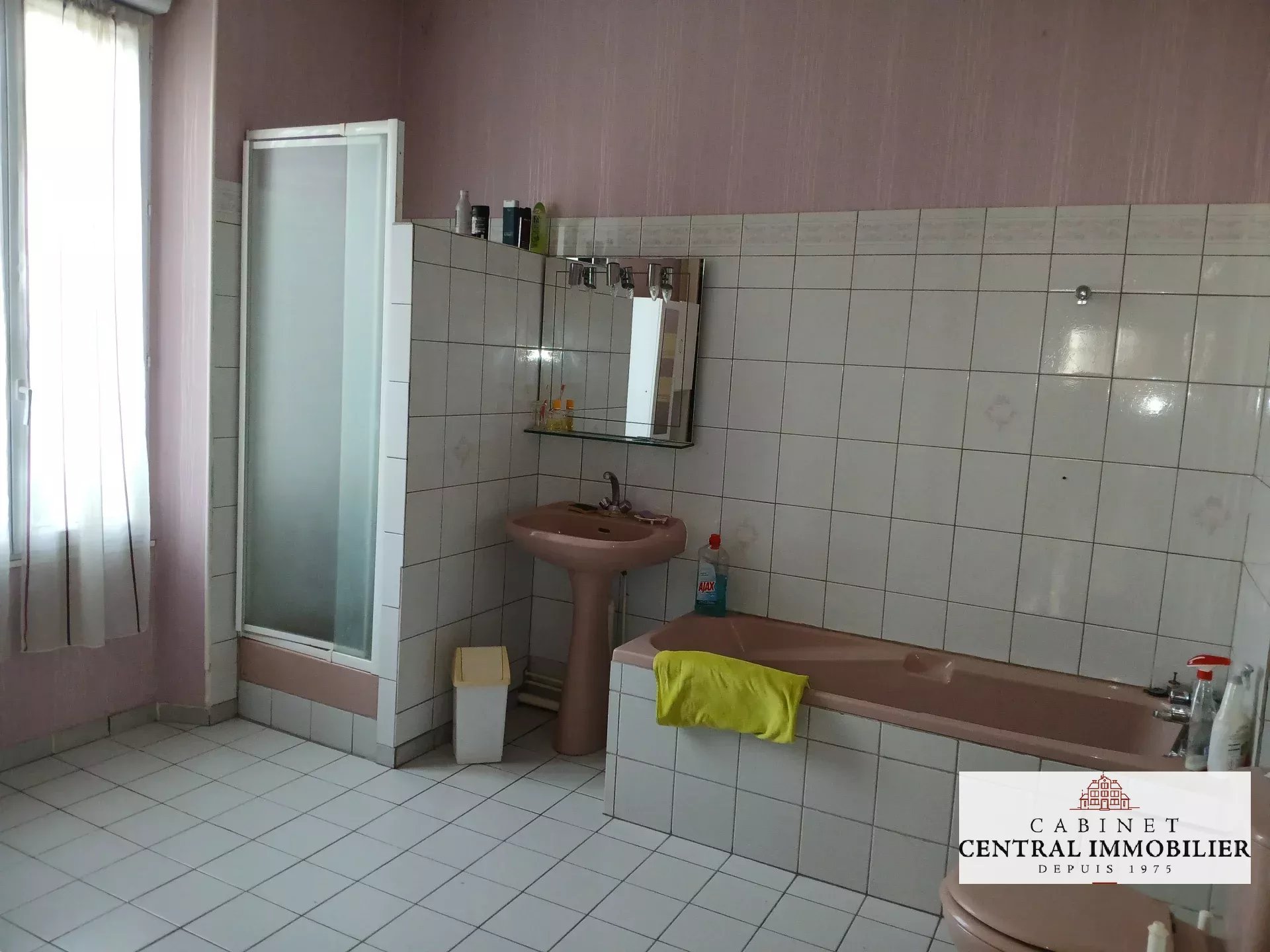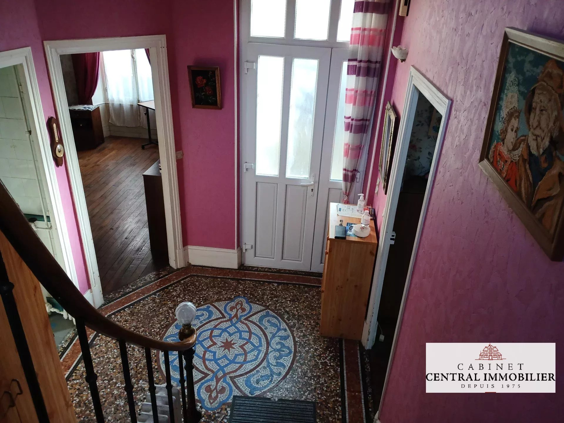 Maison comprenant : entrée sol mosaïque, cuisine de 11m² carrelée aménagée équipée avec placard, véranda de 11.60m² carrelée accès jardin, salon de 14.30m² parqueté, séjour de 17.40m² parqueté avec cheminée marbre, salle d'eau wc carrelée. À l'étage : palier parqueté, 2 chambres de 14.50m² et 17.30m² parquetées avec placards, salle de bains carrelée (baignoire/douche avec wc et placard). Au 2ème niveau : palier parqueté, 2 chambres de 13.40m² et 14.50m² au sol. Cave sous l'ensemble compartimenté en cellier, chaufferie et wc. Chauffage central par pompe à chaleur. 2 remises. Terrain clos.
