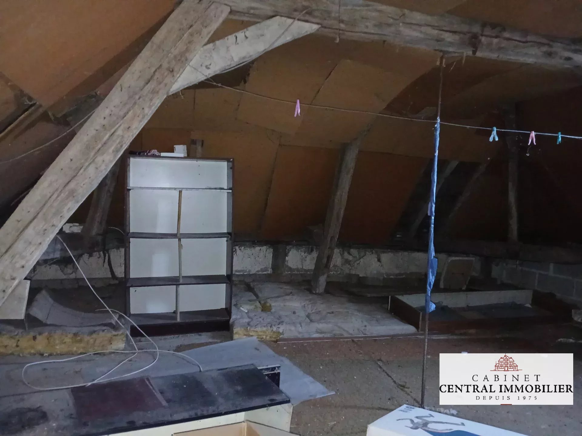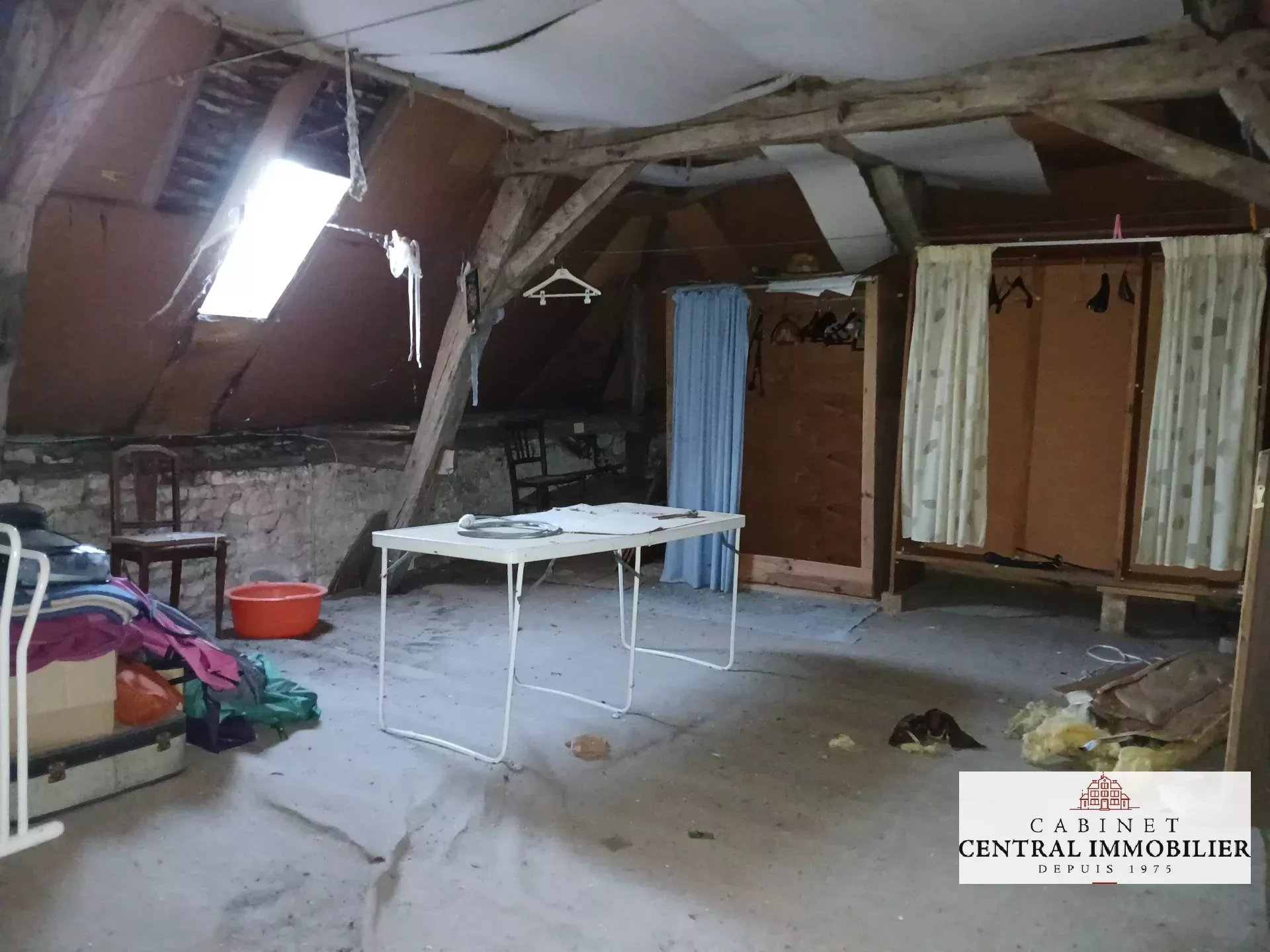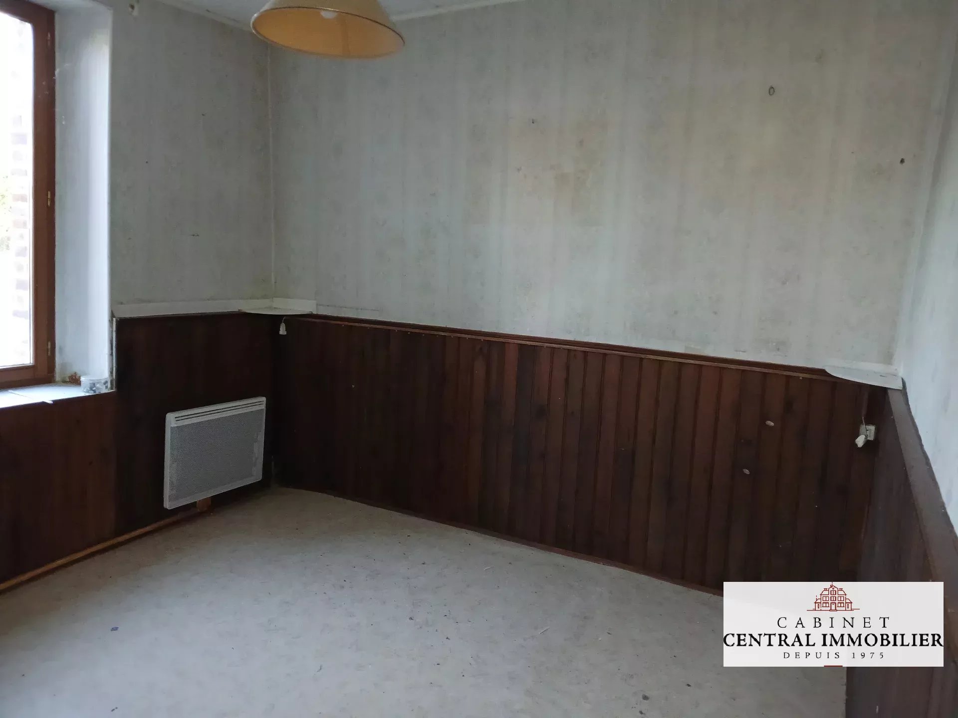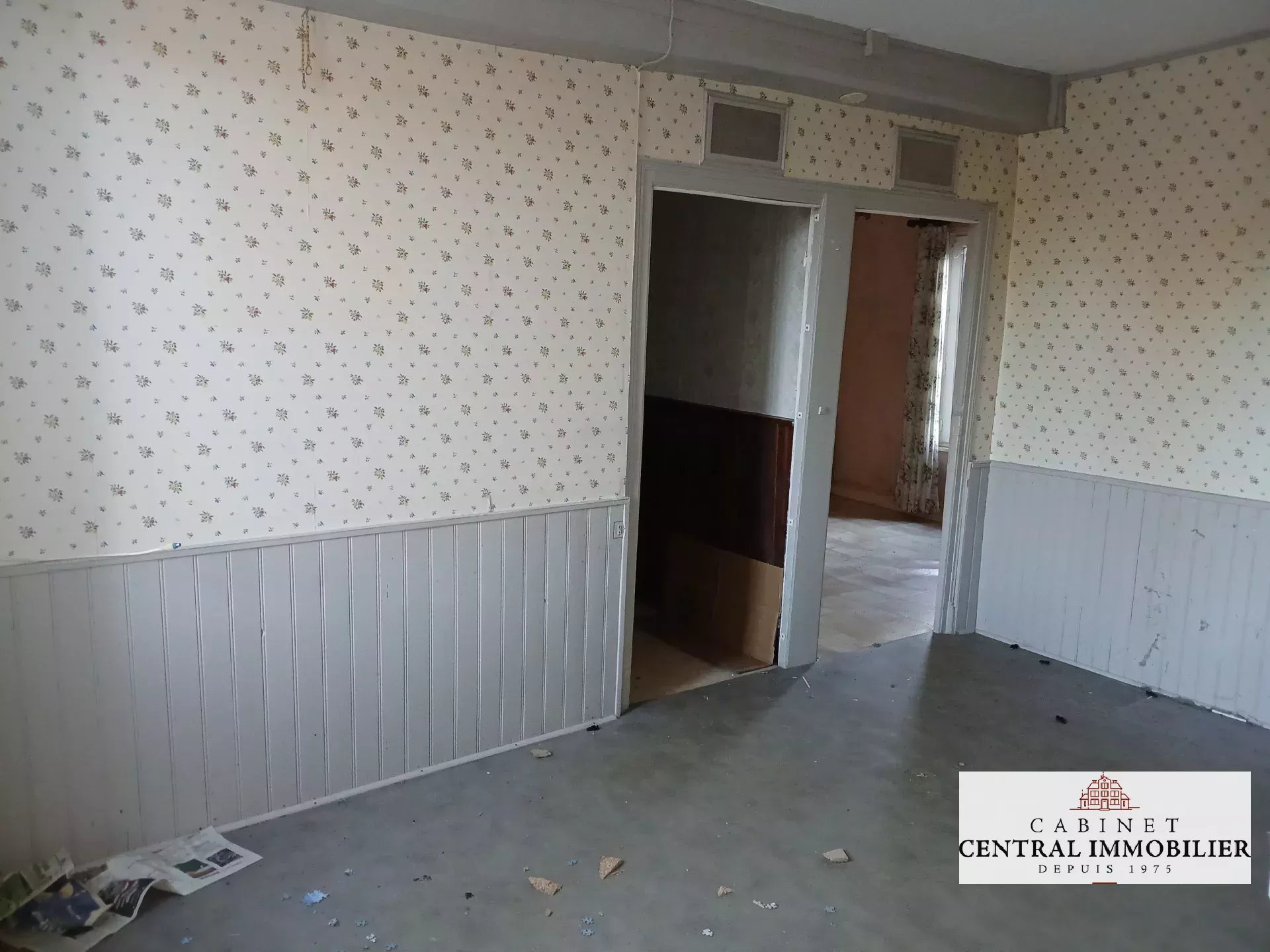 Maison à rénover comprenant : entrée carrelée, cuisine, séjour sol lino avec conduit de cheminée, salon sol lino, salle d'eau, wc, 2 chambres sol lino. Grenier aménageable sur l'ensemble. Double vitrage. Volets bois. Chauffage électrique. Cave. Remise. Belle grange avec point d'eau.