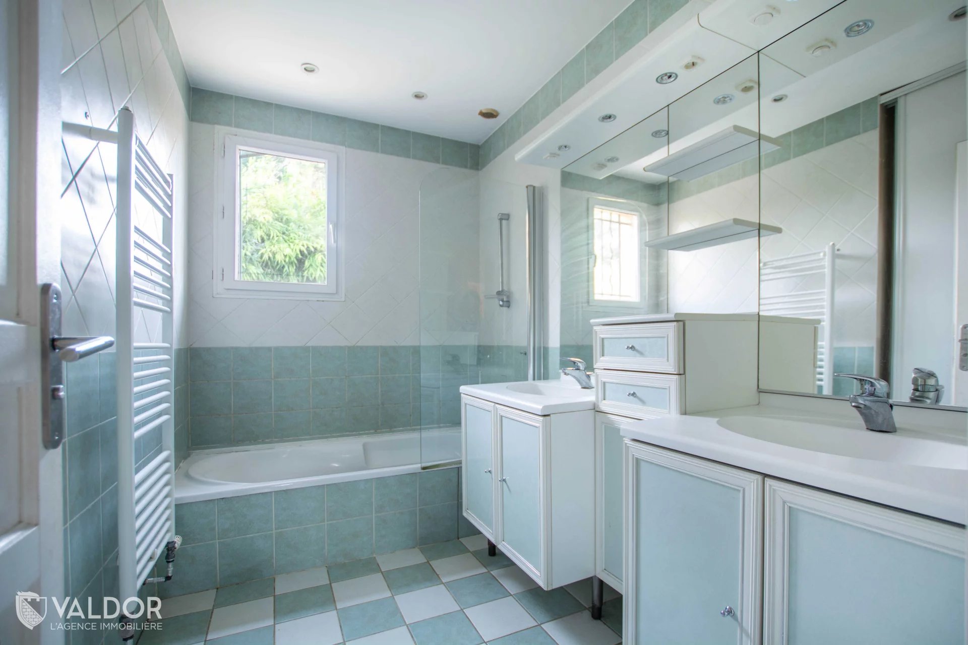 À l’étage, une grande salle polyvalente de plus de 30 m², dominant le séjour, offre un espace modulable selon les besoins de la famille.