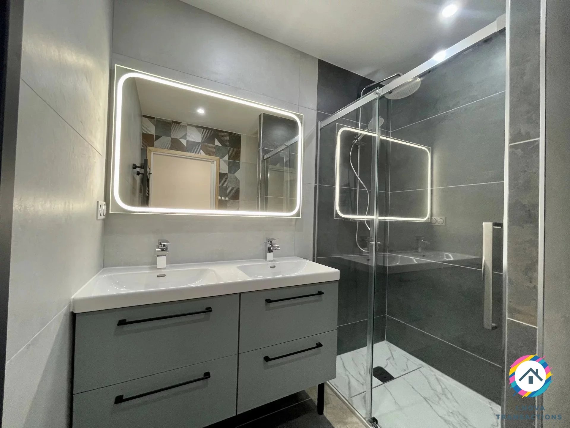 Conçue pour offrir confort et modernité, elle se compose d’une cuisine entièrement équipée ouverte sur le séjour et la salle à manger, créant un espace convivial et fonctionnel où la lumière naturelle s’invite tout au long de la journée.