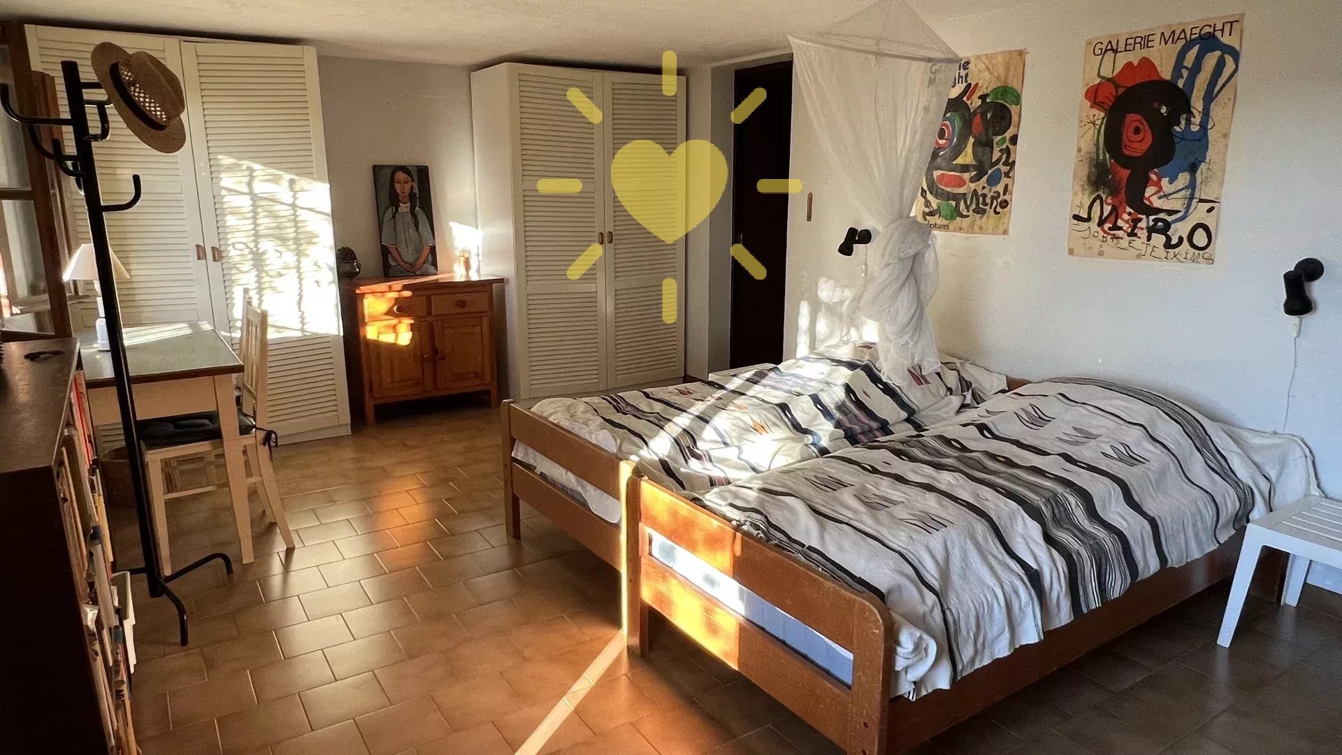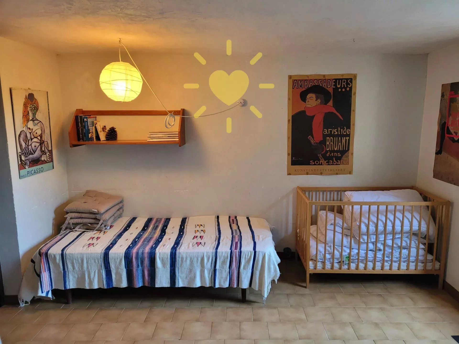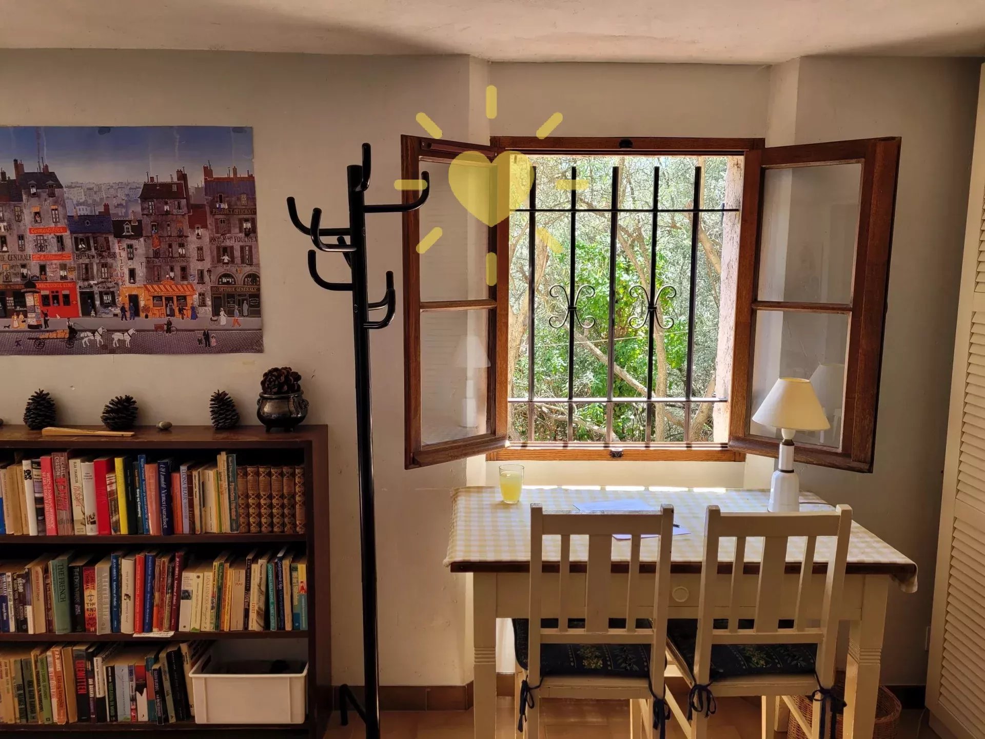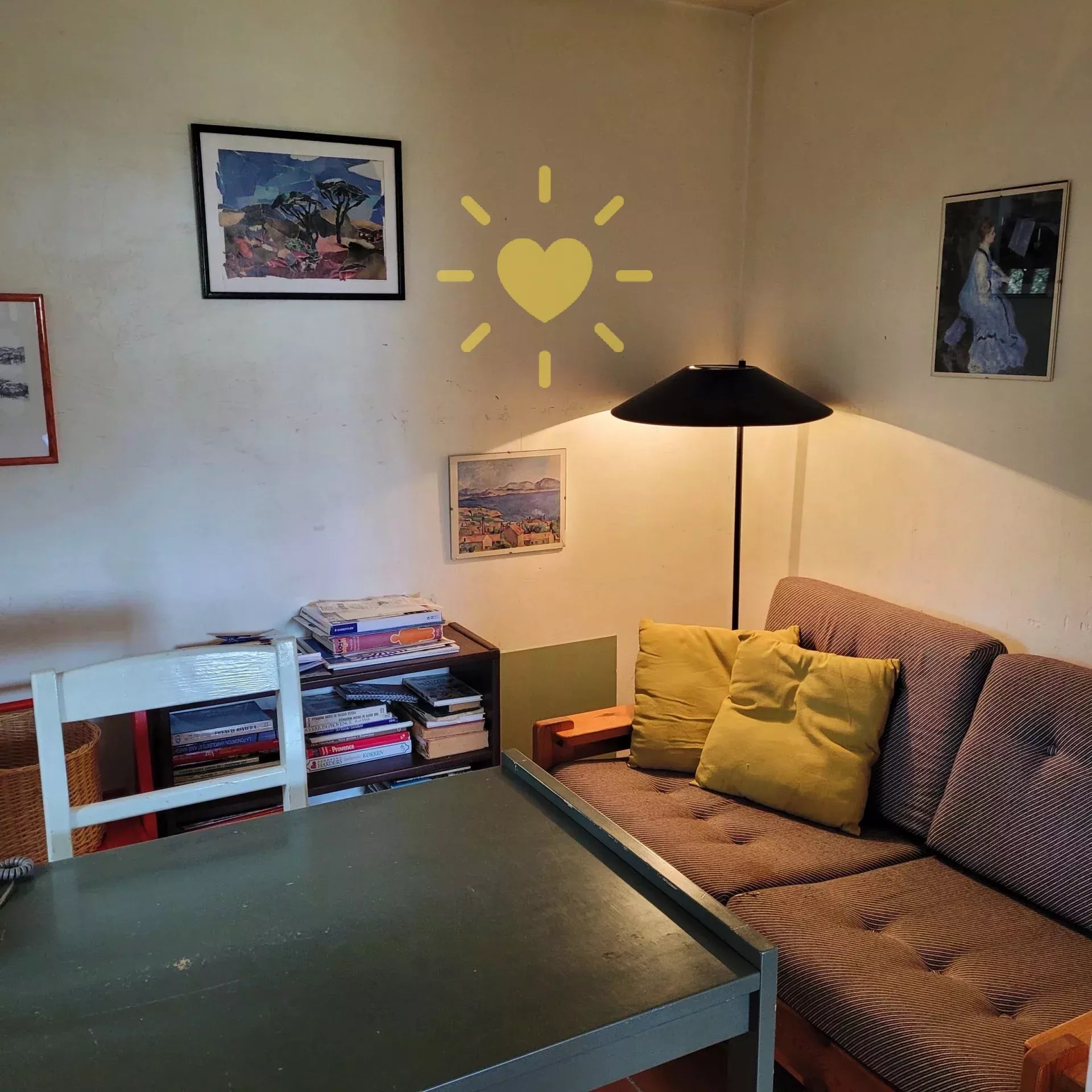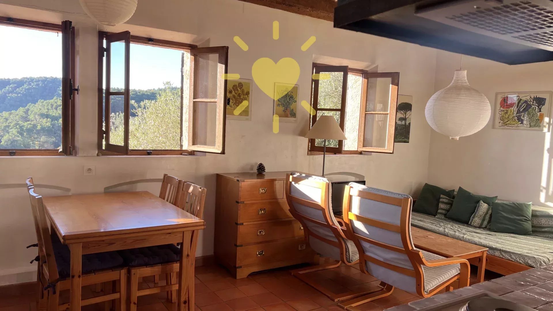 Sur un terrain de 2 200 m2, villa de 65 m2 habitable, au milieu des oliviers et comprenant : Rez-de-chaussée : entrée, séjour avec cheminée et cuisine, espace bureau, mezzanine. Rez-de-jardin : chambre, salle d'eau avec WC, débarras. Très jolie vue sur la campagne, exposition Sud. Surface totale : 77 m2.