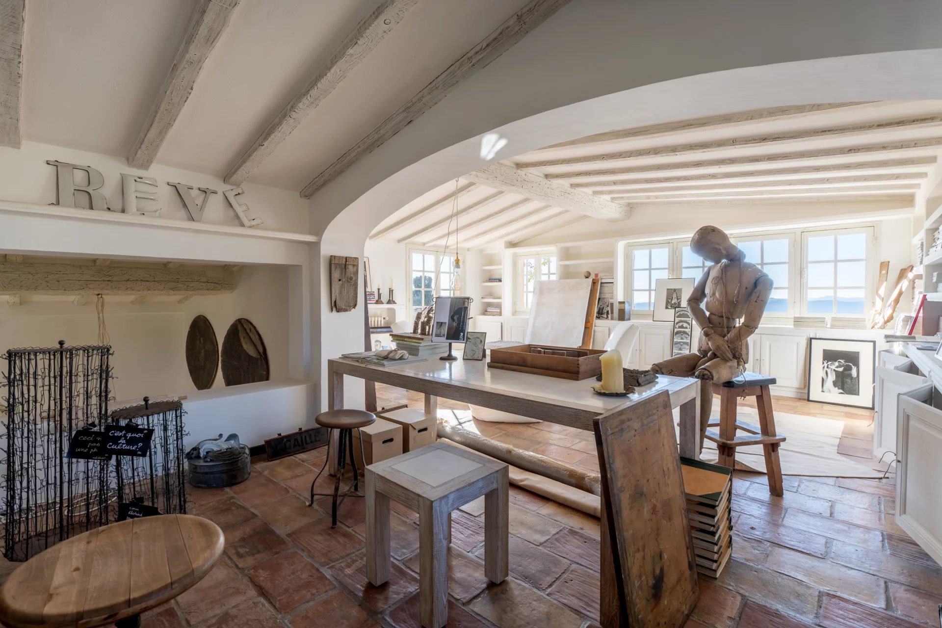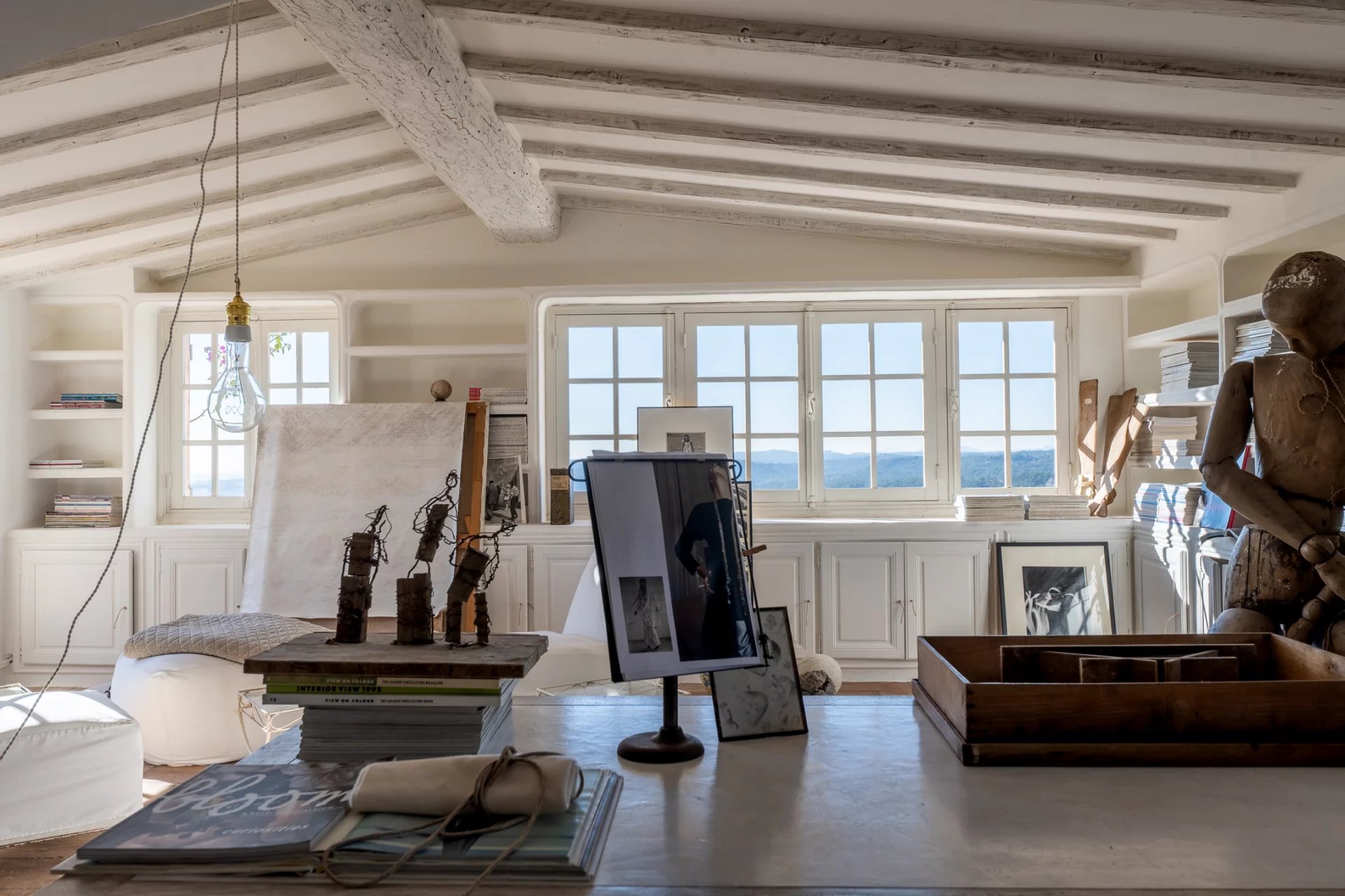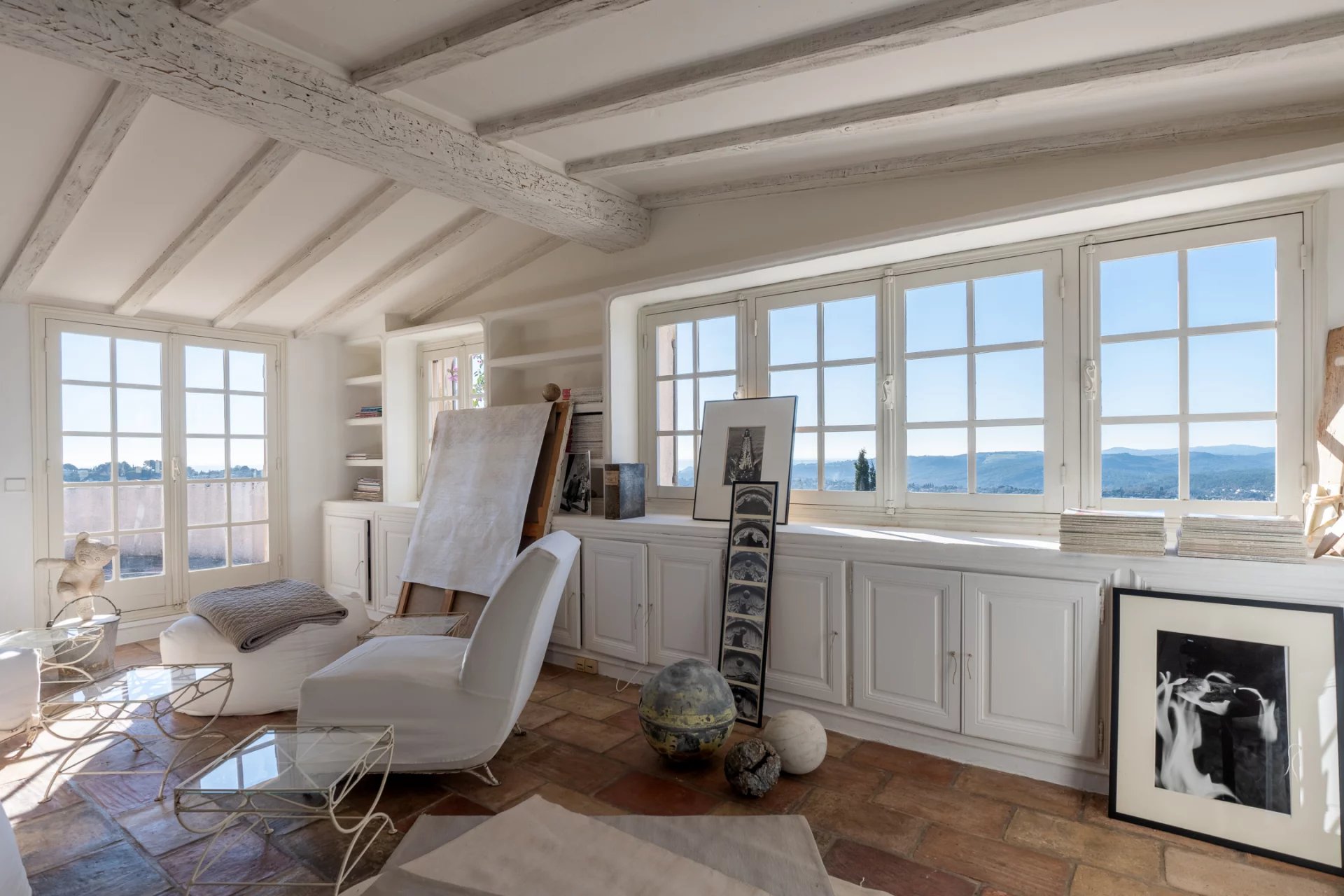 Surplombant le village historique de Saint-Paul-de-Vence, à deux pas de la Fondation Maeght et du cœur du village, cette splendide maison, magnifiée par la décoratrice Jacqueline Morabito, se déploie sur trois niveaux pour une superficie totale d’environ 280 m².