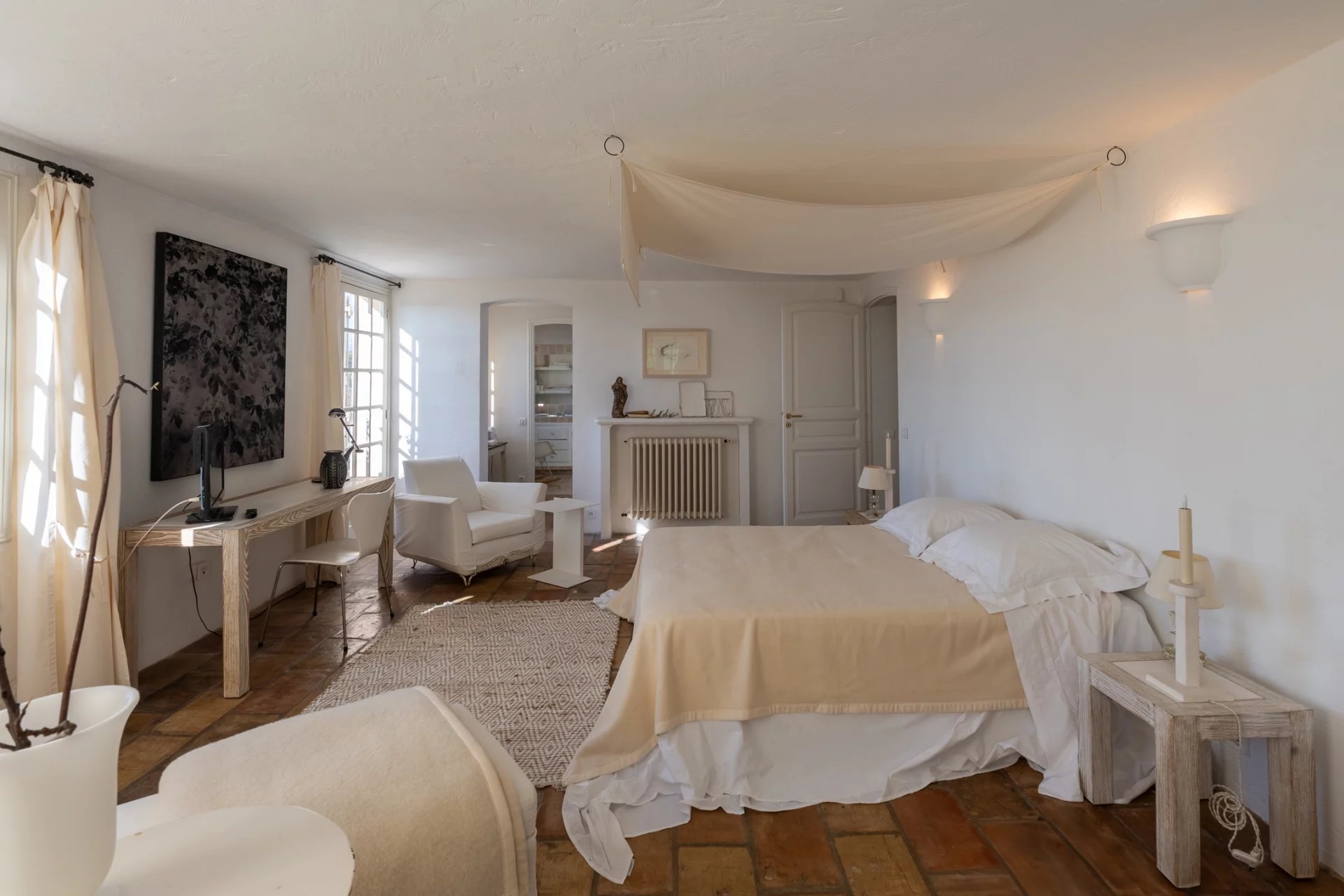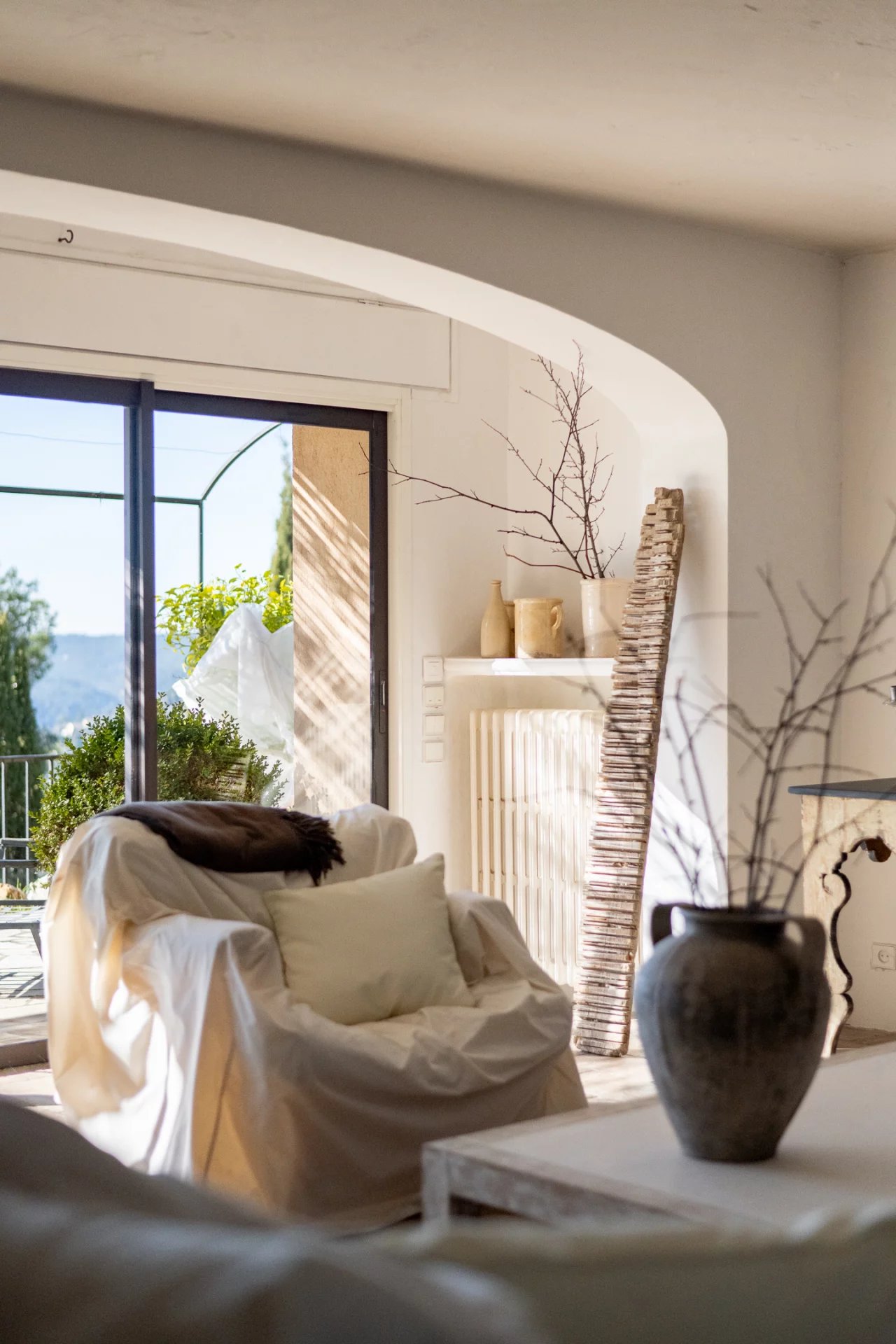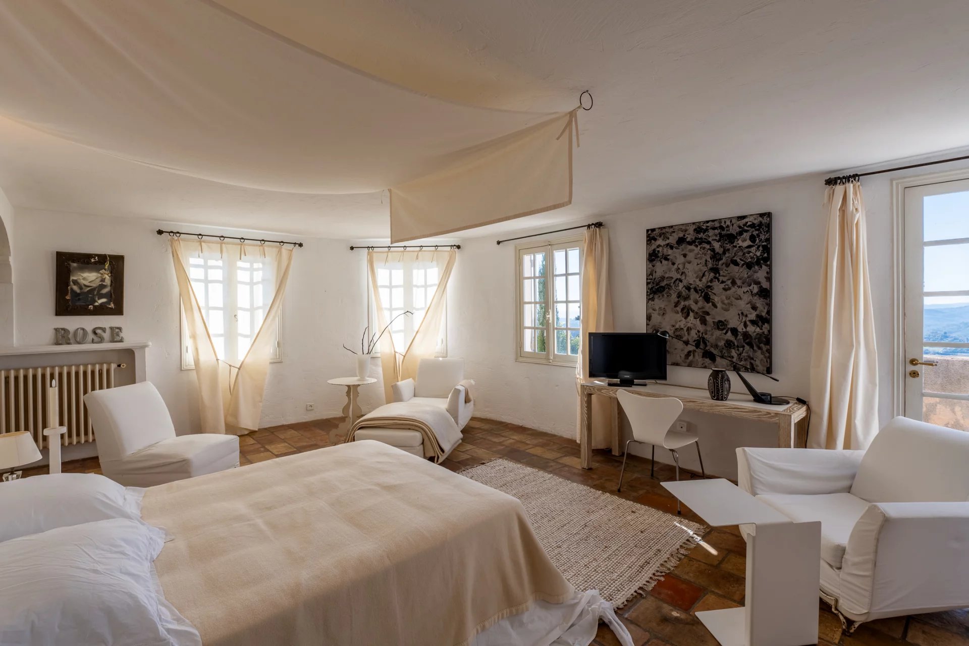 Surplombant le village historique de Saint-Paul-de-Vence, à deux pas de la Fondation Maeght et du cœur du village, cette splendide maison, magnifiée par la décoratrice Jacqueline Morabito, se déploie sur trois niveaux pour une superficie totale d’environ 280 m².