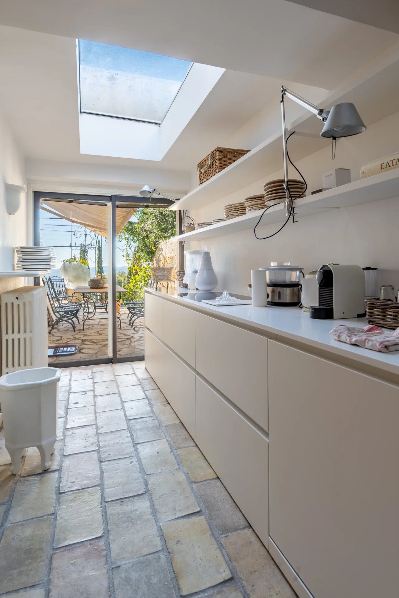 Lumineuse et apaisante, la maison offre une vue panoramique sur la Baie des Anges et sur le village de Saint-Paul.