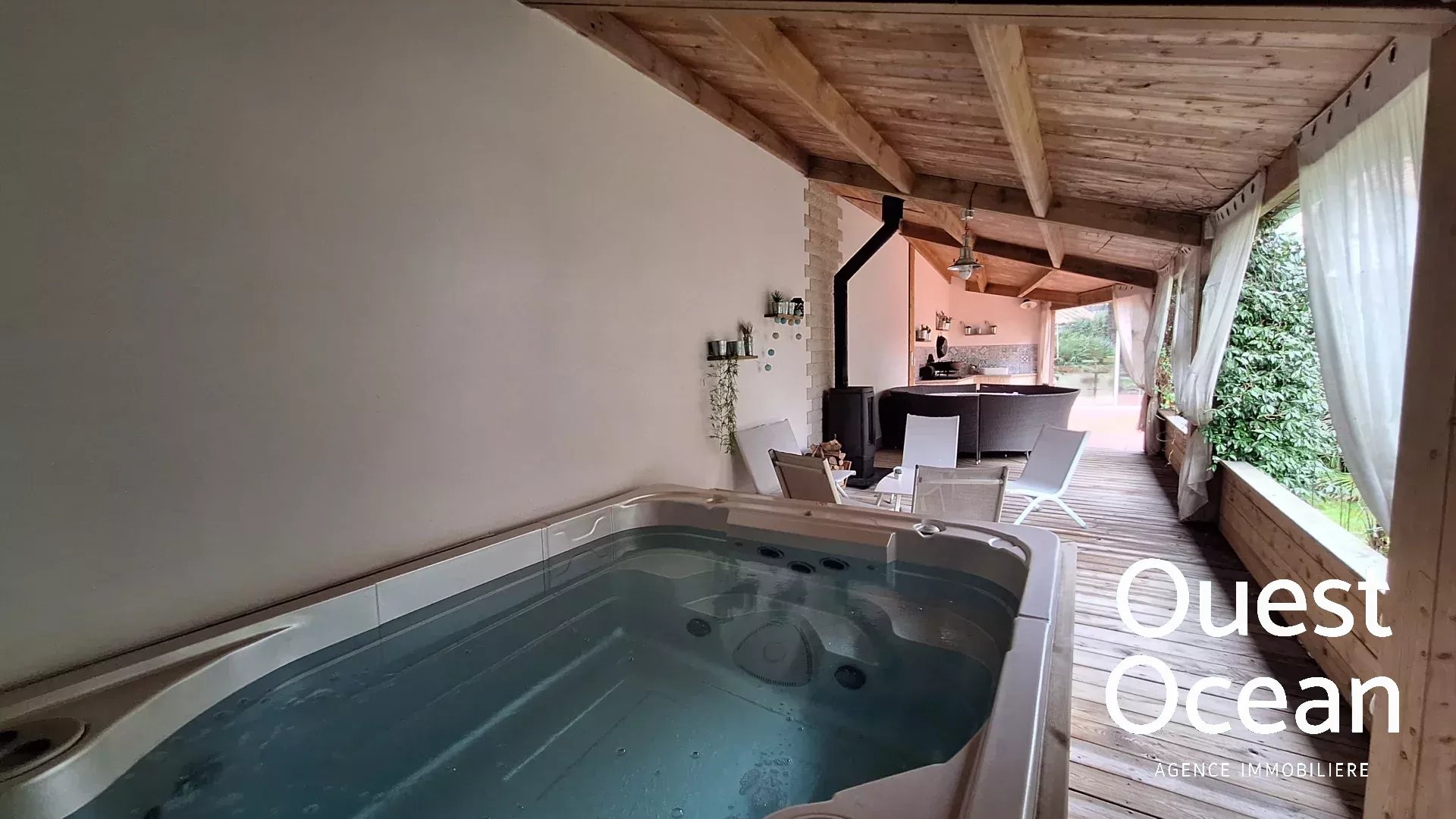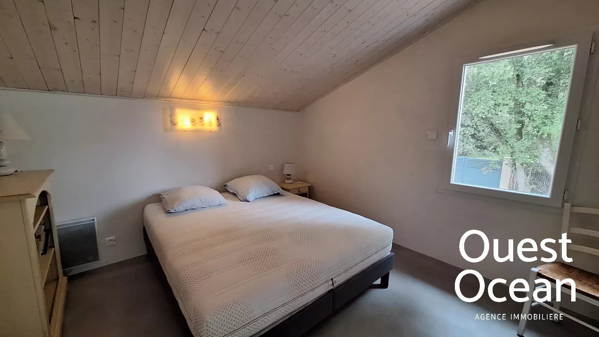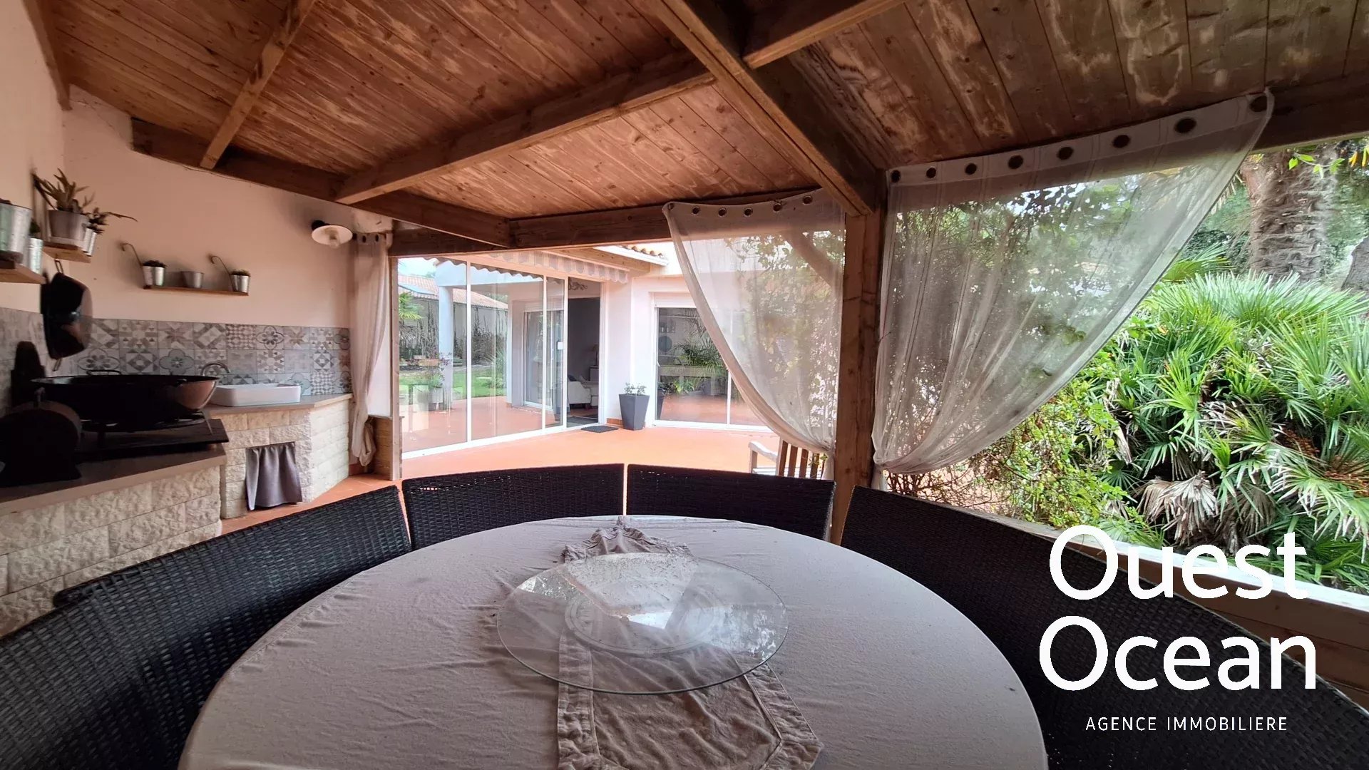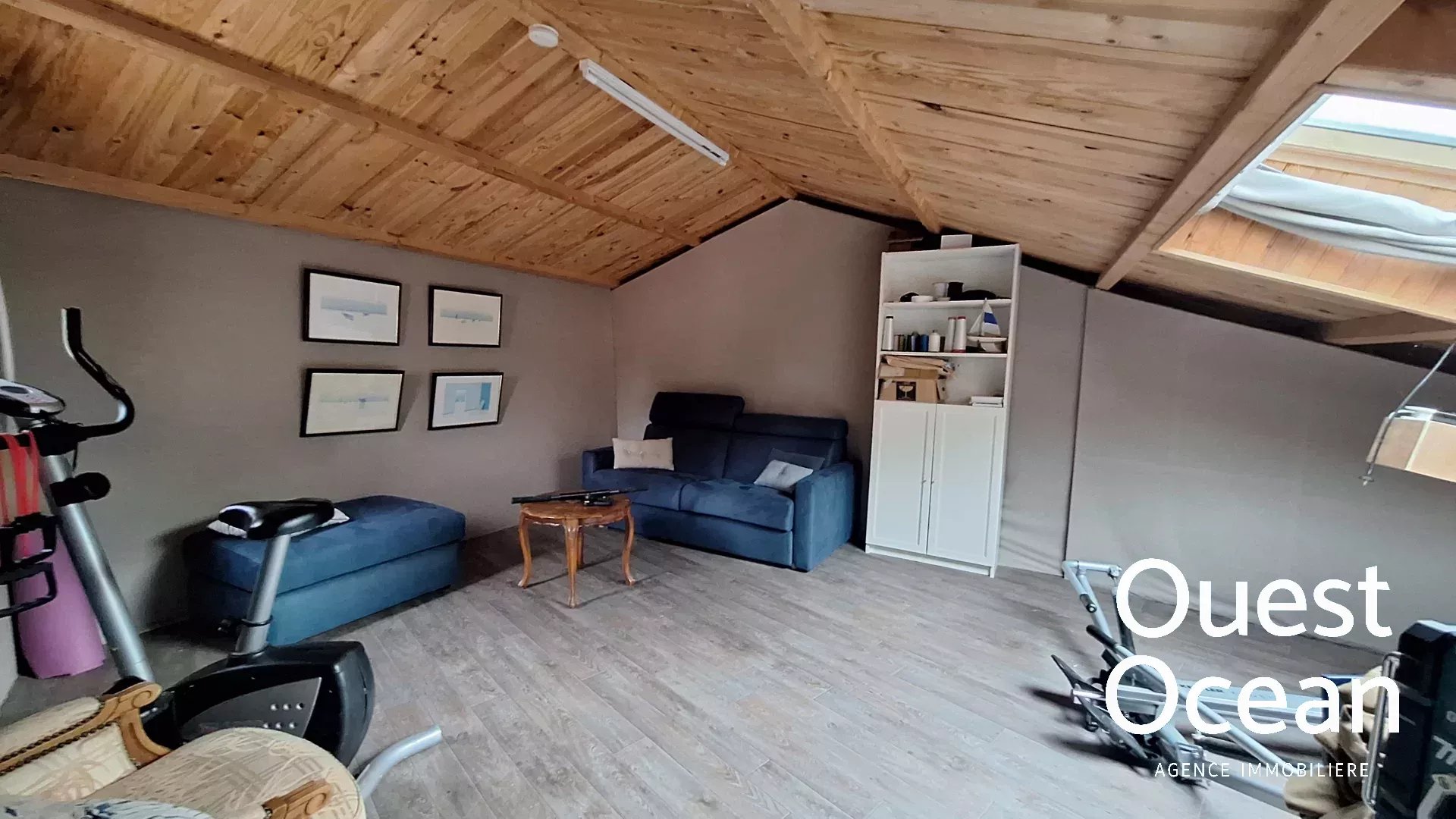 Votre agence Ouest Océan ,vous accueille téléphoniquement du lundi au vendredi à partir de 8h30.Prenez rendez-vous avec notre conseiller Yann ROBINEAU afin de découvrir cet ensemble immobilier dans le Quartier de BOISVINET à deux pas de la plage et de la foret. LOGEMENT 1 Une maison principale de 112m², composée d'une grande cuisine meublée et équipée digne d'un chef, une grande pièce de vie au sud avec son poêle à pellets, un dégagement desservant trois chambres, salles d'eaux, WC dont un séparé, bureau avec mezzanine. Un grand garage avec sont portail motorisé pour venir glissé un bateau, accompagné de sa mezzanine pour une fonction de salle de sport ou de jeux.Un spa de nage , sauna à pierres chaudes, douche extérieur, carpot , cuisine d'été.