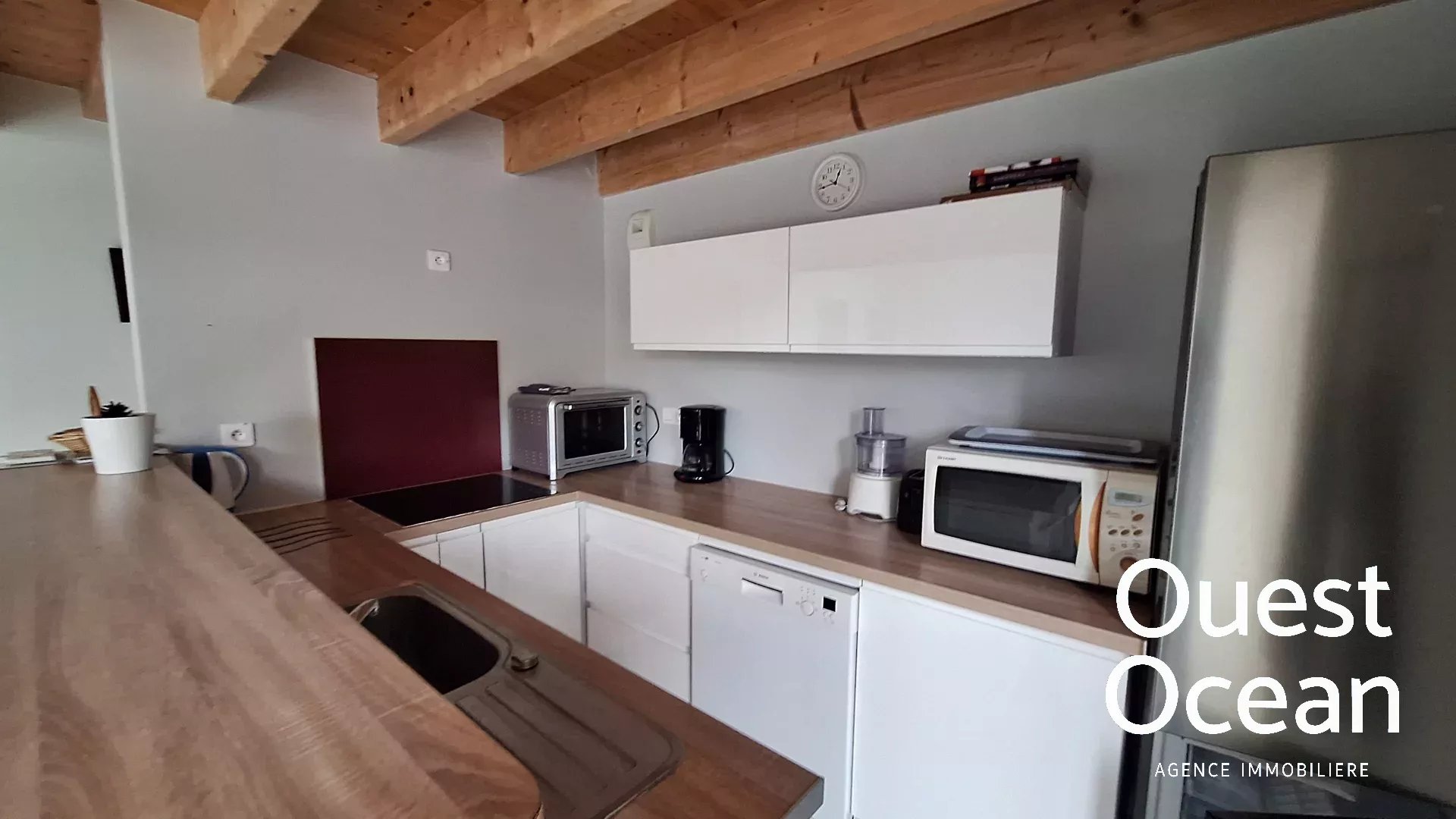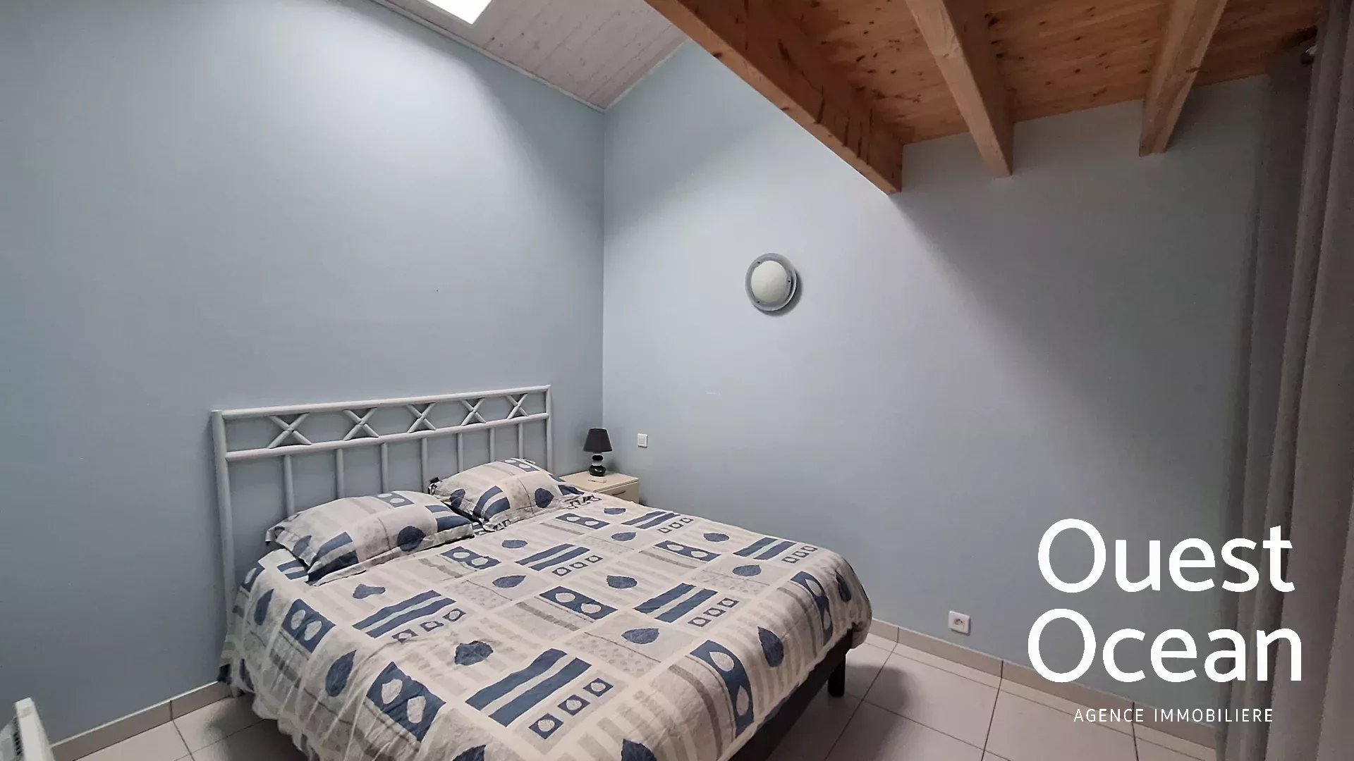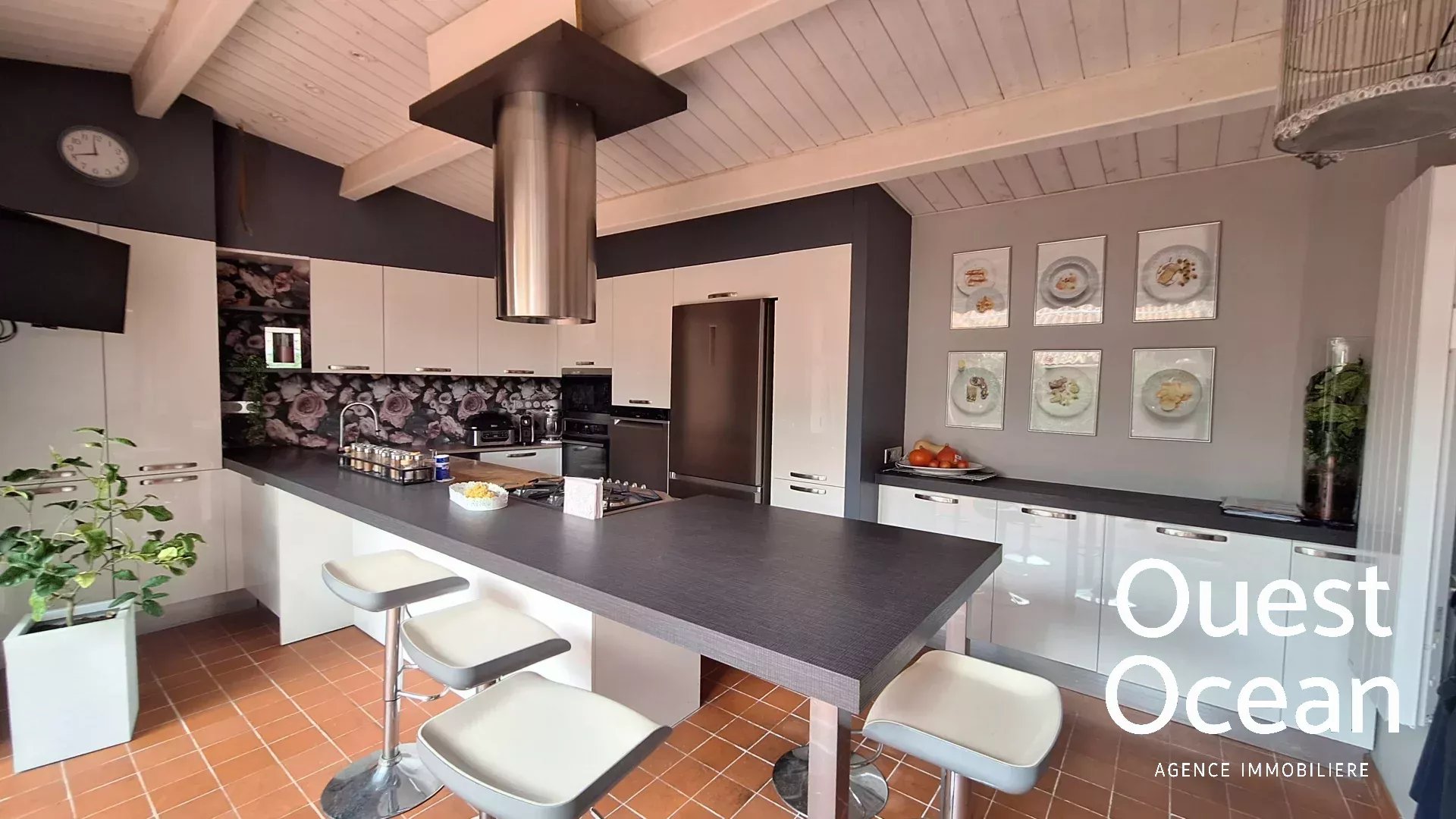 Votre agence Ouest Océan ,vous accueille téléphoniquement du lundi au vendredi à partir de 8h30.Prenez rendez-vous avec notre conseiller Yann ROBINEAU afin de découvrir cet ensemble immobilier dans le Quartier de BOISVINET à deux pas de la plage et de la foret. LOGEMENT 1 Une maison principale de 112m², composée d'une grande cuisine meublée et équipée digne d'un chef, une grande pièce de vie au sud avec son poêle à pellets, un dégagement desservant trois chambres, salles d'eaux, WC dont un séparé, bureau avec mezzanine. Un grand garage avec sont portail motorisé pour venir glissé un bateau, accompagné de sa mezzanine pour une fonction de salle de sport ou de jeux.Un spa de nage , sauna à pierres chaudes, douche extérieur, carpot , cuisine d'été.