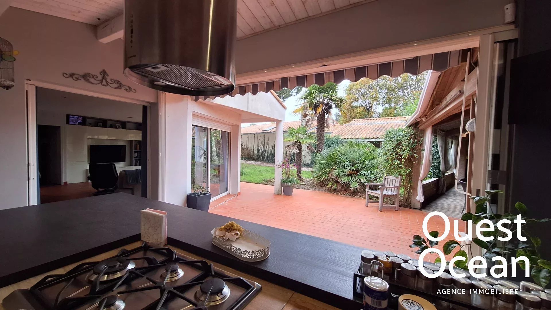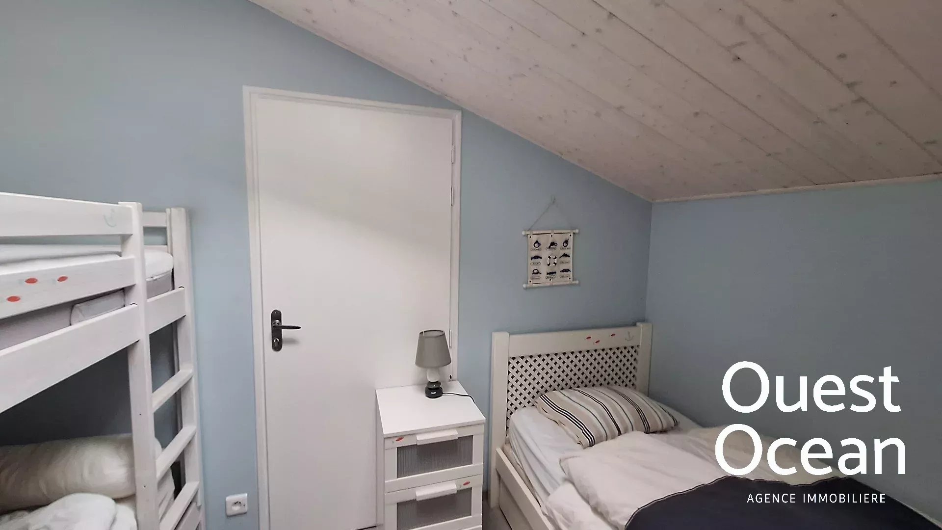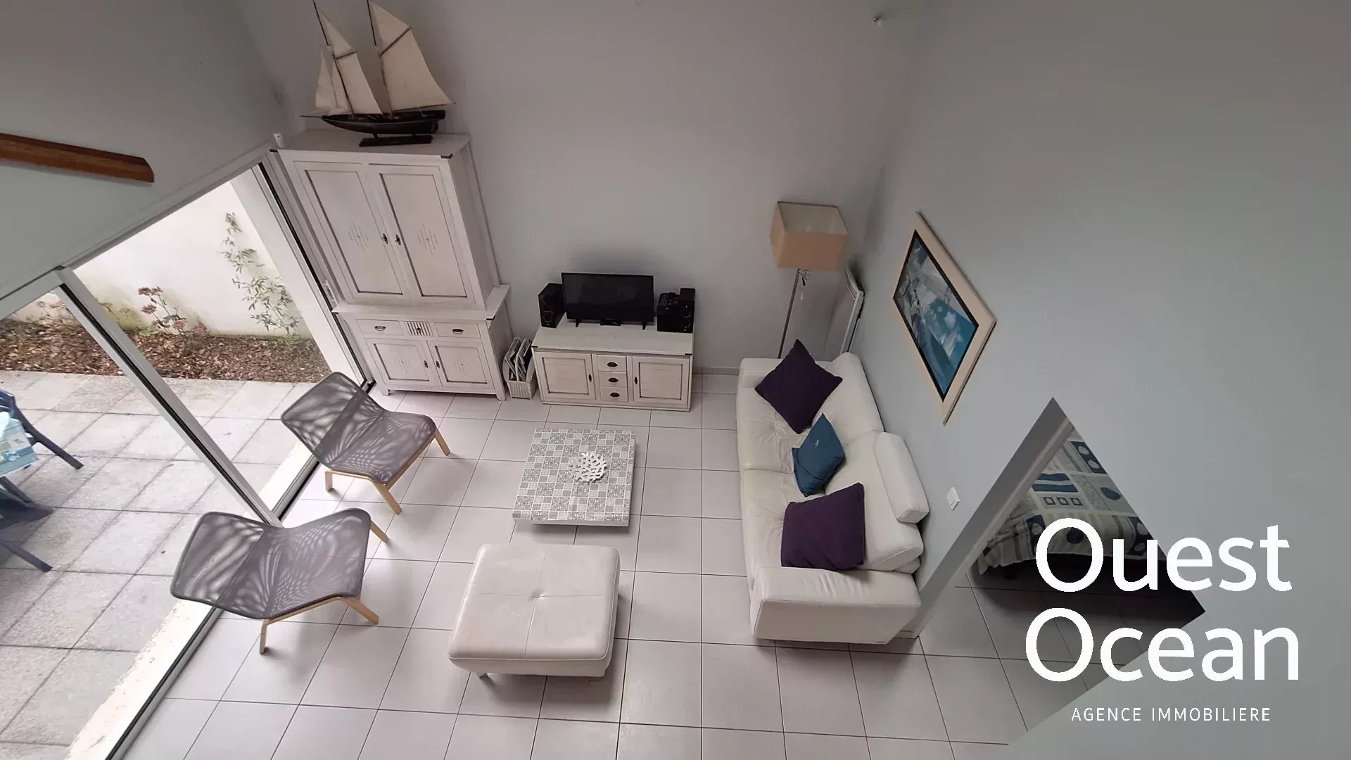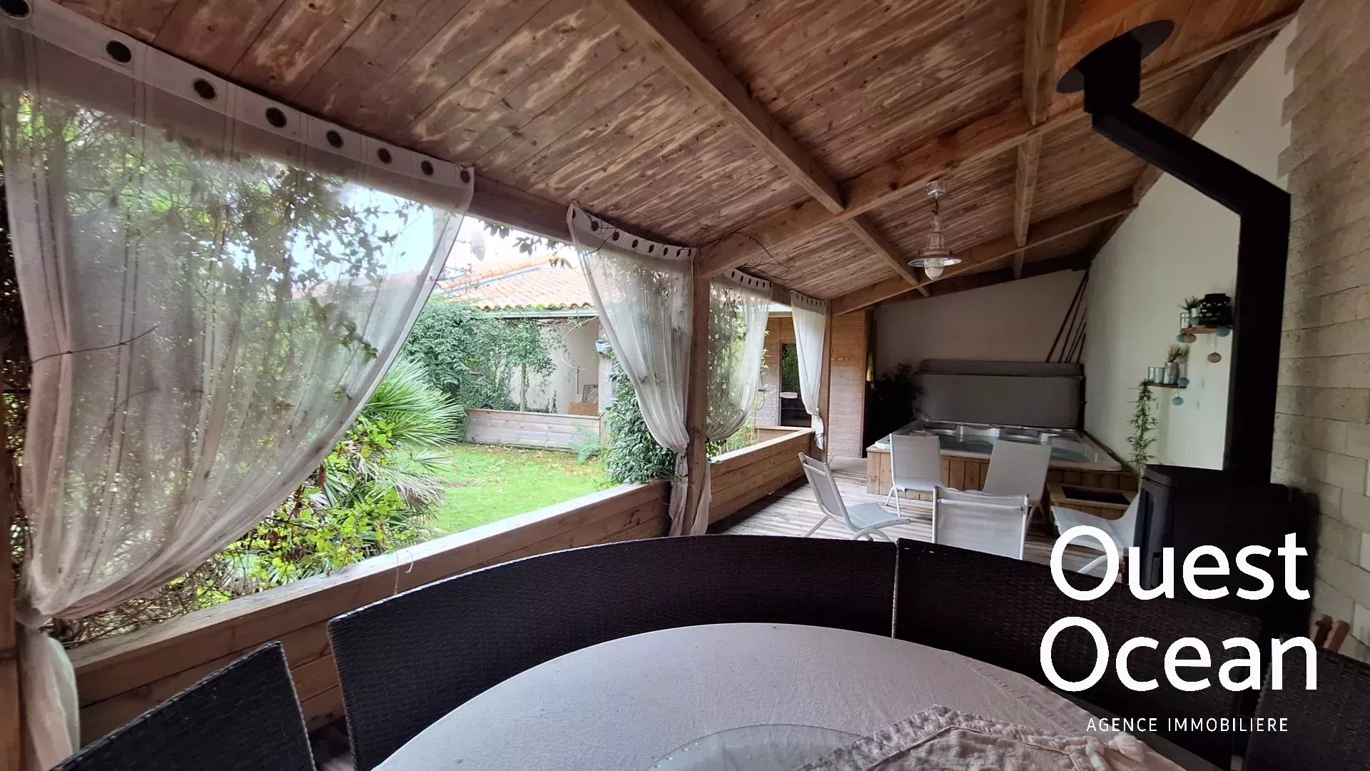 Votre agence Ouest Océan ,vous accueille téléphoniquement du lundi au vendredi à partir de 8h30.Prenez rendez-vous avec notre conseiller Yann ROBINEAU afin de découvrir cet ensemble immobilier dans le Quartier de BOISVINET à deux pas de la plage et de la foret. LOGEMENT 1 Une maison principale de 112m², composée d'une grande cuisine meublée et équipée digne d'un chef, une grande pièce de vie au sud avec son poêle à pellets, un dégagement desservant trois chambres, salles d'eaux, WC dont un séparé, bureau avec mezzanine. Un grand garage avec sont portail motorisé pour venir glissé un bateau, accompagné de sa mezzanine pour une fonction de salle de sport ou de jeux.Un spa de nage , sauna à pierres chaudes, douche extérieur, carpot , cuisine d'été.