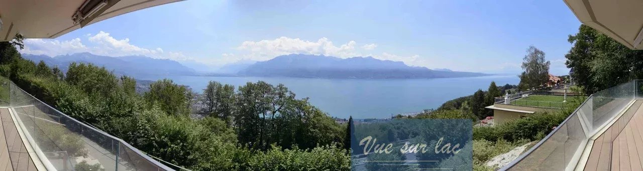 Terrasse Sud panoramique: vue sur le lac, Dents du Midi, Dents de Jaman, Vevey...