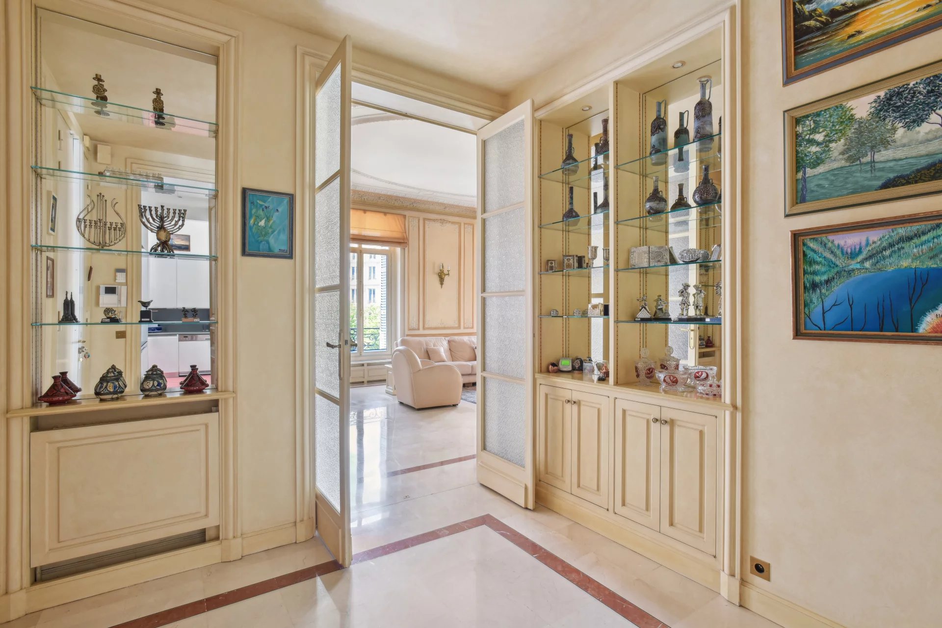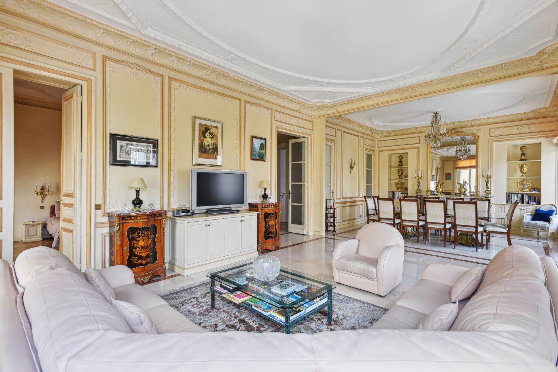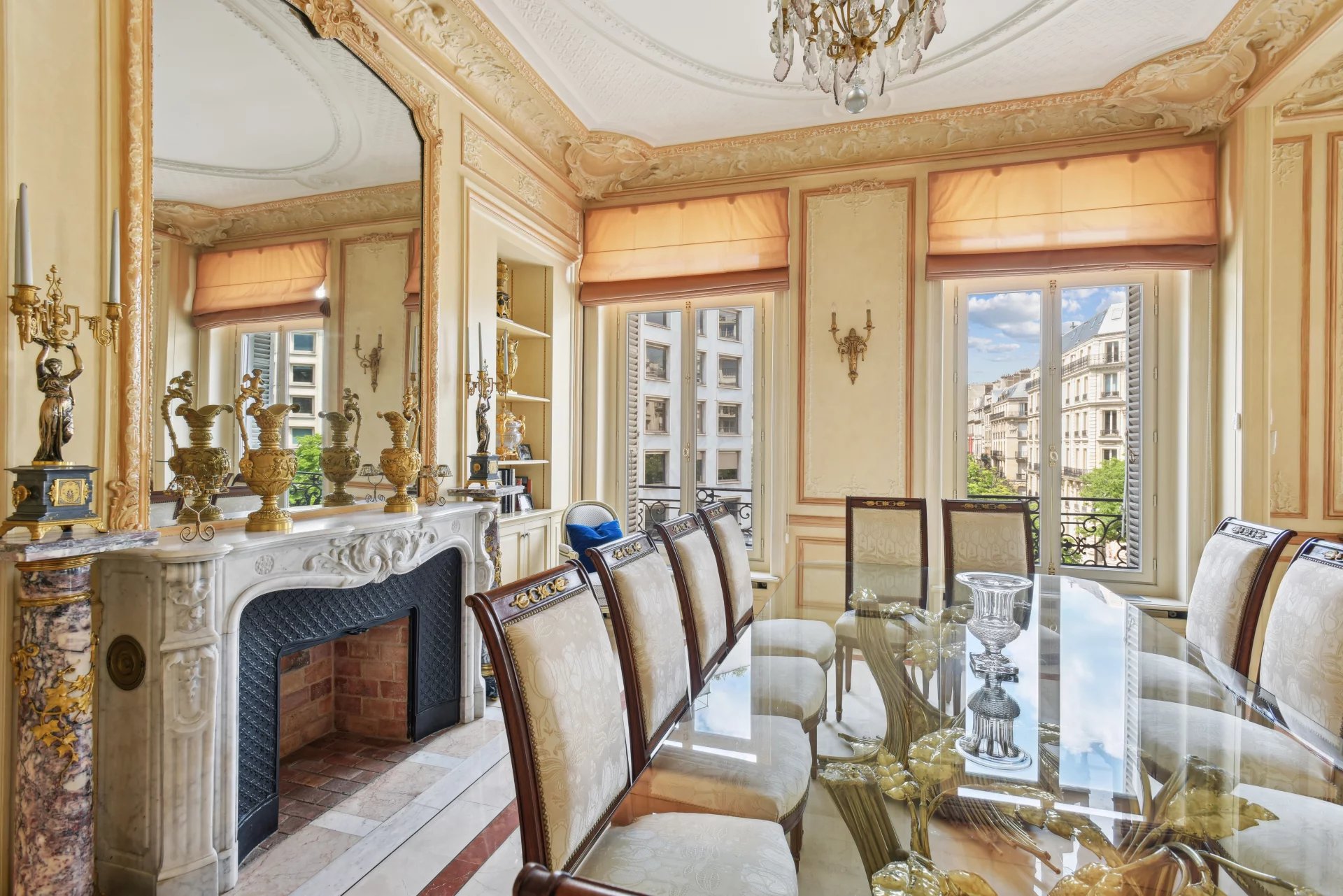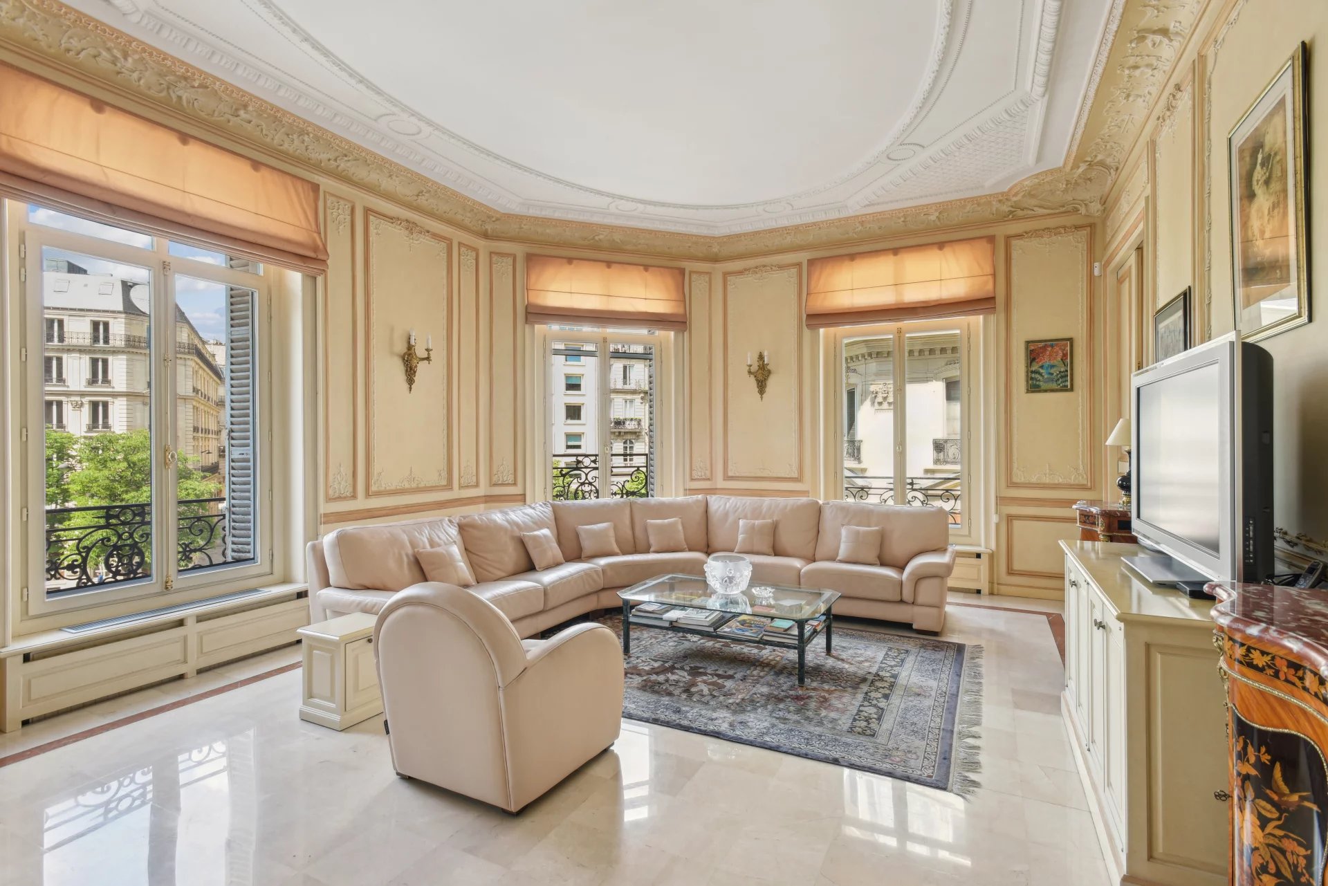 Paris 8ème - Rue François 1er Situé dans un magnifique immeuble en pierre de taille, à l'angle de la Rue François 1er et de l'Avenue George V, en plein cœur du prestigieux Triangle d’Or. Ce bien d'exception de 161m² comprend notamment une galerie d'entrée, une double pièce de réception avec des volumes exceptionnels (3,6m de hauteur sous-plafond), trois chambres dont une suite parentale, deux salles de bains, une cuisine équipée. L'appartement est en excellent état et possède tout le charme de l'ancien (parquets, moulures, cheminée et marbre d’époque). Très lumineux, exposition ouest, balcon avec vue dégagée sur l'Avenue George V et sur la Tour Eiffel. Un grande cave complète ce bien. Possibilité d'acquérir en sus une chambre de service.