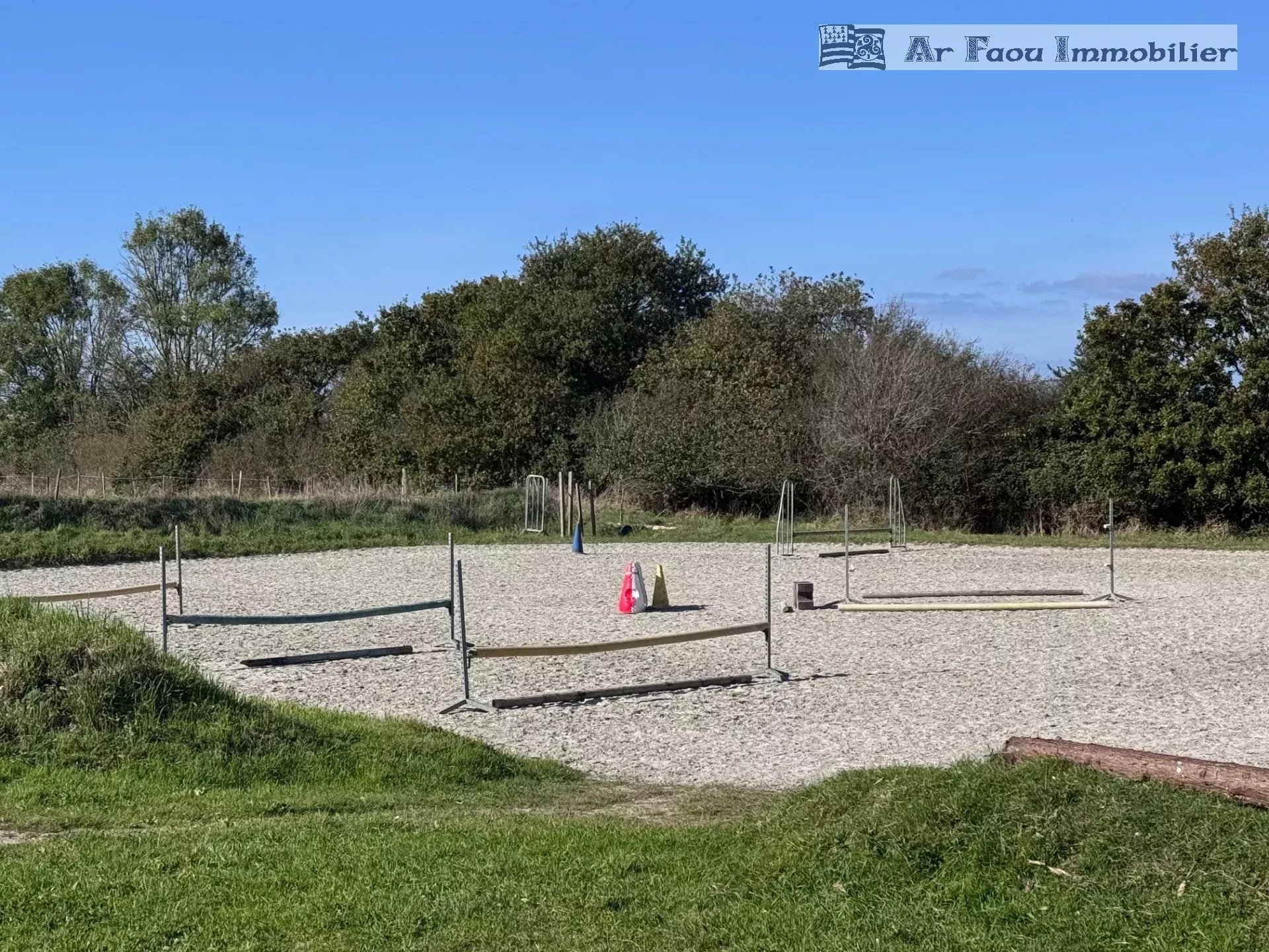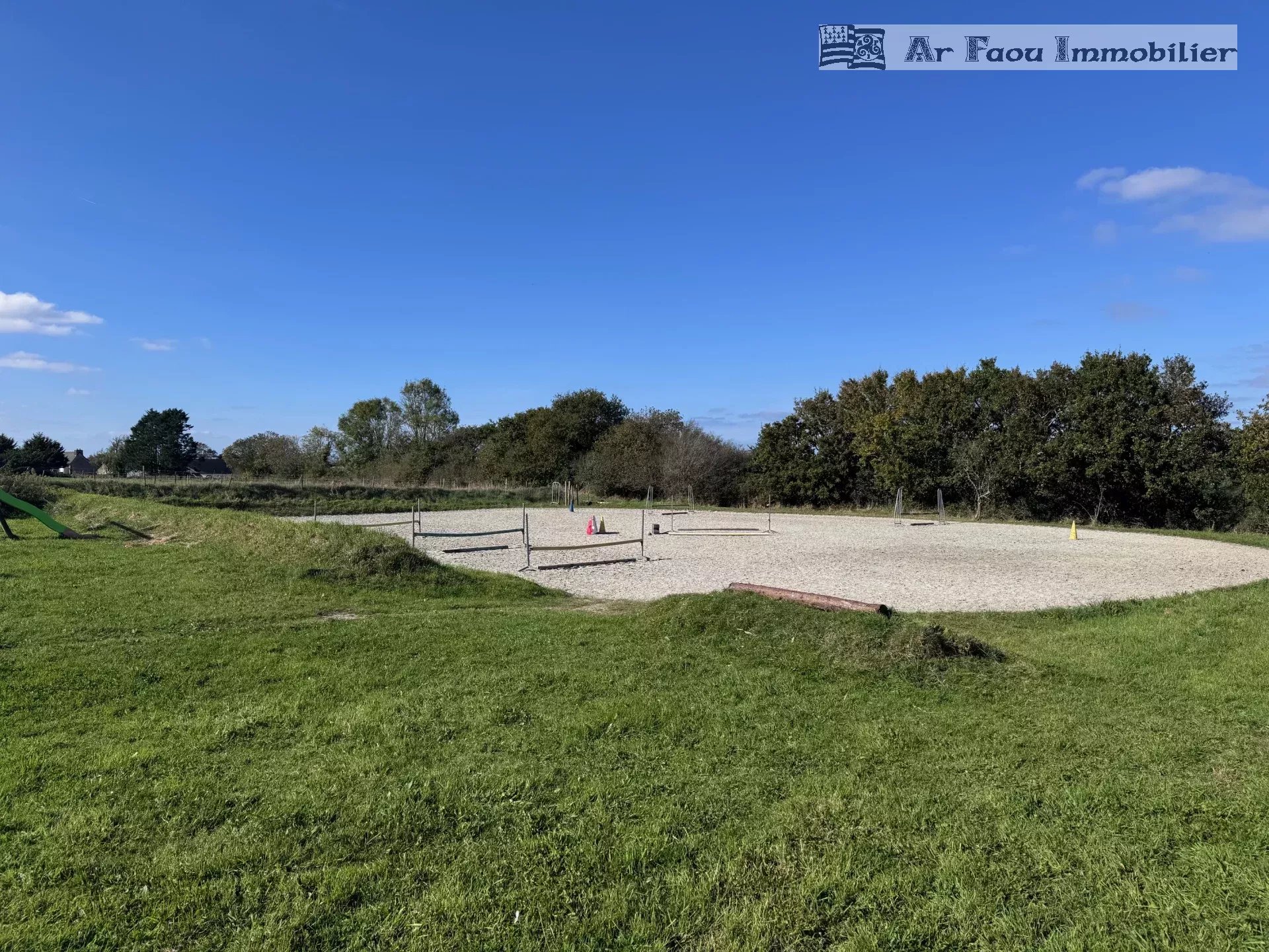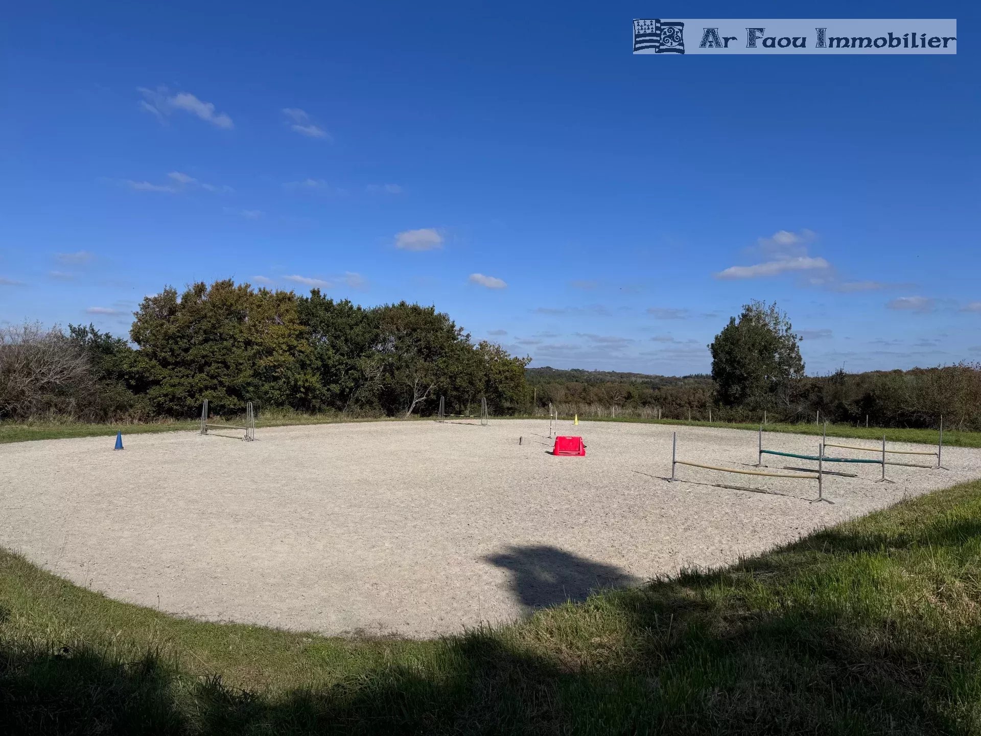 Exclusivité Agence. Argol, proche du pont de Terenez, découvrez ce rare ensemble équestre proposant une maison d'habitation de type 6 avec cuisine dinatoire neuve, salon, 4 chambres, salle d'eau, wc, arrière cuisine, cellier, atelier. Il propose également de nombreux bâtiments en pierre, ancienne porcherie et un vaste hangar avec box pour les chevaux, carrière, etc... Nombreux postes de travaux effectués. Le tout sur plus de 5 hectares de terres attenantes. Bien rare sur le marché et sur le secteur pour les amateurs de chevaux. A voir rapidement.