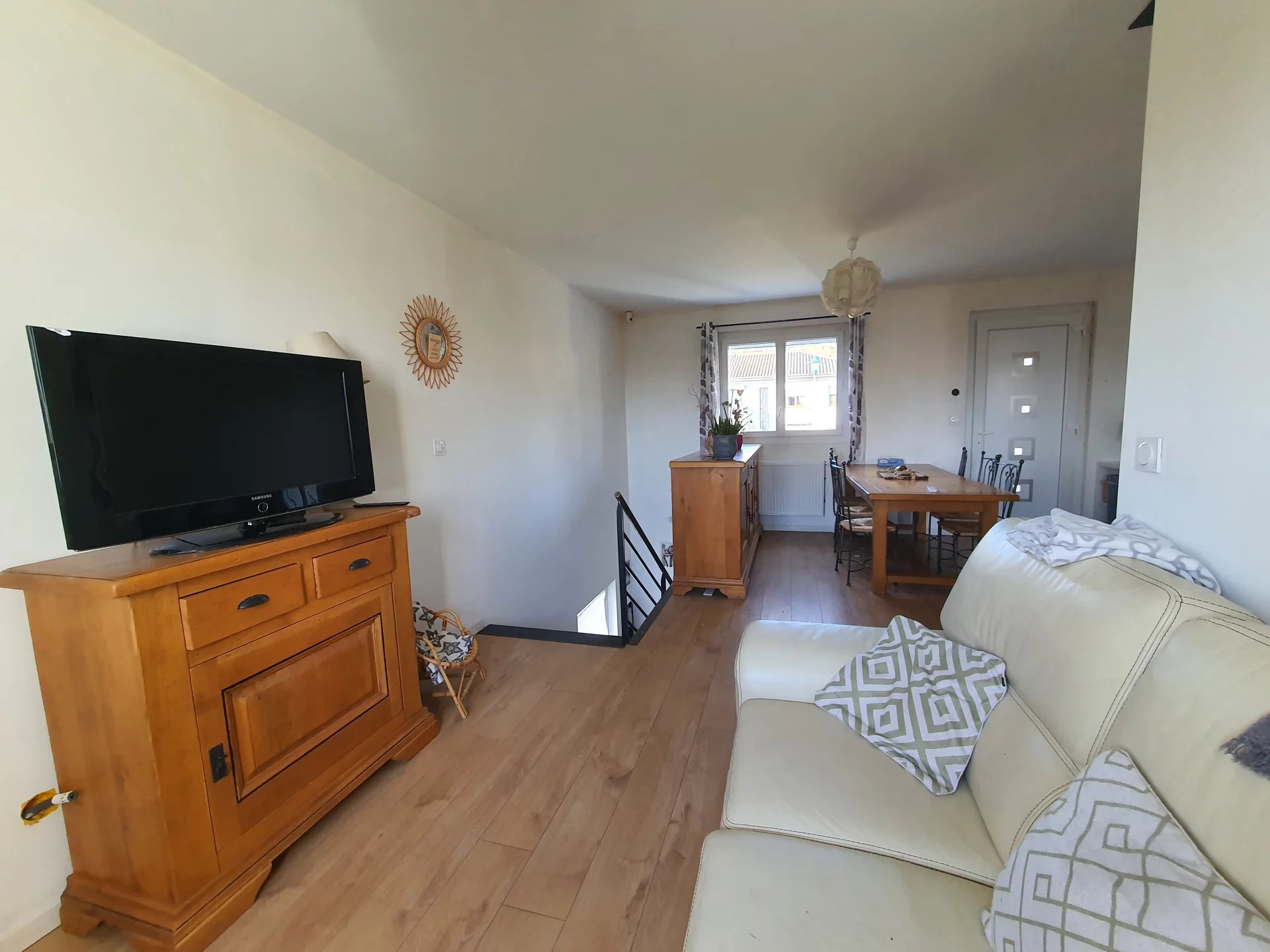 L’espace de vie se compose à l’étage, d’un séjour agréable avec cuisine ouverte, agrémenté d'une baie vitrée donnant sur la terrasse. Vous y trouverez également une chambre et une salle d’eau avec toilettes. En souplex, la maison offre une buanderie avec accès direct au garage, ainsi qu’une seconde chambre avec possibilité d’aménager une salle d’eau supplémentaire selon vos besoins.