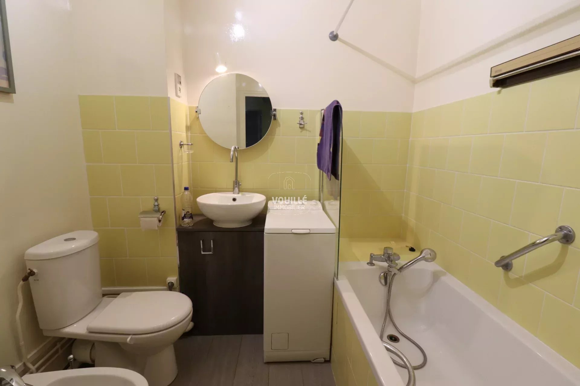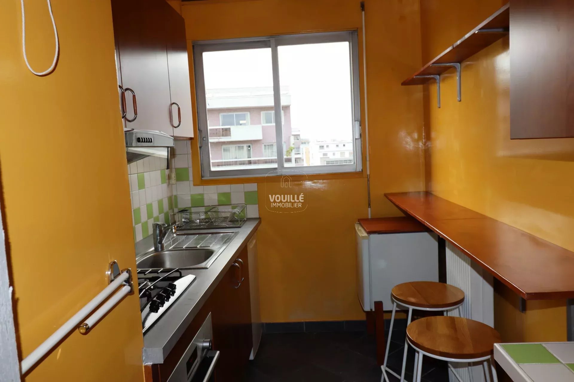 Nous avons un coup de coeur pour ce bel appartement de 2 pièces principales, très agréable à vivre, que nous louons en meublé. Il se situe dans un immeuble récent "années 1970" de bon standing, au neuvième et dernier étage. il est doté d'un très bon plan avec une entrée avec placard, une cuisine, un séjour exposition Ouest sur rue donnant sur un grand balcon avec une vue dégagée, une chambre sur cour exposition Est avec balcon, une salle de bain avec toilettes. La copropriété propose de nombreux services avec gardien, ascenseur, chauffage et eau chaude collectifs urbains de type "CPCU".