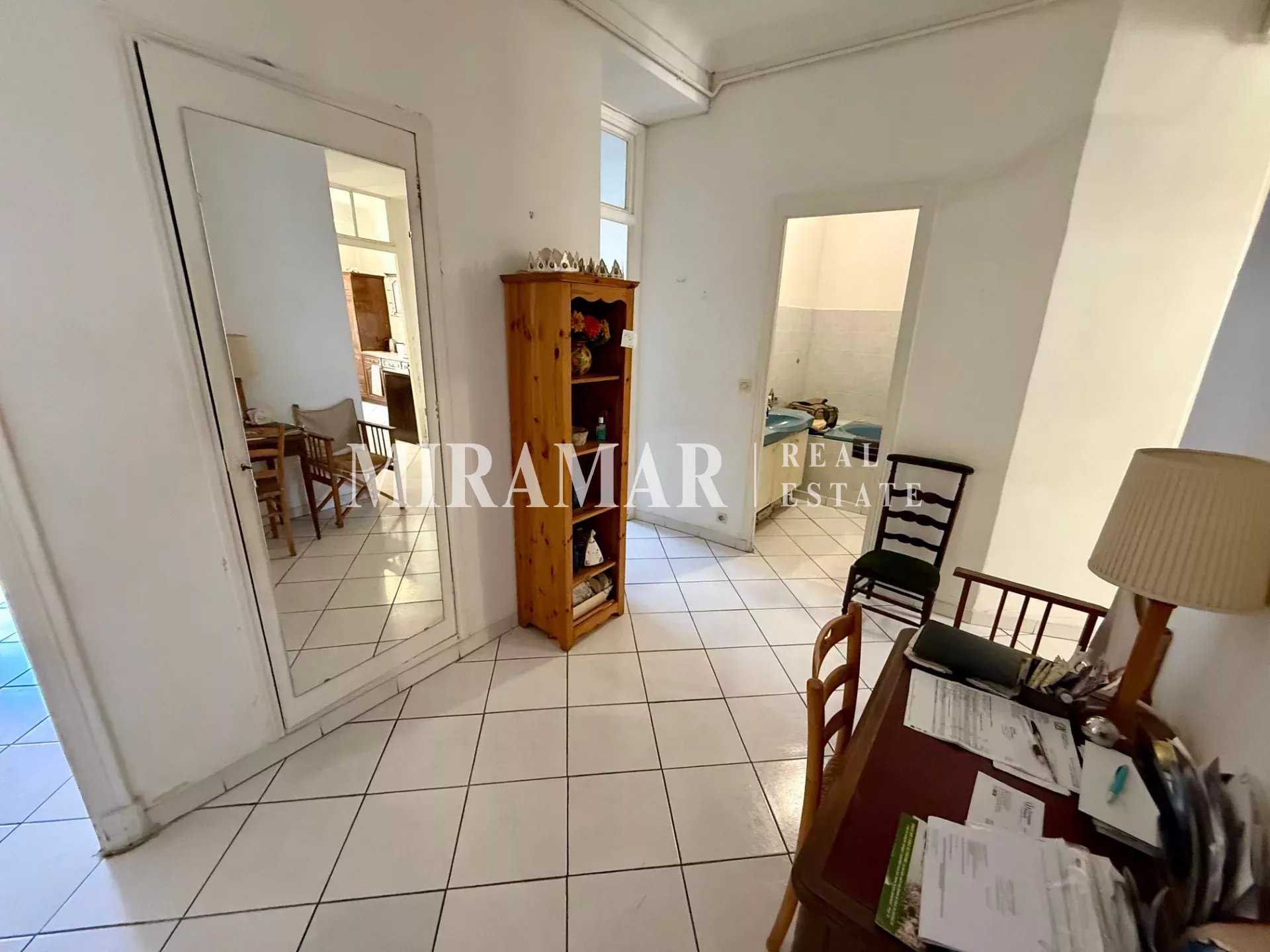 Exclusivité Nice Rue Lepante A proximité de la Place Toselli, dans bel immeuble bourgeois en parfait état avec ascenseur, vaste 2 pièces de 57,5 m² en étage élevé. Traversant Est / Ouest, cet appartement se compose comme suit : un séjour, une cuisine indépendante, une chambre avec balcon, une salle de bain et une grande entrée. Possibilité de créer une 2 ème chambre. Travaux à prévoir