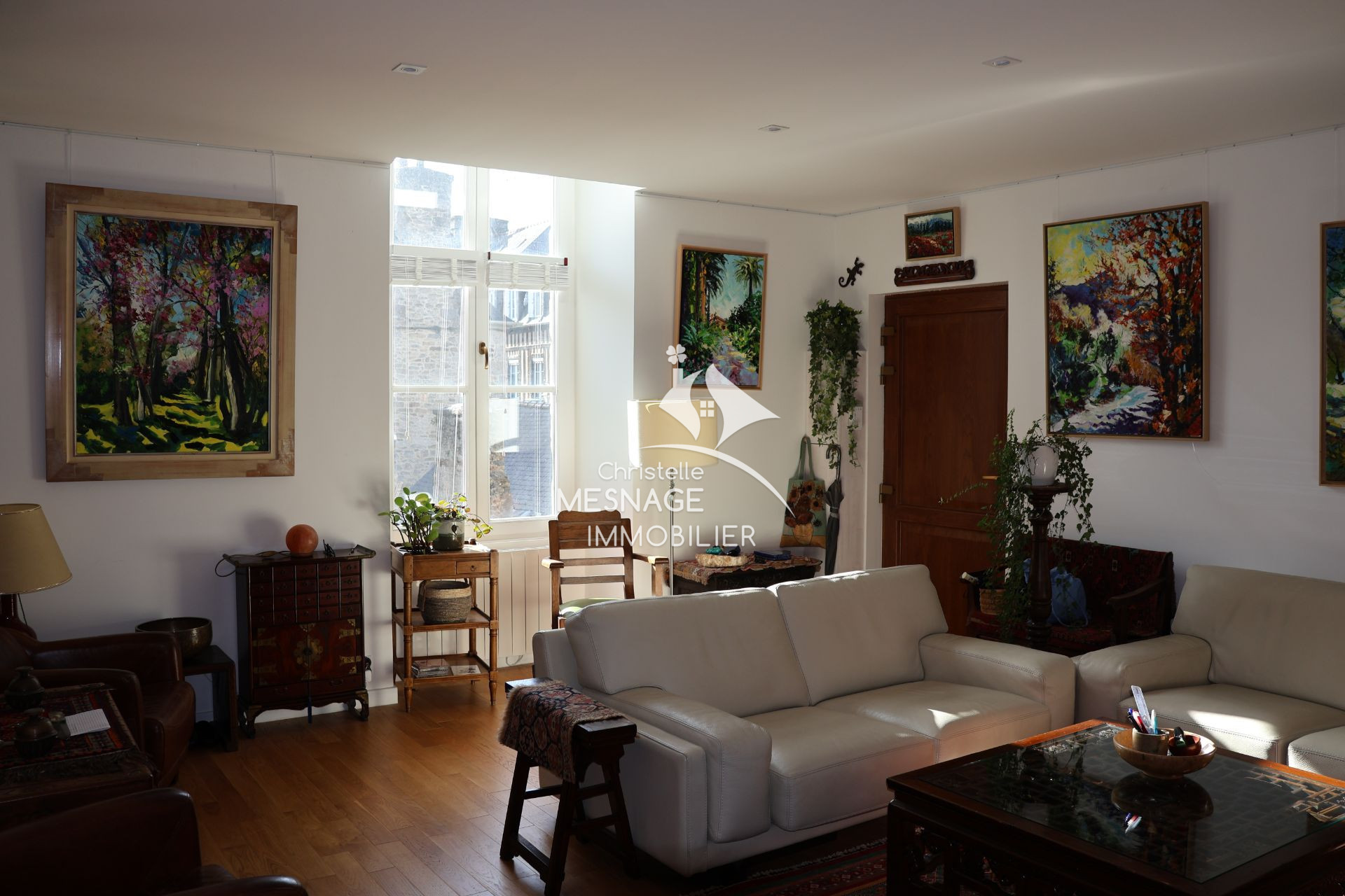 À vendre chez Christelle Mesnage - Dinan centre-ville, Dans un petit immeuble de charme. Bel appartement T4 de caractère au 1er étage de 107 m² avec un grenier de 85 m² offrant : une cuisine équipée avec un coin repas, un spacieux et lumineux séjour avec une cheminée avec insert électrique, 2 belles chambres dont 1 avec un placard, une salle d'eau équipée avec douche à l'italienne, 1 wc avec lave-mains, un dégagement avec placard, un immense grenier aménageable au-dessus. Beaucoup de charme, Lumineux, quartier historique, beaux volumes, vue dégagée.