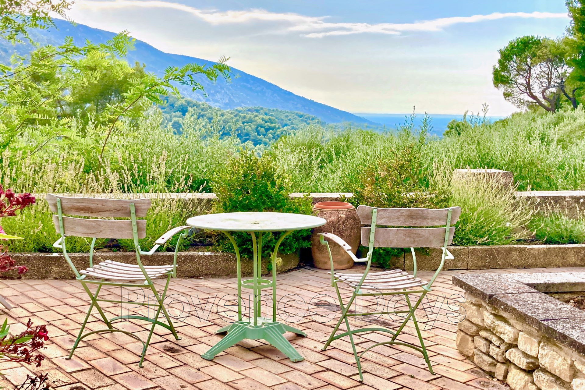 * Une grande terrasse offre une vue sur le vieux village et la vallée en contrebas. Il y a plusieurs autres zones de cour isolées, un sauna, une zone de stationnement hors rue clôturée, et une pergola de salle à manger ombragée accessible.