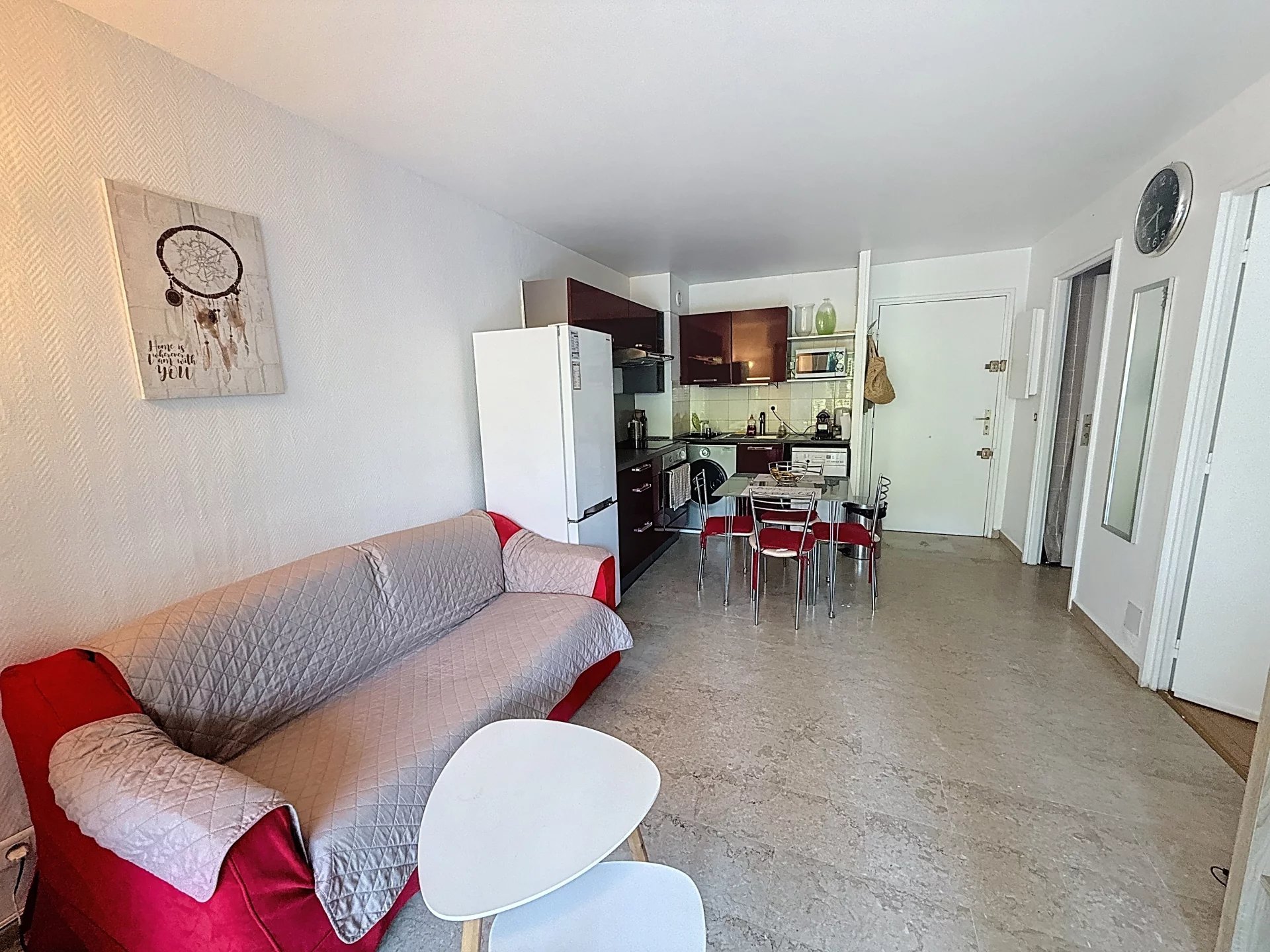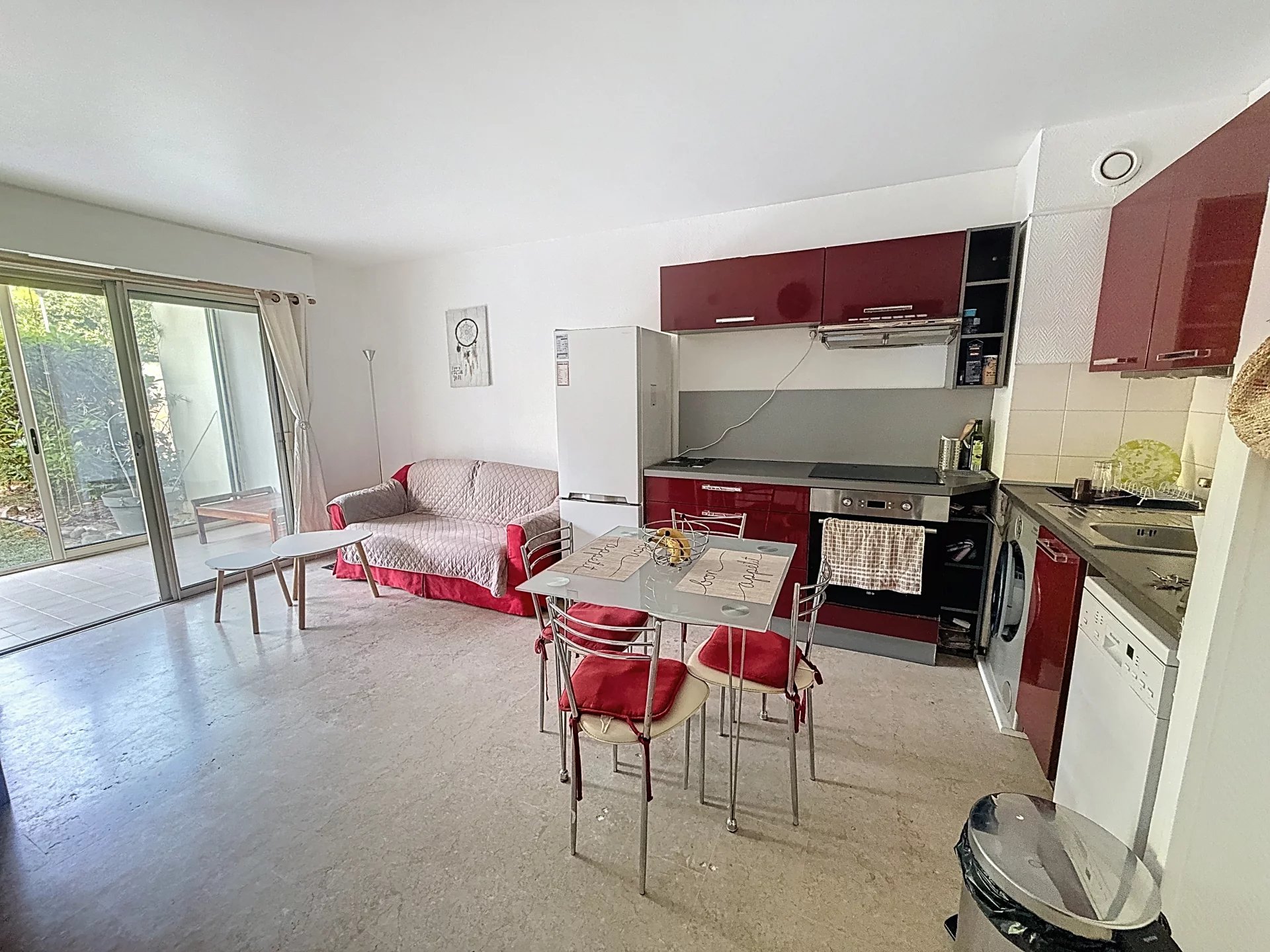 Accès Direct au Plages pour ce joli Deux Pièces de 41 m2 (Carrez 29.97) en Rez de Jardin sur 3 étages, au calme dans une résidence sécurisée avec Piscine et Verdure. Composé d'une entrée avec rangements, d'un séjour cuisine américaine équipée s'ouvrant sur une loggia de 11 m2 chauffée donnant sur un jardin d'environ 33 m2, une chambre avec placard, une salle de bain, cet appartement est idéal en Résidence Principale ainsi qu'en Locatif à l'année ou Saisonnier avec son accès direct aux Plages, à la Piscine, au Sauna. L'emplacement Havre de paix avec pins et cigales évoque tout de suite les vacances et est très bien desservi par les bus . Nombre de lots 107 Un Box non fermé mais pouvant l'être avec une porte, complète le bien ainsi qu'une Cave . Les informations sur les risques géologiques auxquels la commune est exposée sont consultables en Agence DPE: Énergie - Consommation conventionnelle: 291 kWhEP/m².an (E) Énergie - Consommation finale: 126 kWhEF/m².an (C) Énergie - Estimation des émissions: 9 kg CO2/m².an (B) Énergie - Montant bas estimé des dépenses annuelles pour un usage standard 746€/an Énergie - Montant haut estimé des dépenses annuelles pour un usage standard 1009€/an Énergie - Année de référence des prix de l'énergie 2021 Loi Carrez29.97 m² État des Risques et Pollutions (ERP): Réalisé Termites: Réalisé Amiante: Réalisé Électricité: Réalisé Taxe foncière: 1002€/an Charges: 120€/mois