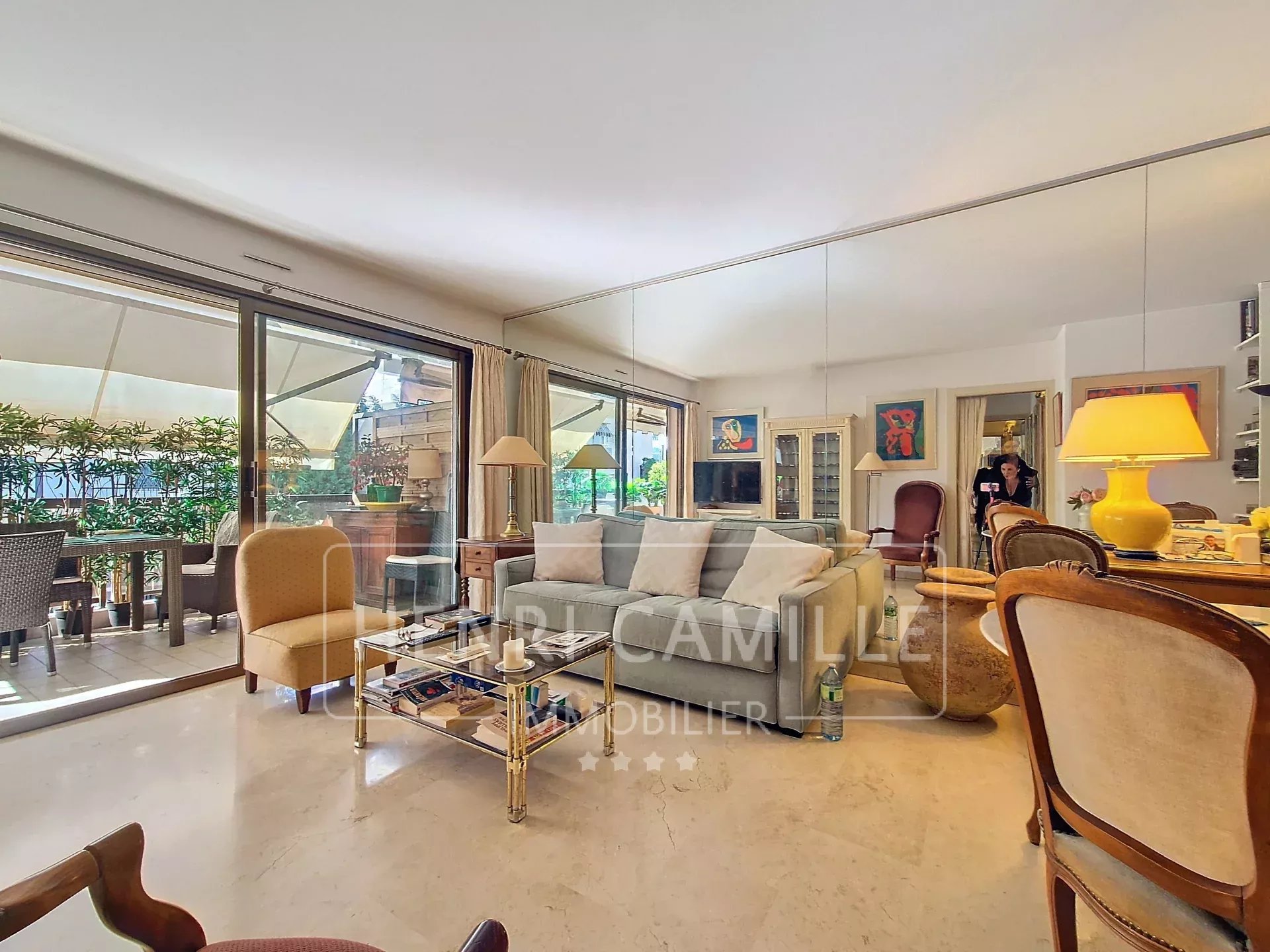 A Cannes, dans le secteur très prisé du Palm Beach, situé à 2 mn à pied des plages de la Croisette et du Mouré Rouge, 2 pièces à la vente en nue-propriété composé comme suit : une entrée, un séjour, une cuisine équipée, une chambre, une salle de douche et un toilette séparé. les pièces principales ouvrent sur une grande terrasse de 20 m² exposée ouest. Garage. Immeuble de standing, nombreux commerces à proximité. L'appartement est occupé par 2 personnes (77 et 79 ans). Valeur du bien: 425.000 euros Prix : 295.000 euros soit une décote de 31 % Pas de rente