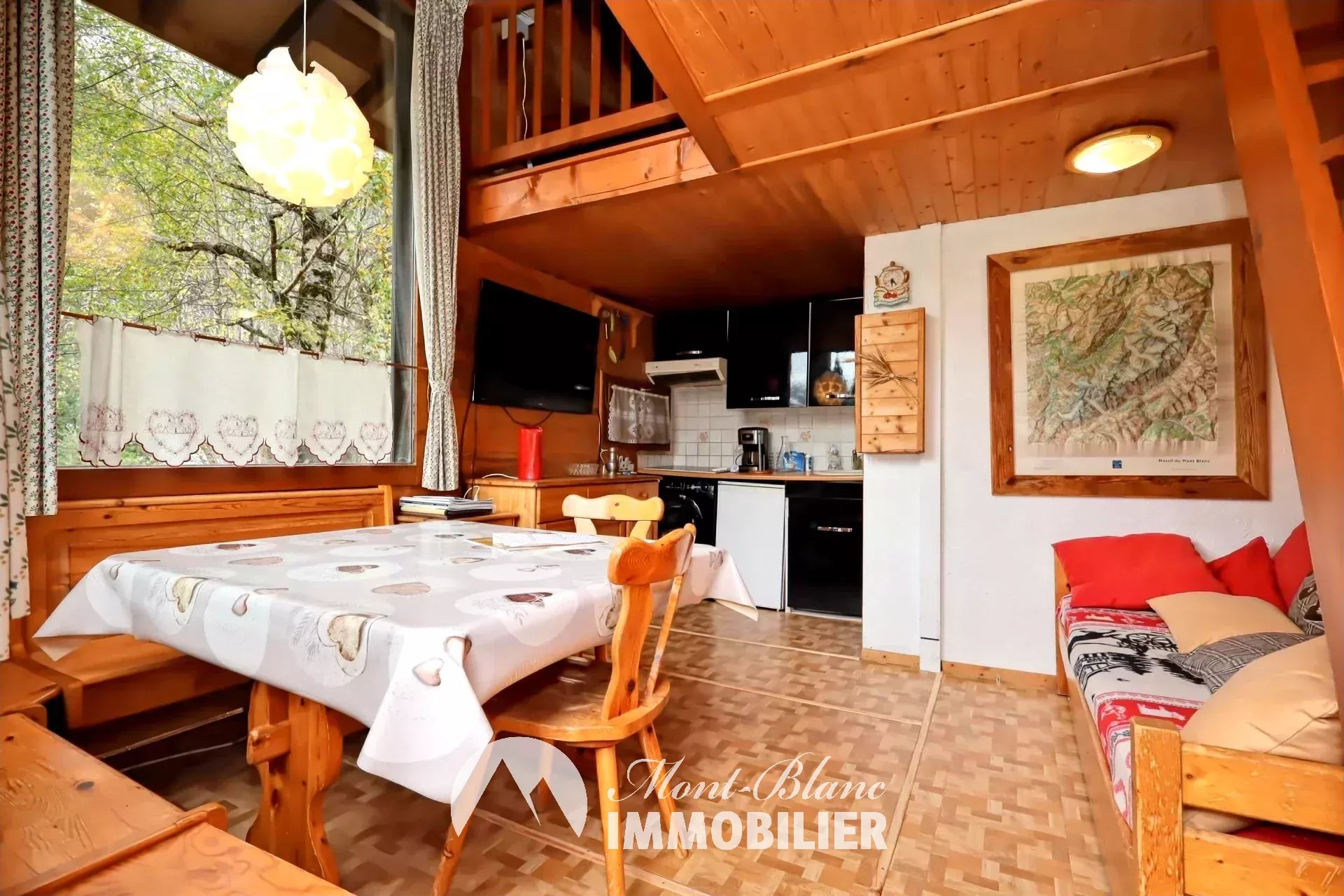 A louer à l'année - secteur Les Bossons Mazot individuel avec mezzanine disponible pour une longue durée, 21.96m² carrez (26,89m² au sol)composé comme suit : accès par une grande terrasse avec jacuzzi, pièce de vie avec cuisine équipée, salle d'eau avec WC, mezzanine avec couchage double et rangements. Place de parking extérieur, petit espace de stockage. Meublé Loyer : 1040€ Provisions pour charges : 160€ (charges de copropriété, électricité) Dépôt de garantie : 1200€