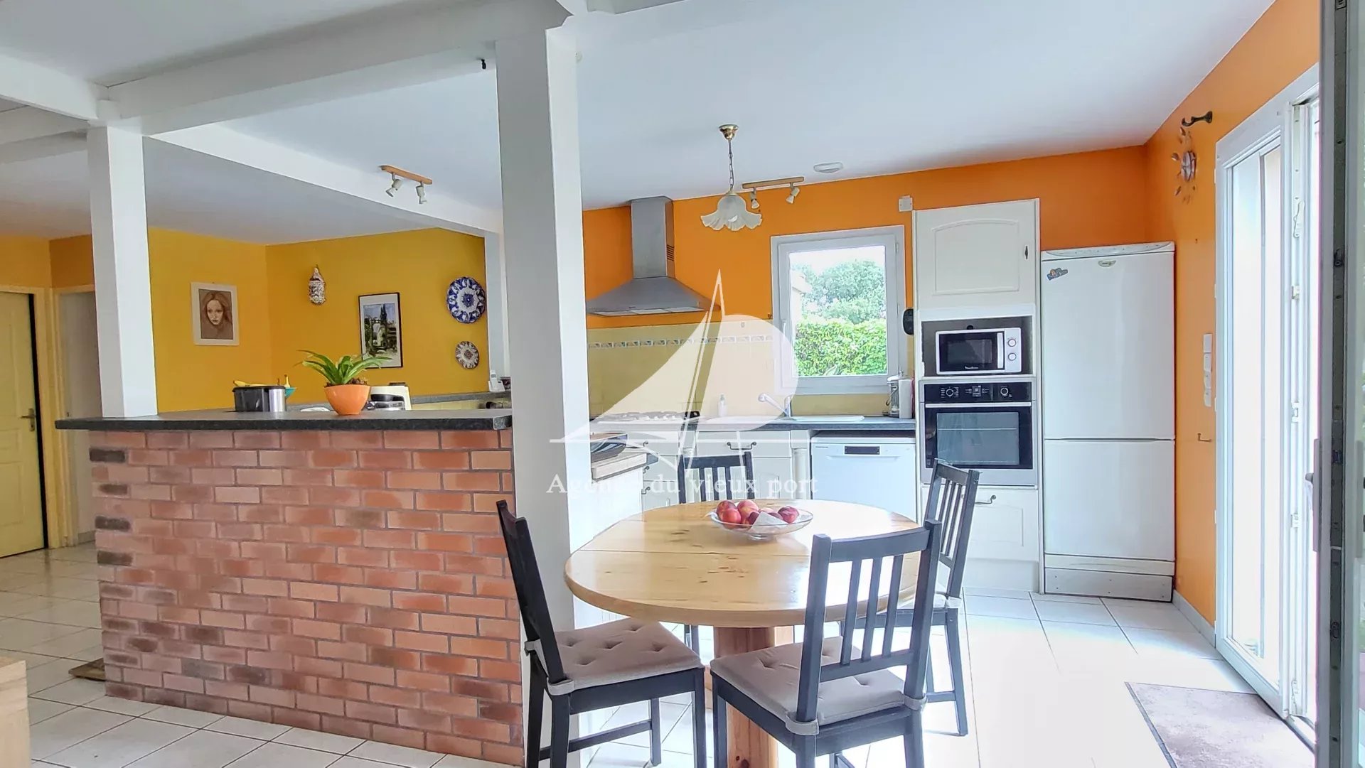 Agence du Vieux Port Pornic, à vendre : au calme tout en étant à proximité des commerces, du golf et de la plage découvrez cette maison de plain-pied dotée de 3 chambres avec un studio attenant. Belle pièce de vie traversante avec cuisine américaine, deux salles d'eau avec WC, une buanderie, un garage avec mezzanine. Jardin clos et arboré.Prix FAI 678 000 €dont 4,31% TTC d'honoraires charge acquéreur. Les informations sur les risques auxquels ce bien est expoosé sont disponibles sur le site Géorisques. https:// www.georisques.gouv.fr