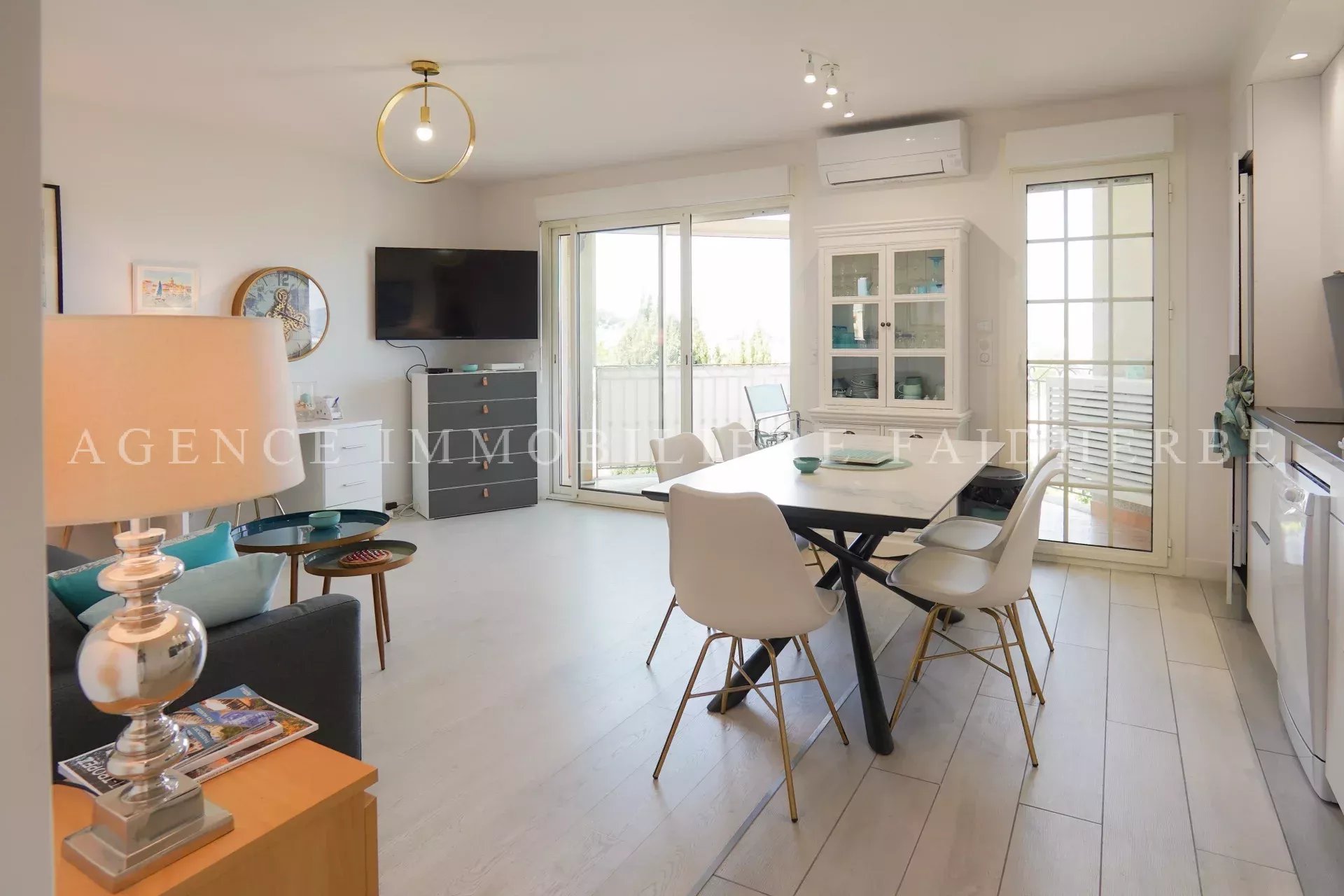 Questo elegante appartamento, recentemente ristrutturato e situato vicino al centro città, offre un ambiente confortevole e luminoso nella Résidence du Clos Saint-Anne. La cucina completamente attrezzata si apre sul soggiorno/pranzo con accesso a una terrazza con vista panoramica e scorcio sul mare. Dispone di due camere da letto climatizzate (una con due letti singoli), un bagno con doccia e servizi igienici separati. Le camere si aprono su una seconda terrazza con vista sulla piscina e sui giardini. Godetevi la piscina condominiale, il garage privato e il Wi-Fi gratuito. Dotazioni: Garage, Wi-Fi, aria condizionata Tariffe: 3.125 € / settimana Costi aggiuntivi: Pulizia finale: 32 €/ora Biancheria: 30 €/letto Tassa di soggiorno: 6,91 €/giorno/adulto Rif.: 33 TS: 83119006178HT