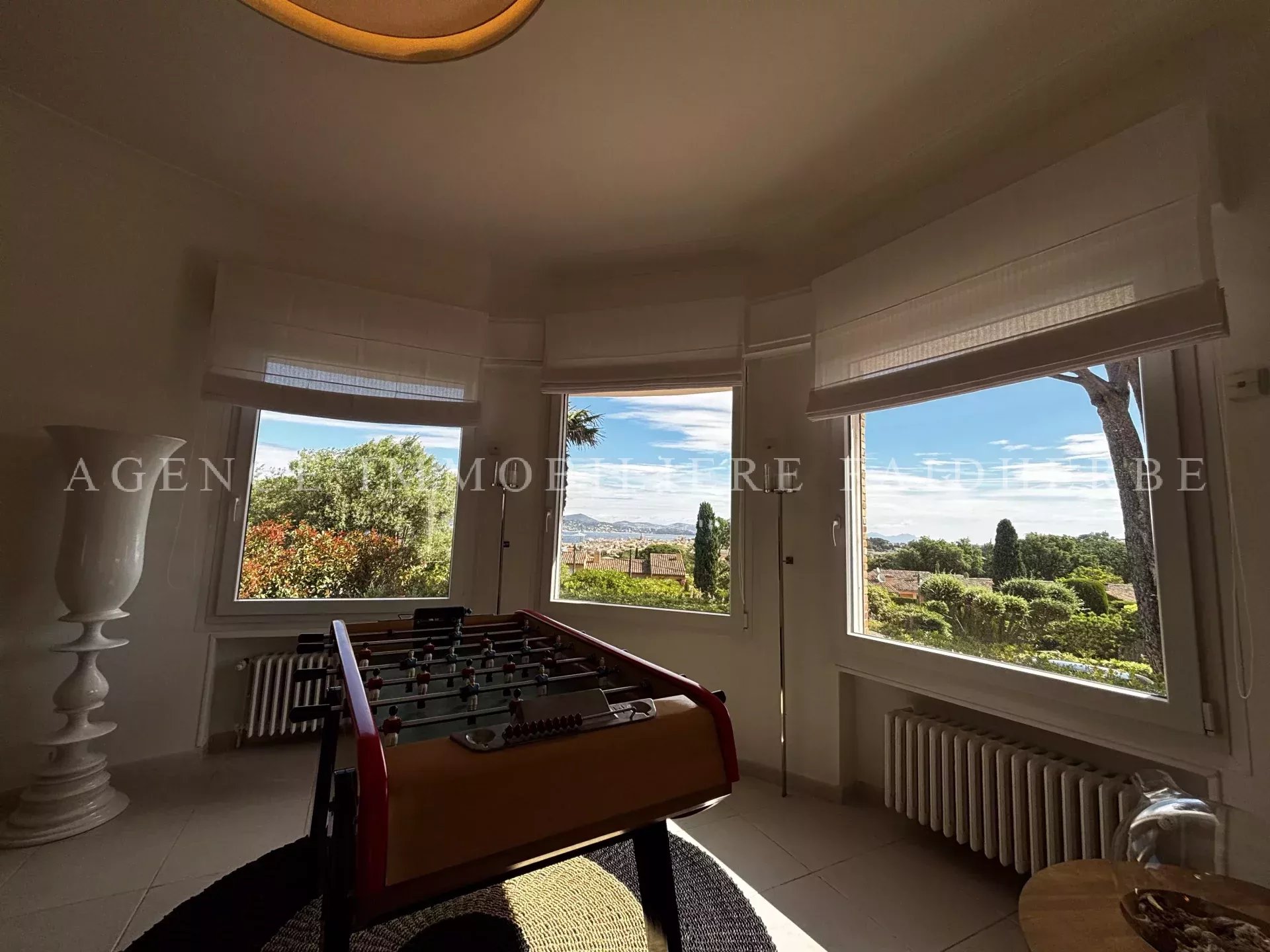 Situata in una posizione ideale in una tenuta tranquilla e sicura a pochi passi dal villaggio, questa incantevole villa offre una vista mozzafiato sul Golfo di Saint-Tropez, sul campanile e sulla Cittadella. Immersa in un meraviglioso parco paesaggistico, la villa offre tutto il necessario per godersi appieno lo stile di vita mediterraneo. Comprende un ampio e luminoso soggiorno e una cucina completamente attrezzata che si apre su una splendida terrazza e una piscina non riscaldata. La terrazza, perfettamente arredata con barbecue e piastra, invita a trascorrere momenti conviviali all'aperto. La villa dispone di quattro suite, tra cui una suite padronale con spogliatoio e bagno/doccia, oltre a un'area relax con cinema e tavolo da biliardo nel seminterrato. Lavanderia con lavatrice e asciugatrice. Aria condizionata, Wi-Fi, sistema di allarme. Incluso: pulizia di 2 ore, 3 volte a settimana, biancheria. Affitto: 20.000 € a settimana a luglio e agosto