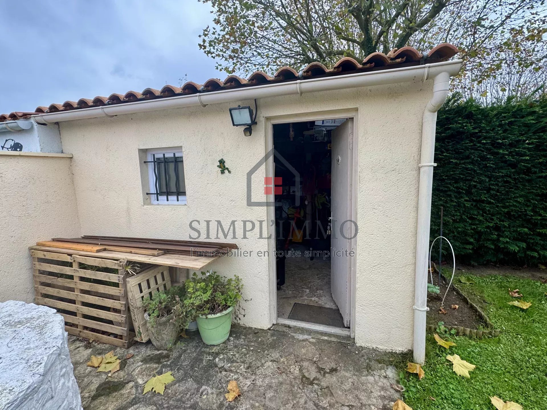 Côté extérieur, vous profiterez d’une agréable terrasse donnant sur un terrain plat, piscinable, avec une dépendance/atelier de 13 m².