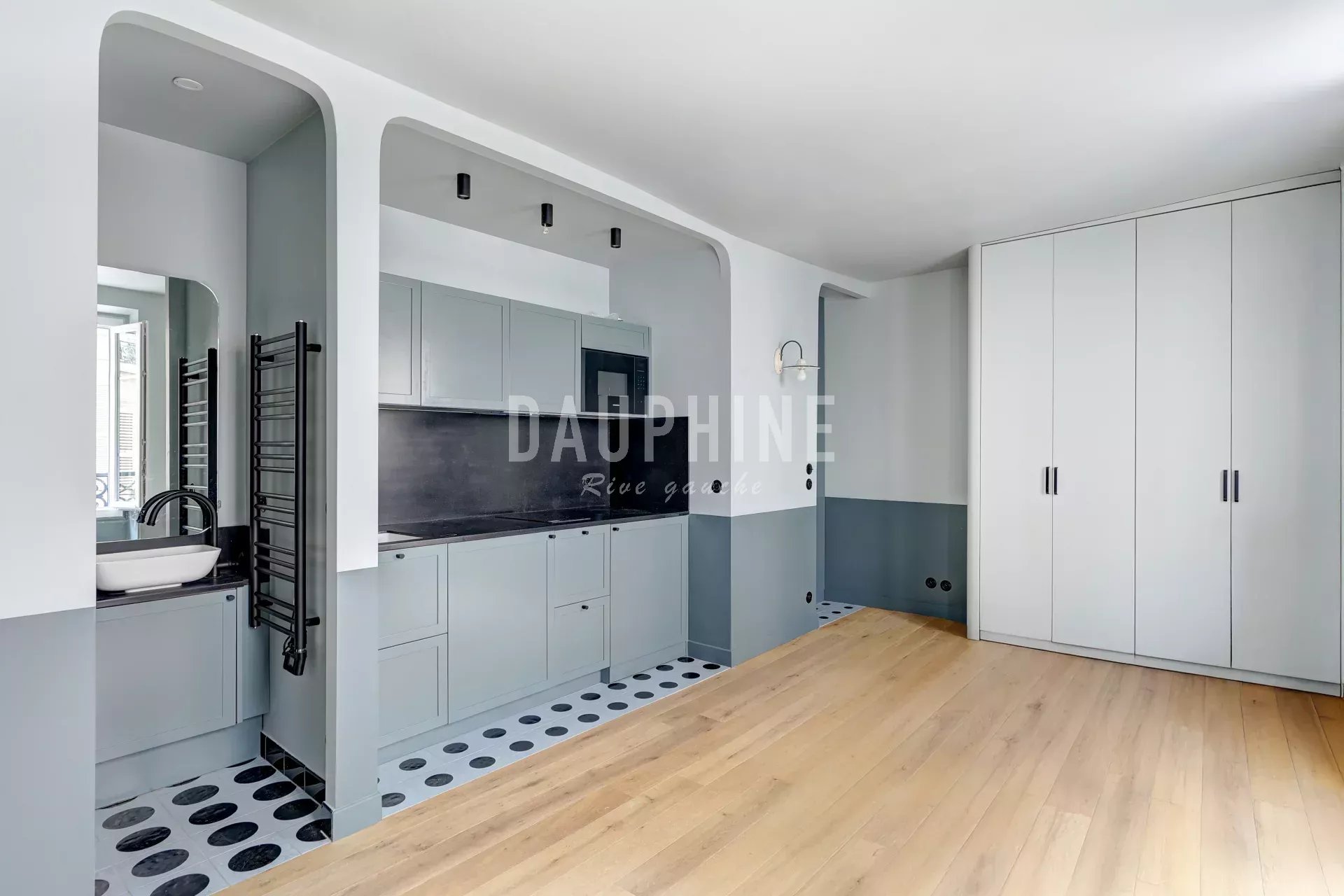 À proximité des commerces et du Champ-de-Mars, ce studio de 22 m² se situe au premier étage d’un immeuble de caractère du XIXᵉ siècle. Entièrement rénové, il se compose d’une entrée, d’une agréable pièce de vie avec cuisine ouverte, d’une salle d’eau, de toilettes indépendantes et de nombreux rangements optimisés.