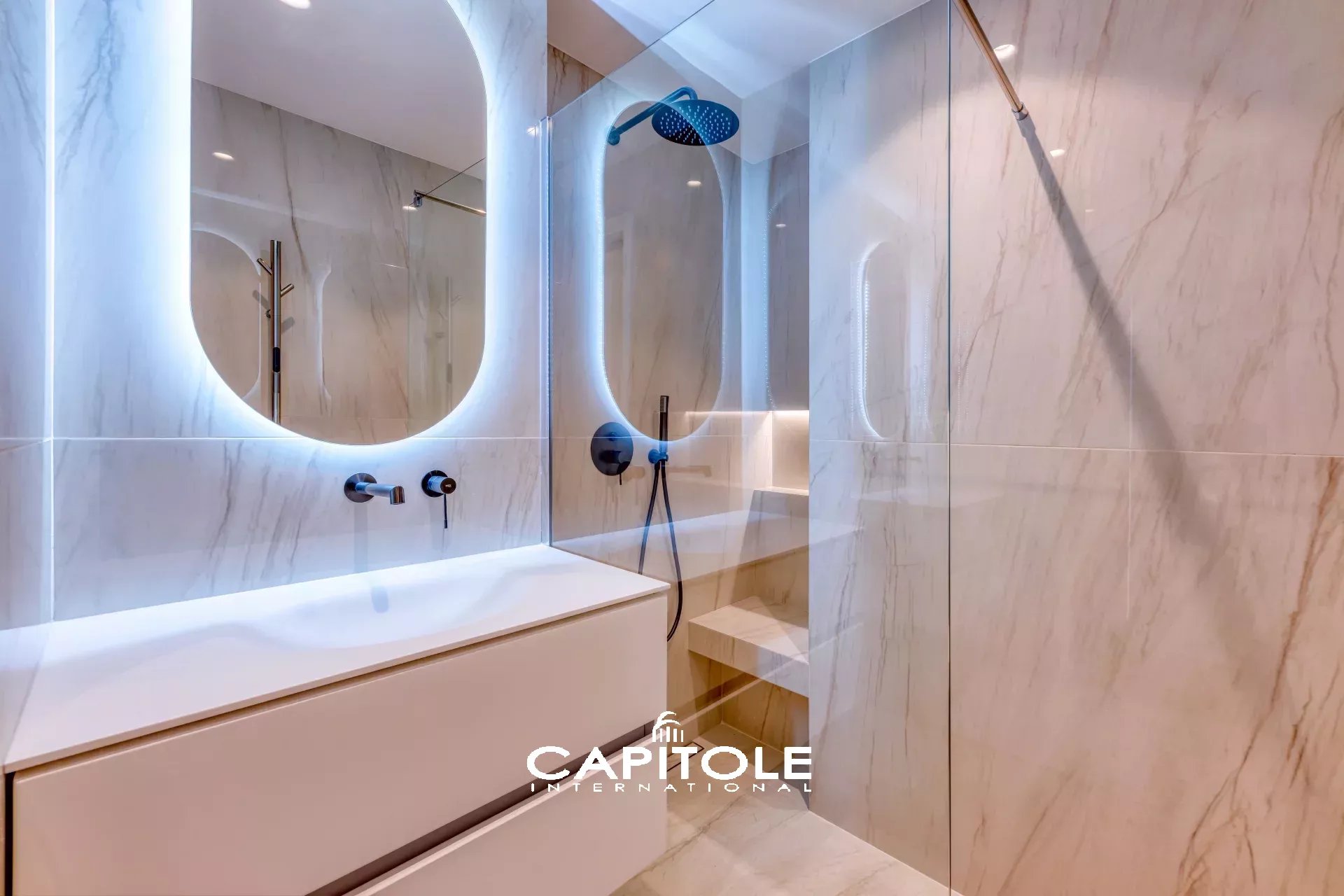Sa luxueuse rénovation a permis d'optimiser les espaces et de créer notamment une magnifique pièce de vie de plus de 40 m² sur la mer mettant ainsi en valeur la belle luminosité que lui confère son exposition plein Sud.