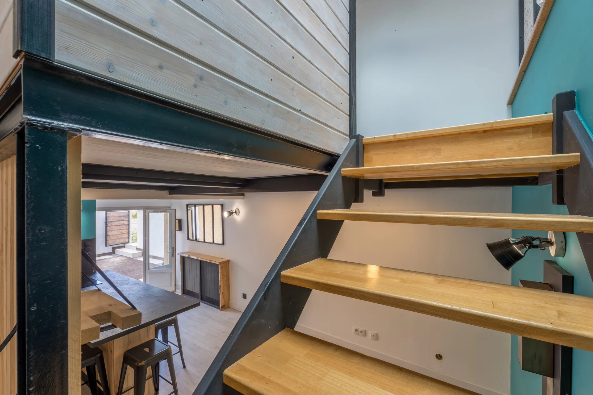 Appartement T3 de 54m² en duplex avec une grande terrasse en bois de 35m² Il se situe dans une petite copropriété (faibles charges: 132€/mois chauffage compris) au calme à l'extérieur du village Il se compose au RDC d'une pièce de vie avec une cuisine ouverte et récente (2023) et un WC. Quelques marches plus bas se trouve la 1ère chambre (ou salon) A l'étage: une chambre, une buanderie une salle de bains et des placards Copropriété fermée avec 1 place de stationnement privatives + places visiteurs Un grand garage en sus peut être proposé à la location...