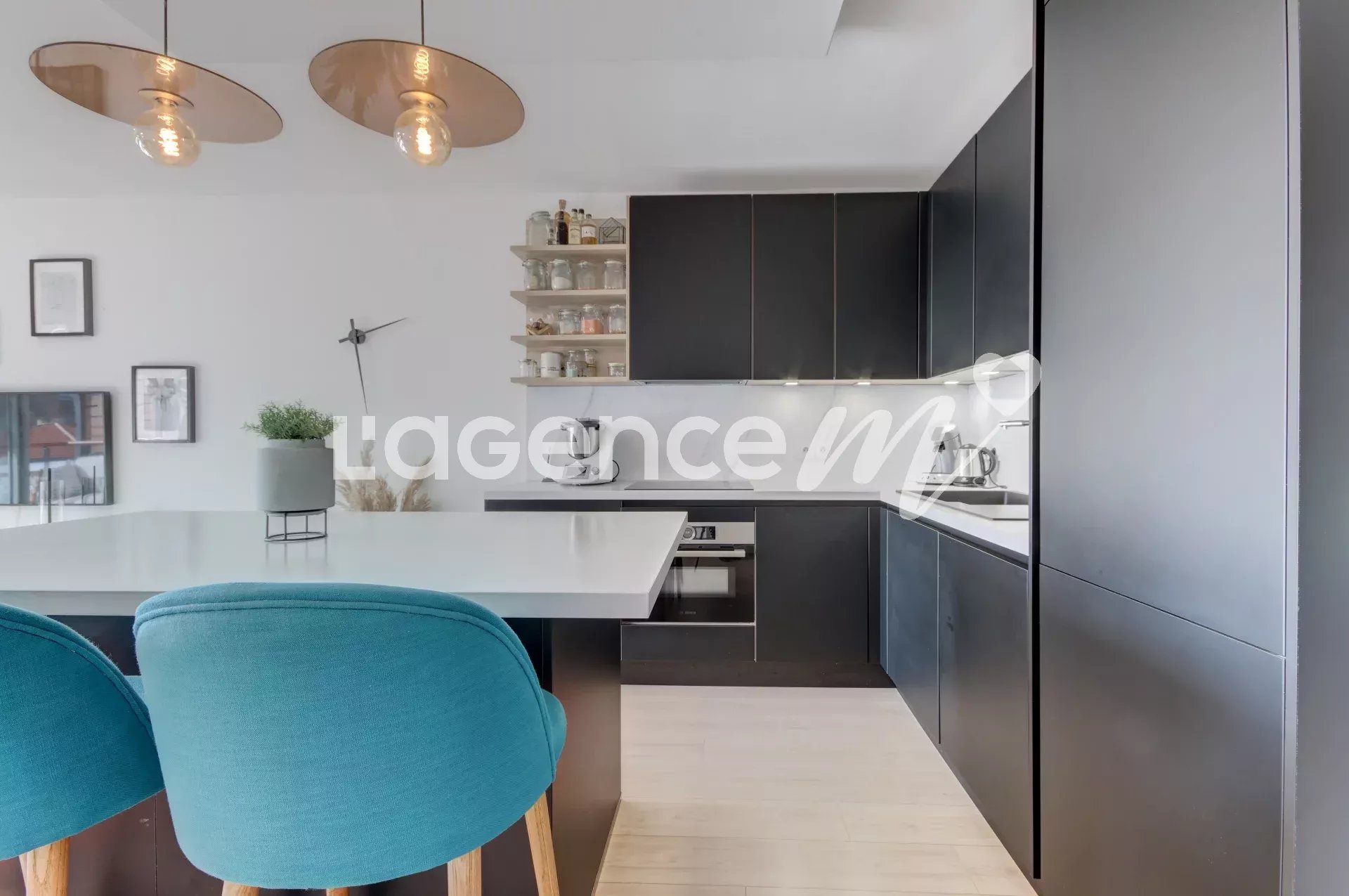 Le cœur de l’appartement se trouve dans son séjour lumineux de 27m² exposé plein sud, prolongé par une cuisine américaine mettant en valeur un bel îlot central qui apporte à la fois du cachet, de la convivialité et de la modernité à l’espace. Cet ensemble forme une très belle pièce de vie, ouverte sur une large terrasse de 11m² offrant une vue dégagée, au calme, parfaite pour déjeuner, se détendre ou profiter du soleil toute la journée.
