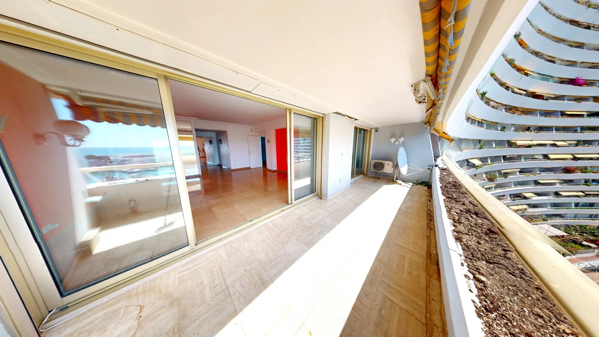 VILLENEUVE-LOUBET, MARINA BAIE DES ANGES - APPARTEMENT 3 PIECES de 75 m² idéalement placé FACE A LA MER ! Il se compose d'un hall d'entrée, cuisine semi ouverte équipée, d'un séjour s'ouvrant sur la terrasse, de deux chambres et d'une salle d'eau avec WC et coin buanderie. Vendu avec une place de parking et une cave.