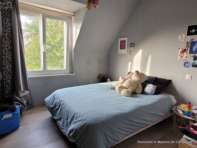 A l'étage : 2 chambres, salle d'eau-WC et un vaste grenier isolé offrant un beau potentiel d'aménagement supplémentaire.