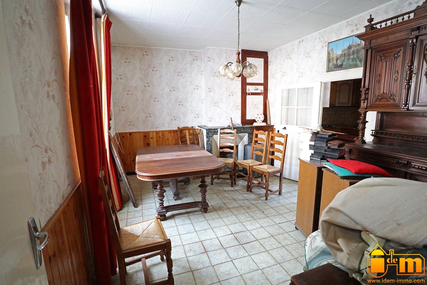 De Plain-pied : entrée, salle à manger, cuisine, WC indépendant, 3 pièces, coursive (avec chaudière murale au gaz de ville), salle deau avec WC. Lensemble pour une surface de 70/75 m².